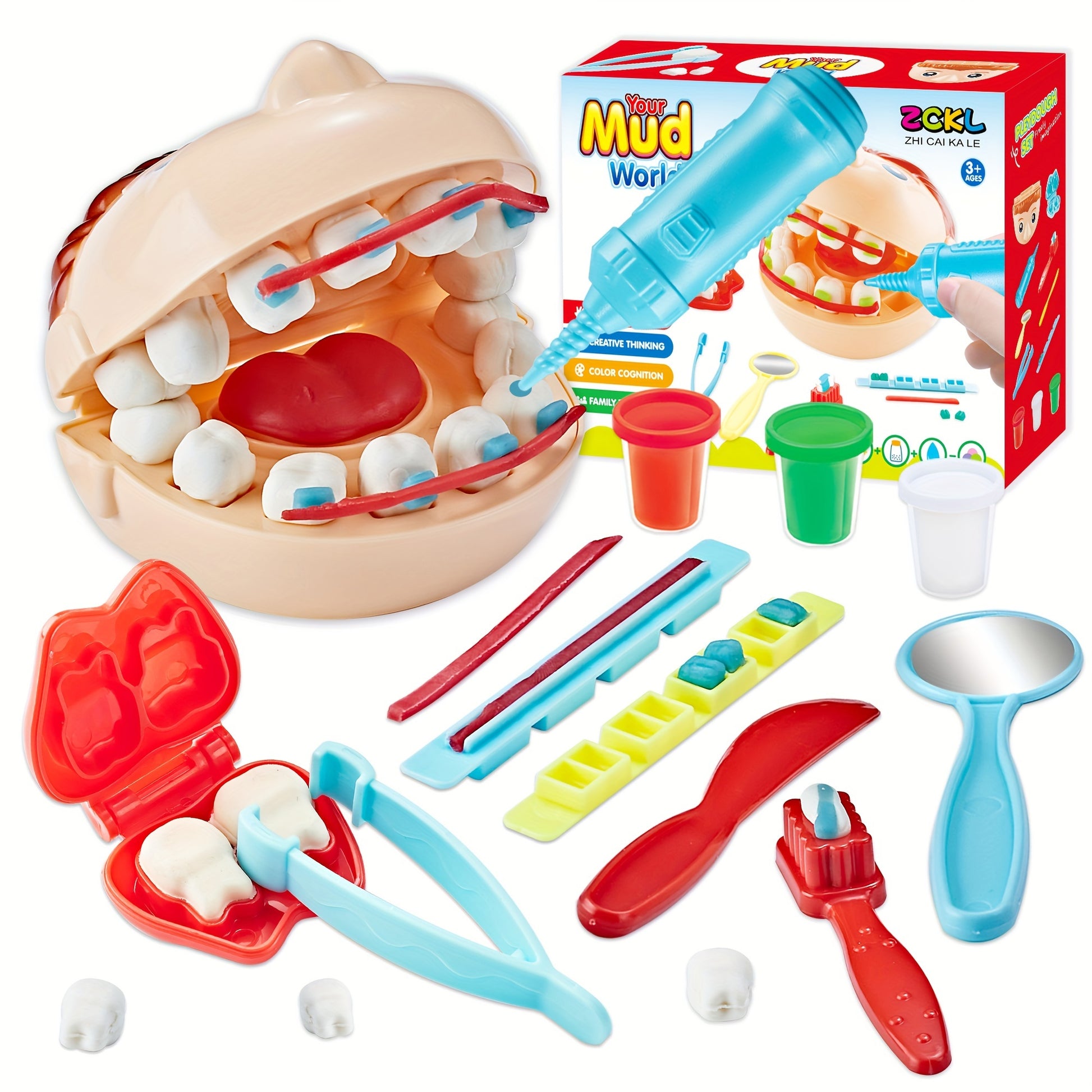 [Educational Dentist Playset] Educational Dentist Playset Modeling Clay Accessories Set for Youngsters, 3 years old, with Various Plastic Molds and Tools, Perfect for Winter, New Year