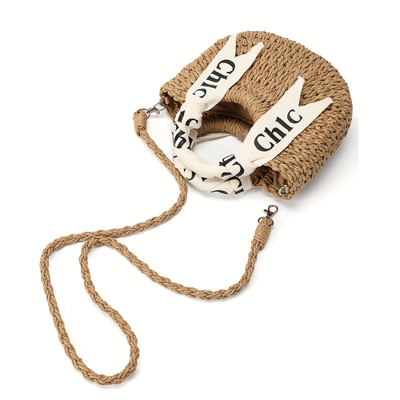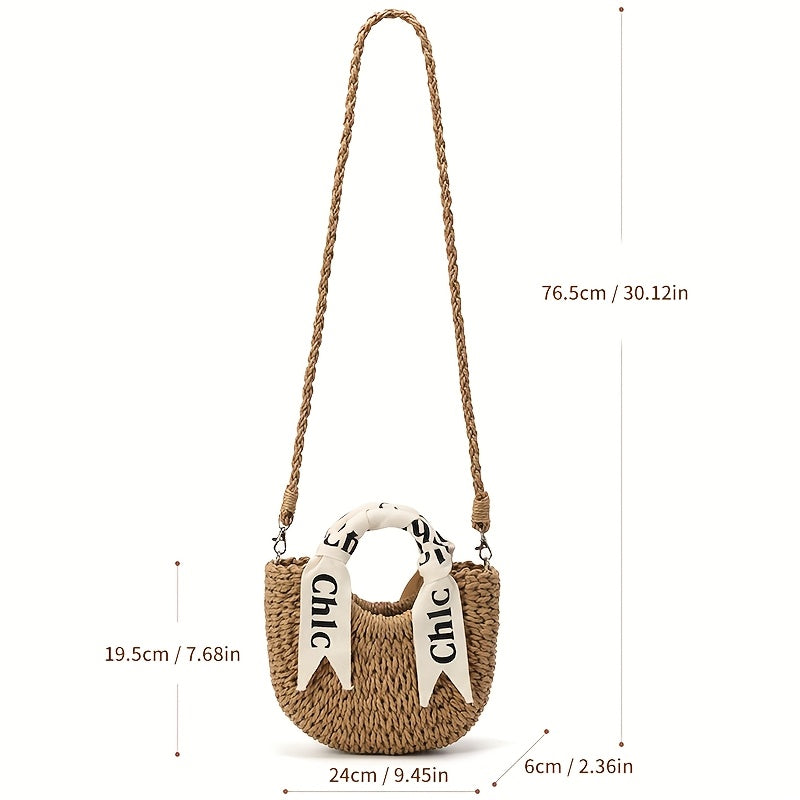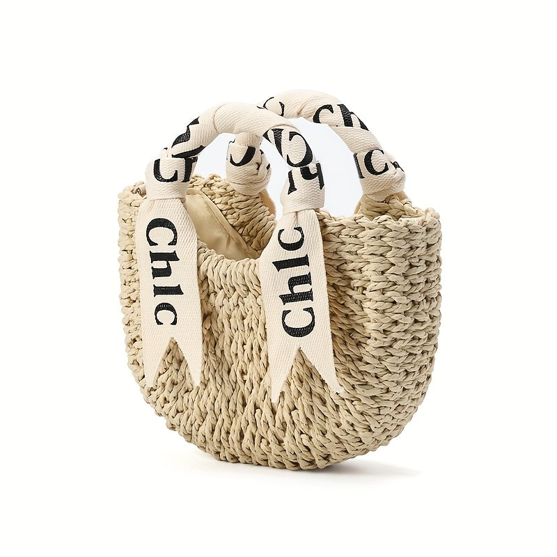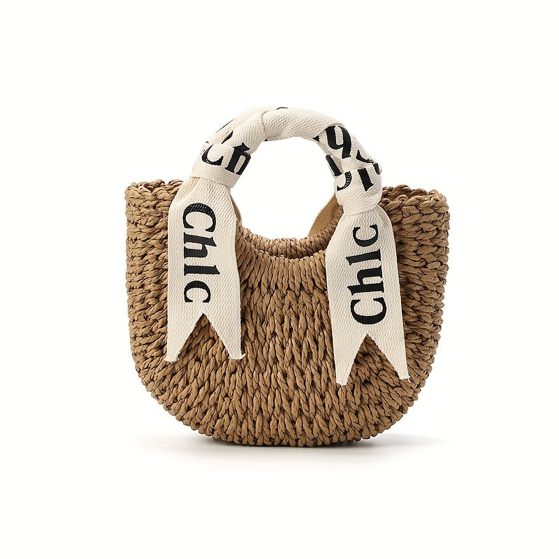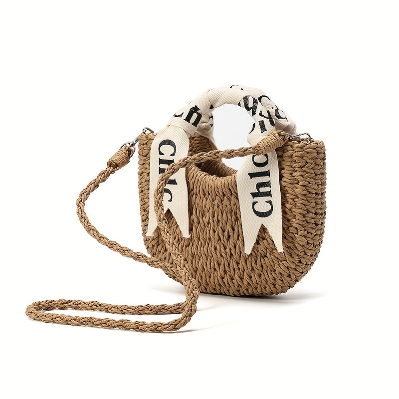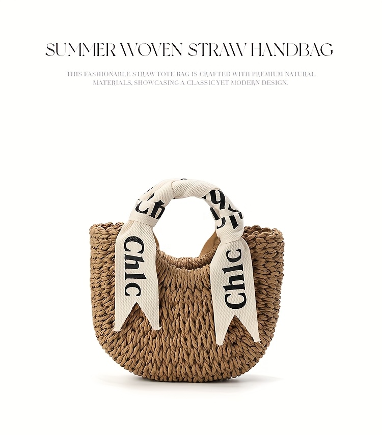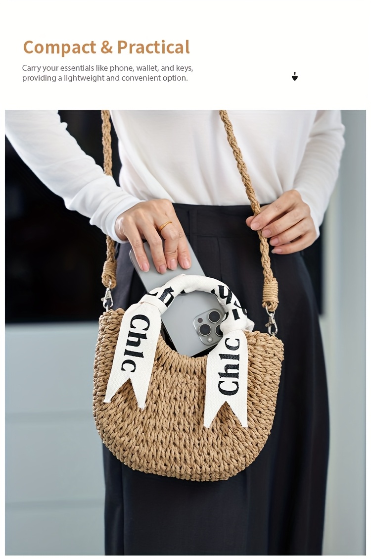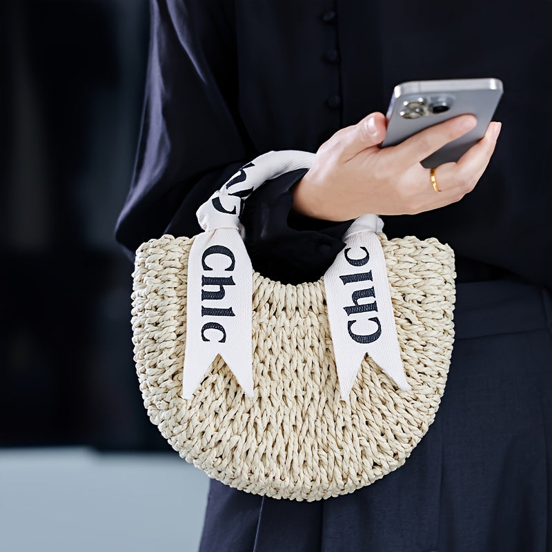 [Elegant Handbag] Elegant Straw Weaving Handbag | Simple and Stylish Women's Shoulder Bag Summer Beach Bag, Semi-Circular with Drawstring Closure, Casual Beach Tote