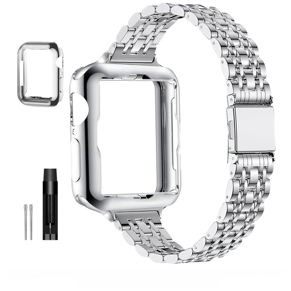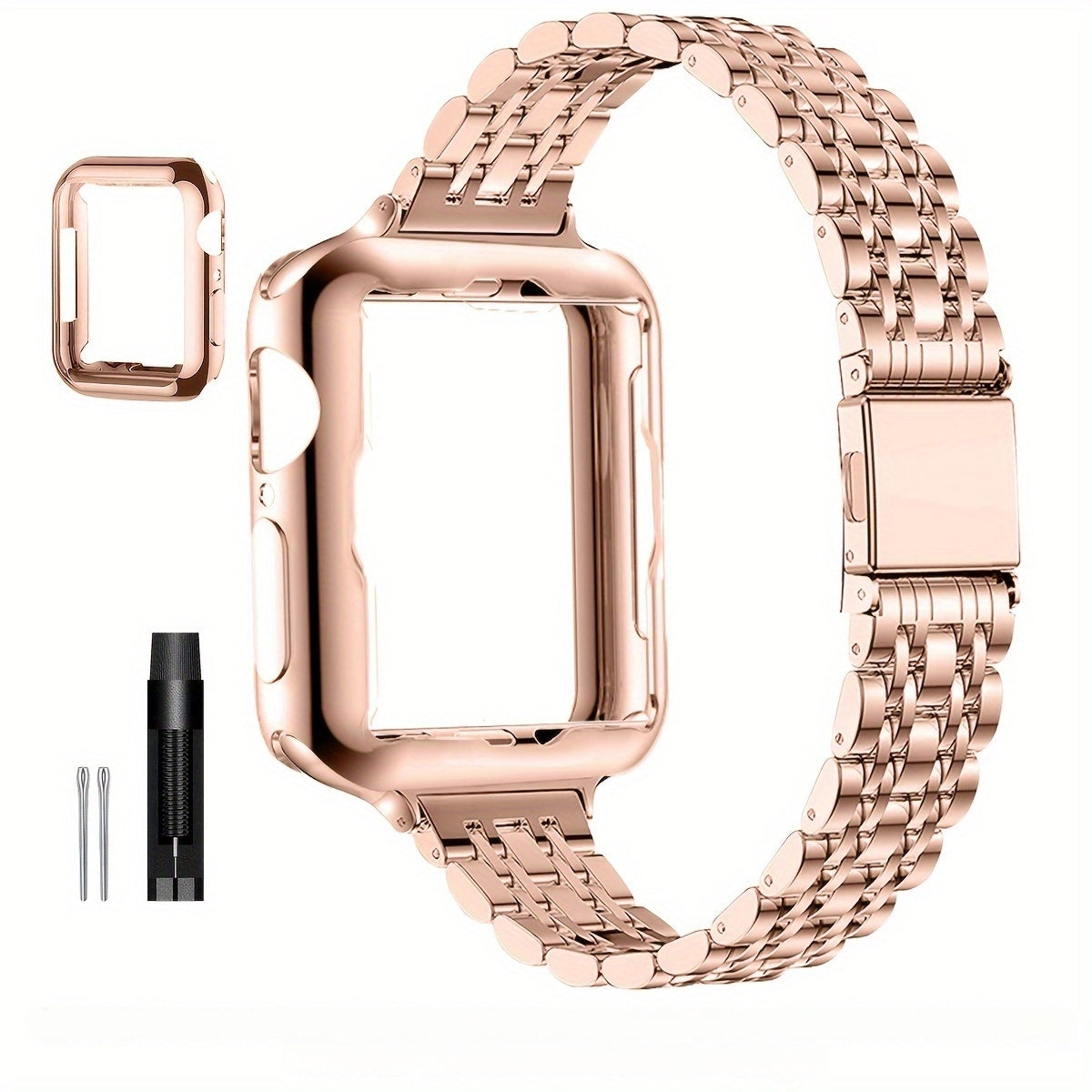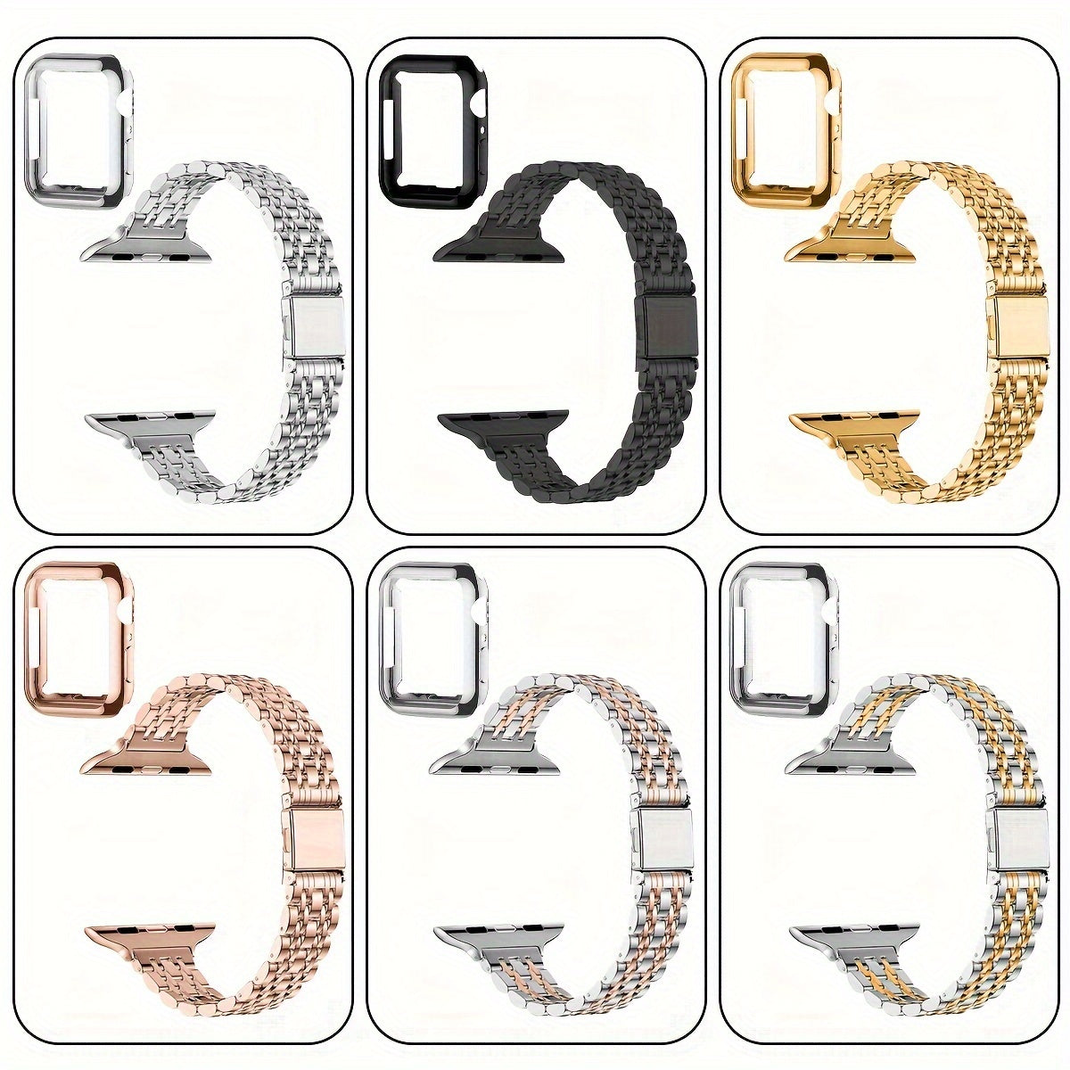 [Elegant Watch Band] Gold-Plated Stainless Steel 1pc Watch Band | Foldover Clasp and Protective Case for Apple Watch, Compatible with iWatch Series 1-9/SE/SE2, Elegant Women's Wristband Accessory