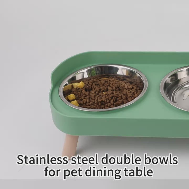 [Elevated Feeder] Elevated Double Bowl Feeder | Featuring Water And Feeding Integration Design, Available in Plastic, Stainless Steel, And Ceramic in Various Colors, Perfect for Cats And Dogs