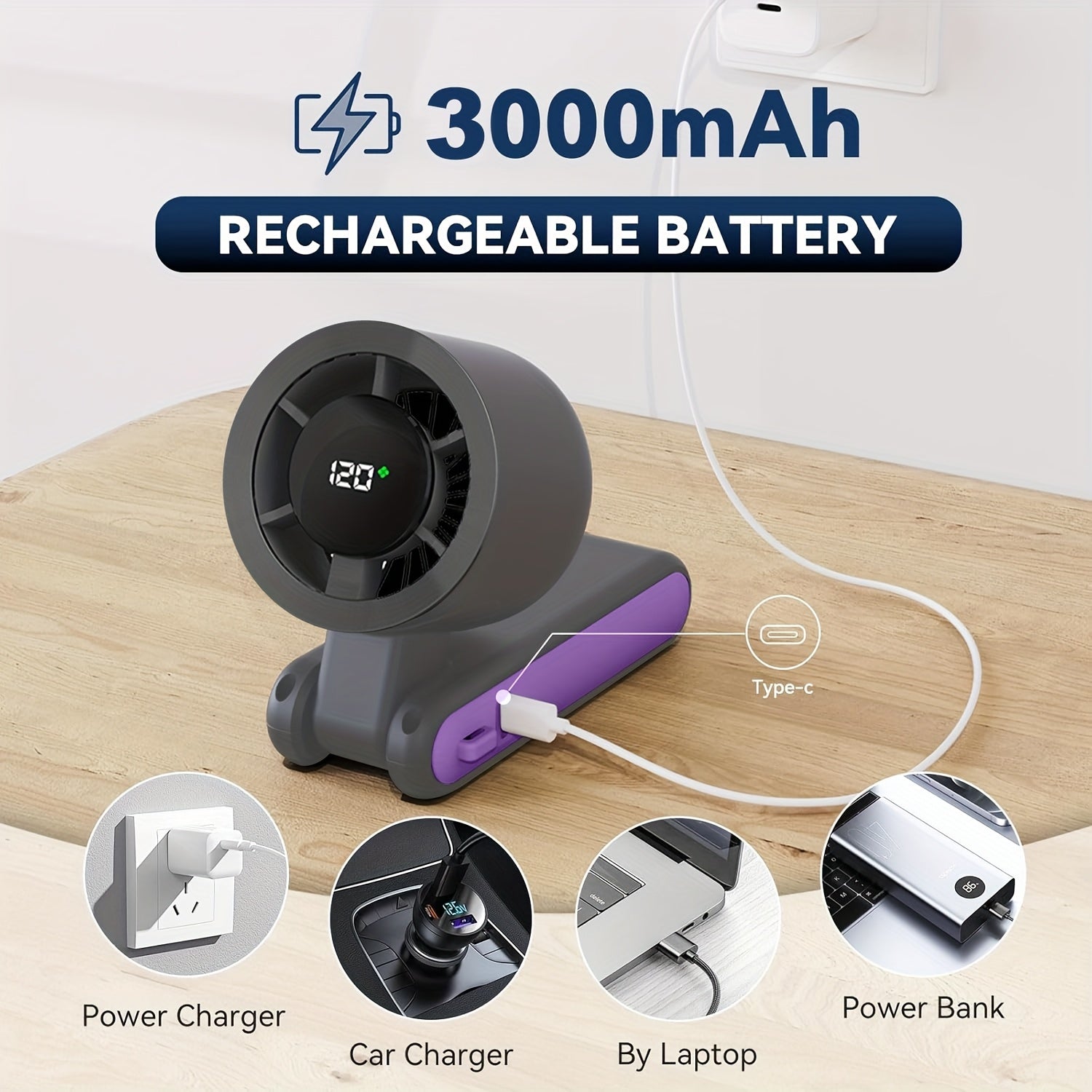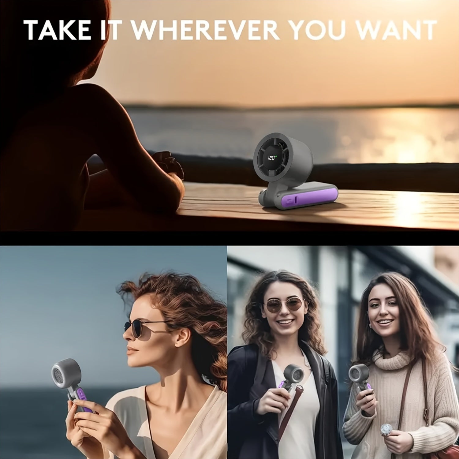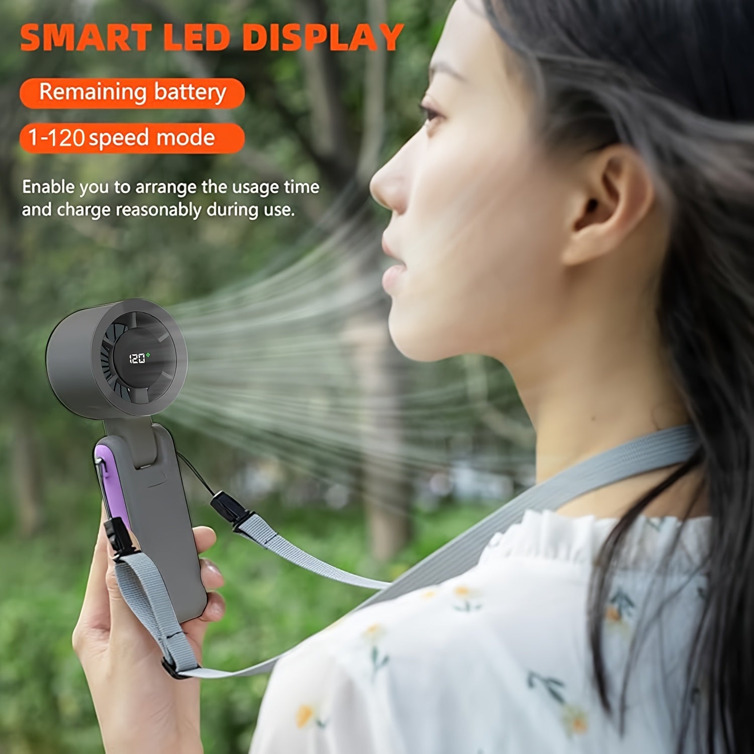 FJB 120W Portable Handheld Turbo Fan with Air Turbine Technology, 3-in-1 USB Rechargeable Lithium Battery, 12-Hour Working Time, Bright LED Display, Durable ABS Material, Ideal for Outdoor Activities, Travel, and Work, Personal Cooling Device | Versatile