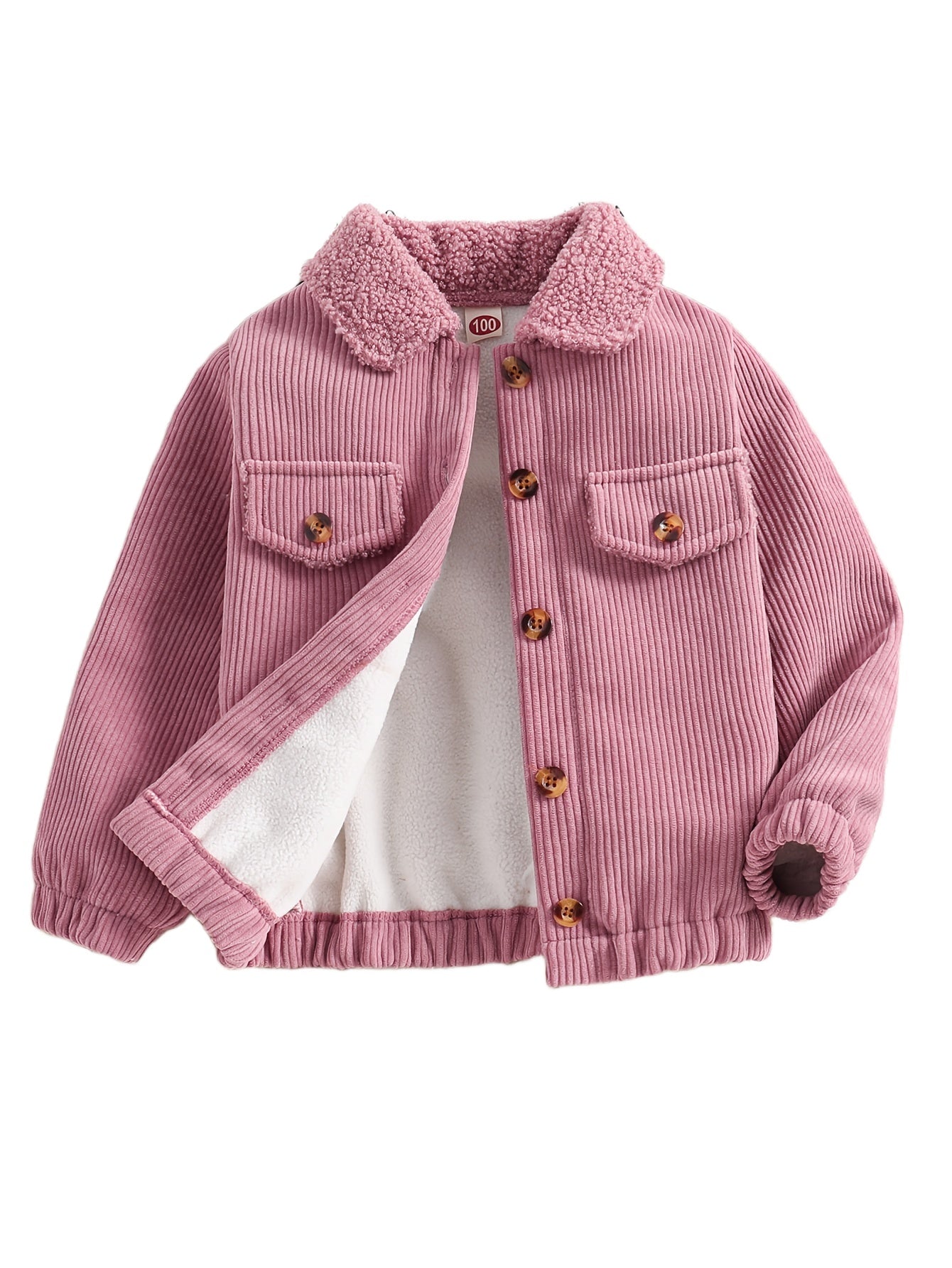 [Fleece Coat] Fleece-Lined Girls' Casual Long Sleeve Button-Up Coat | Solid Color, Lapel Collar, Regular Fit for Fall/Winter Outdoor Activities, Seasonal Layering Piece, Classic Collar Design, Durable Outerwear