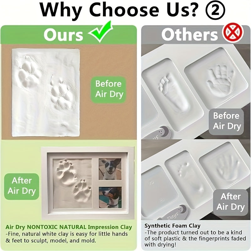 Footprint & Handprint Clay Kit, Photo Frame Kit for Girls and Boys, Shower Gifts, Registry, New Parents Gift, Perfect Memory and Nursery Room Decoration