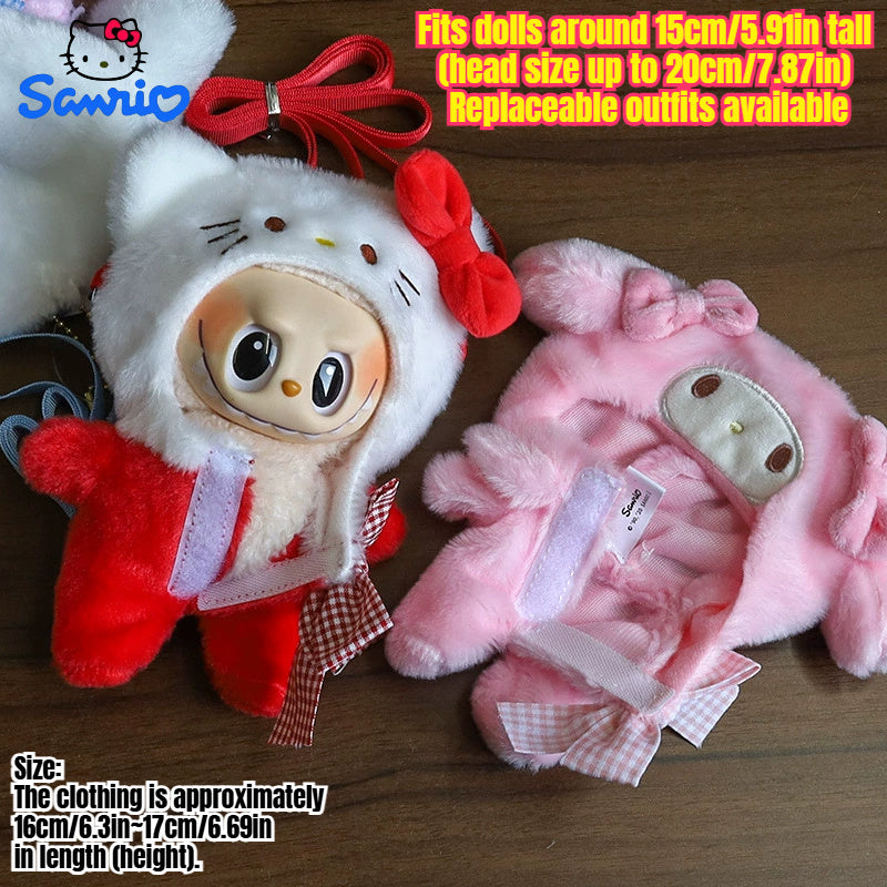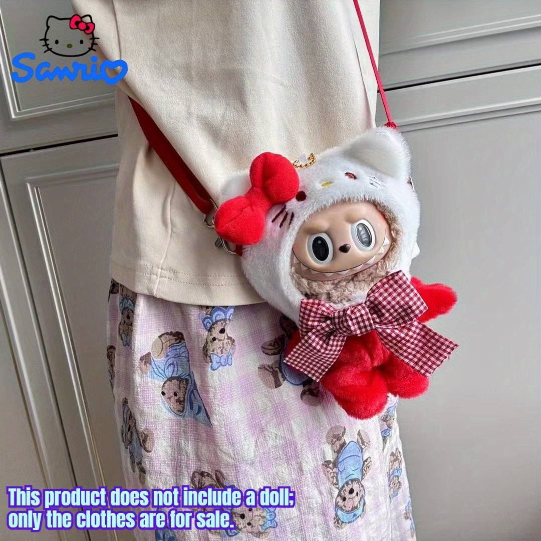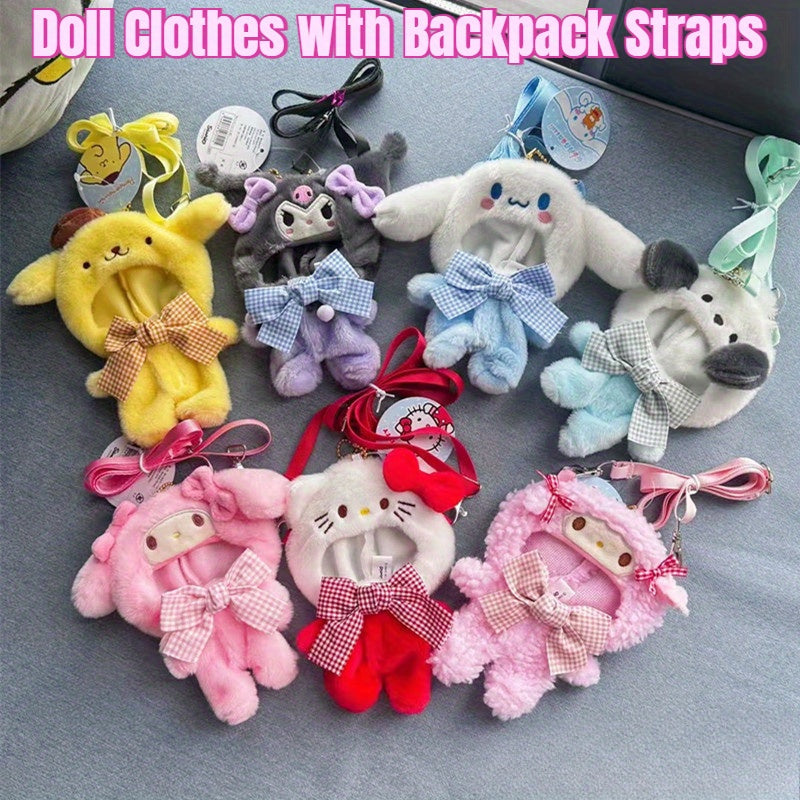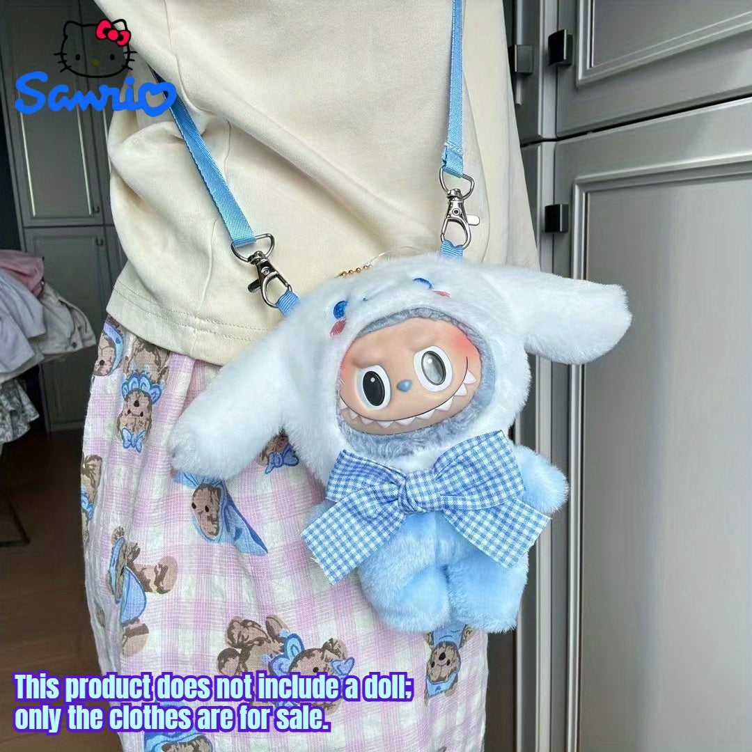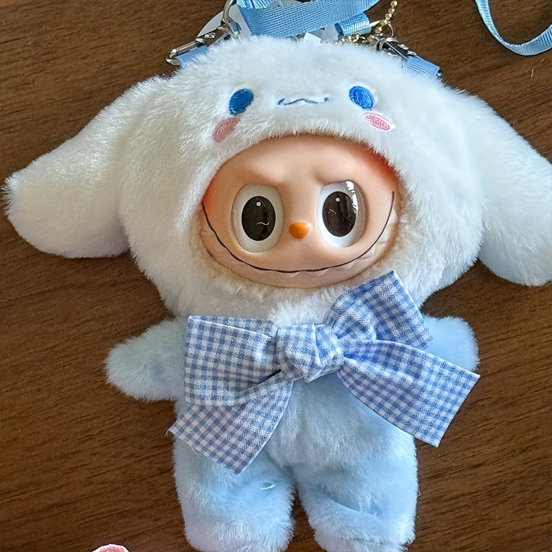 For Hello Kitty COS Rabbit Plush Backpack Accessory - Cute Blue & White Checkered Bow Design, Soft Polyester Fabric, Ideal for School & Birthday Gifts, School Backpack Accessory | Playful Accessory | Durable Zippers, Cute Backpacks