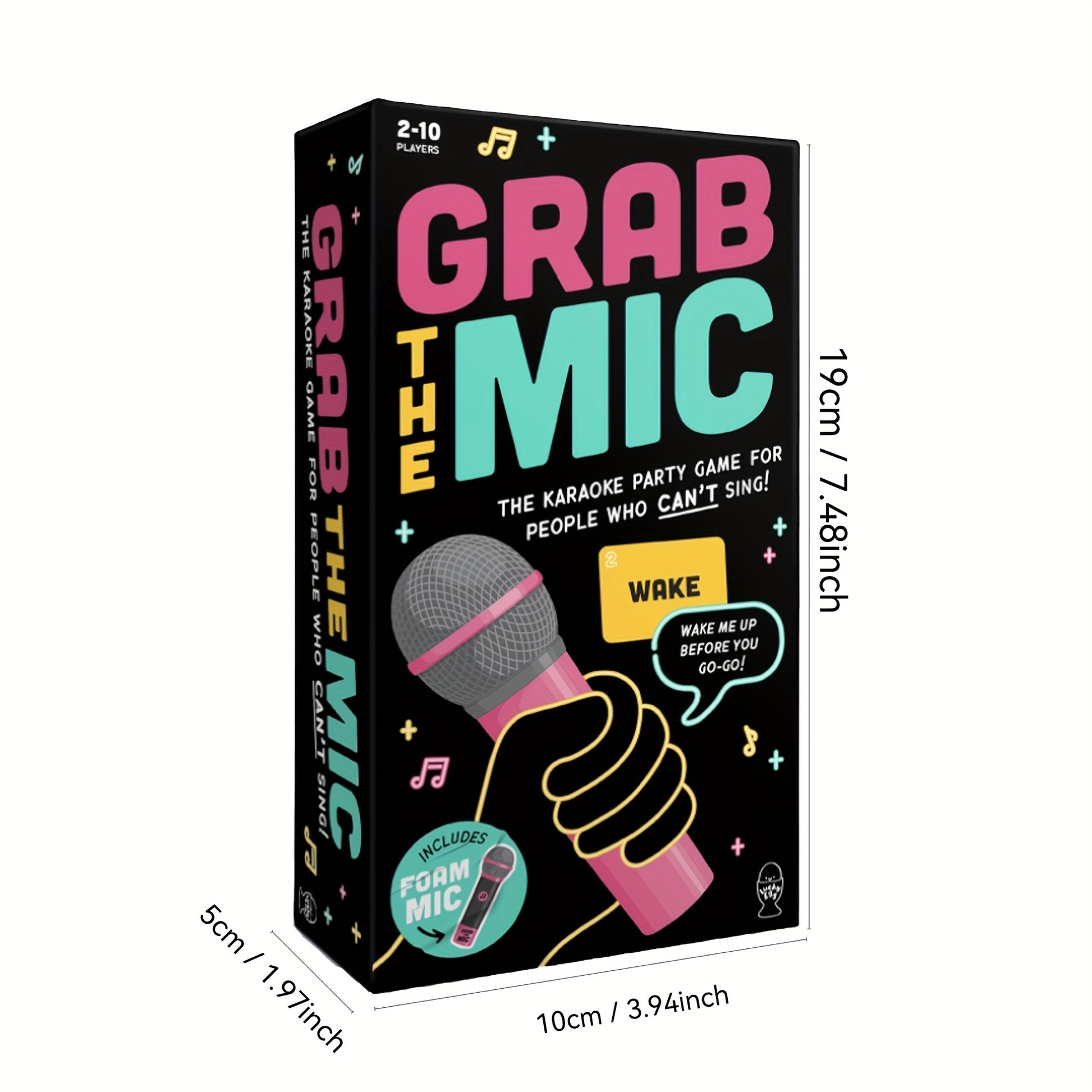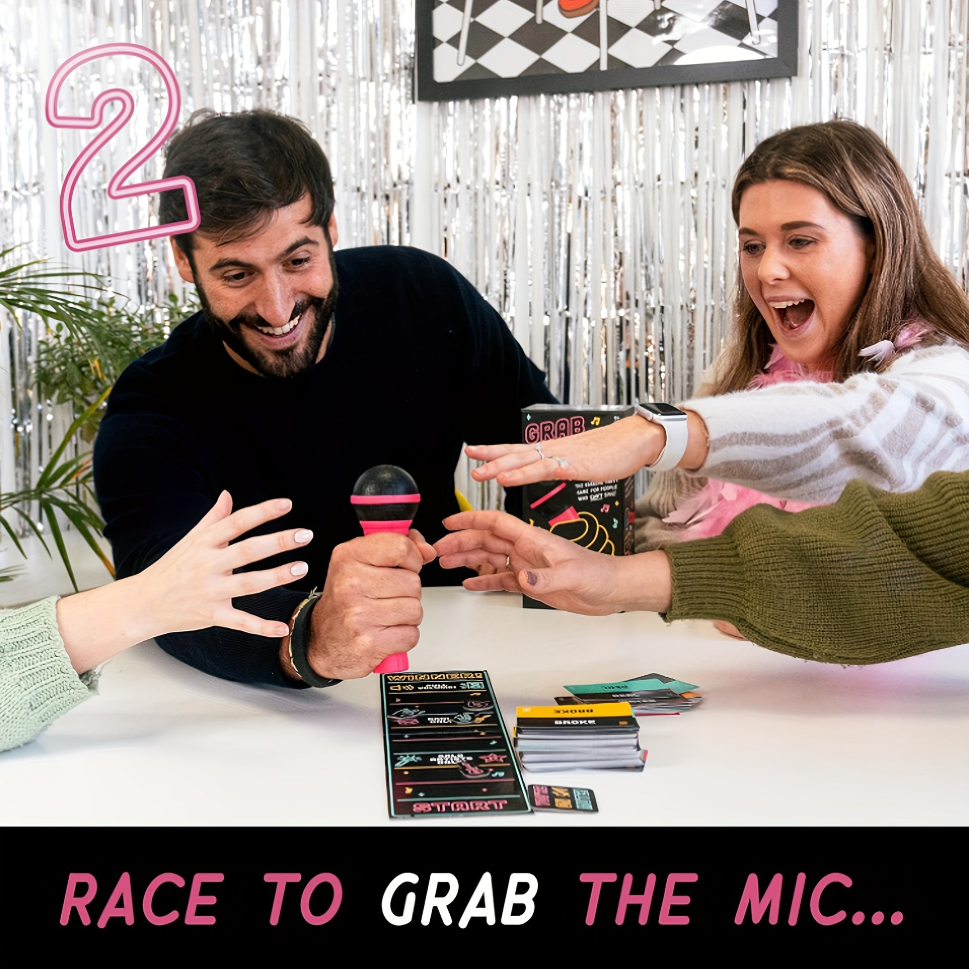 Grab the Mic - The Karaoke Party Game for 2-10 Players, 250 Lyric Cards, Pink & Black Microphone Design, Ideal for Family Game Nights & Birthday Parties, Family Entertainment|Playful Design|Fun Game Night, Karaoke Party Supplies