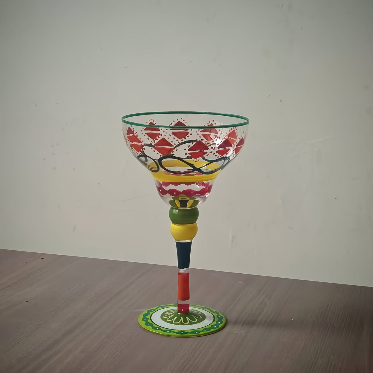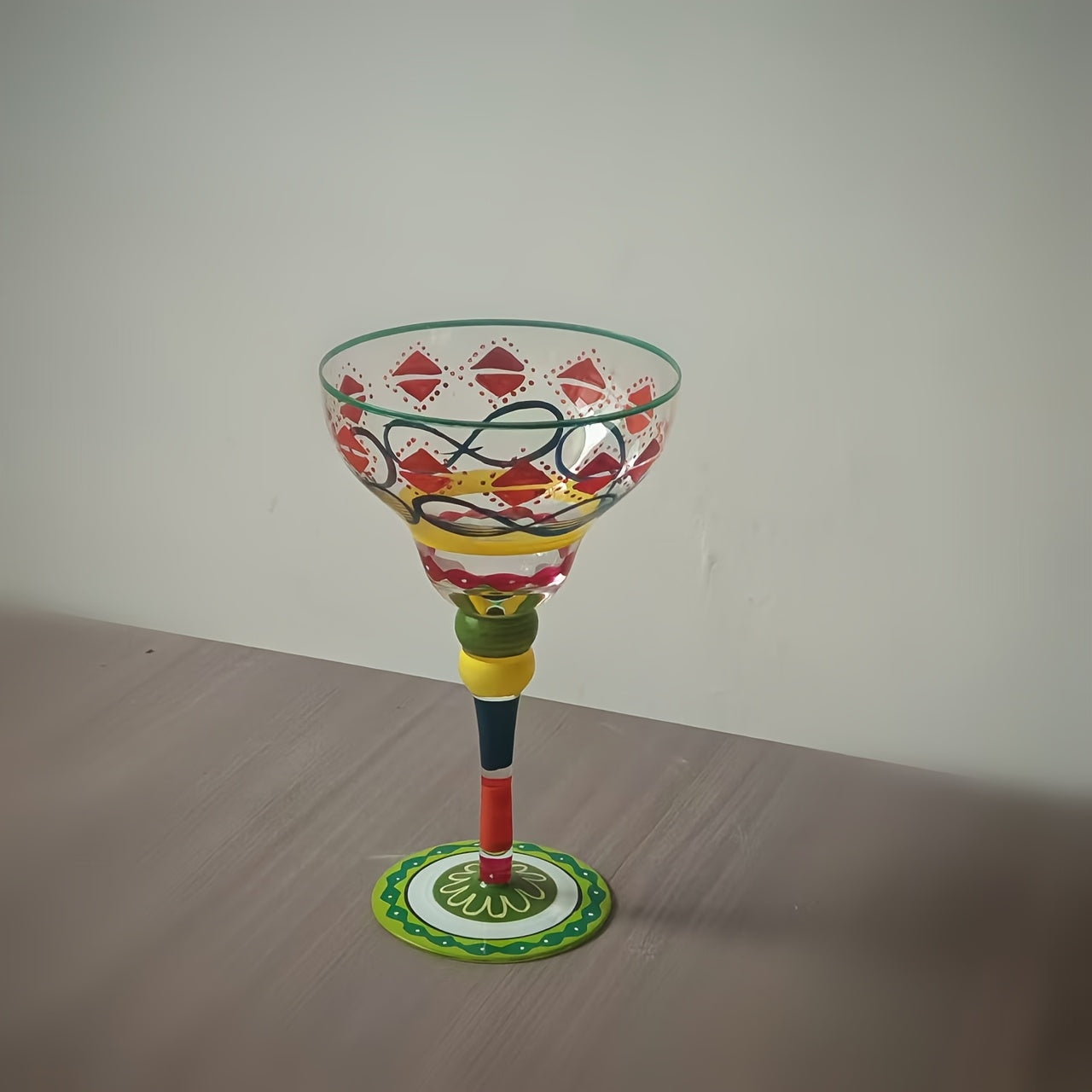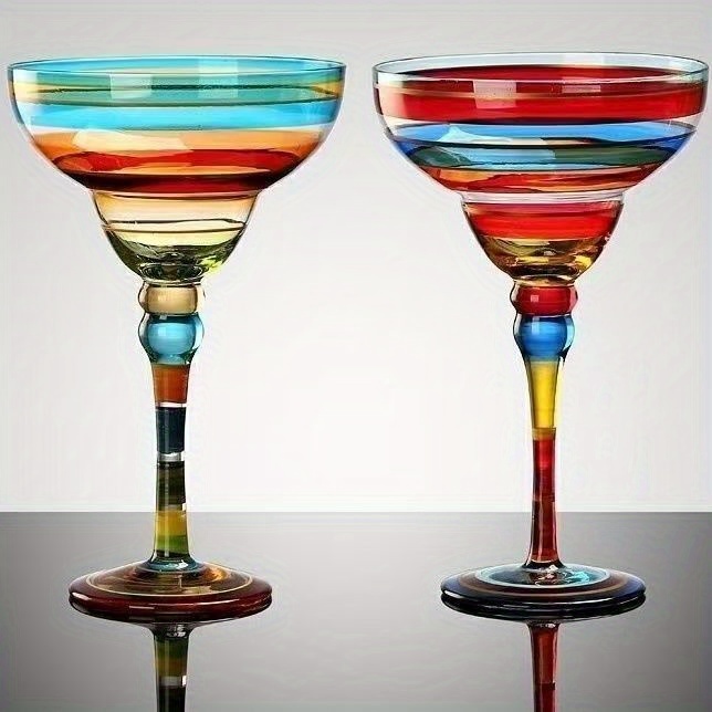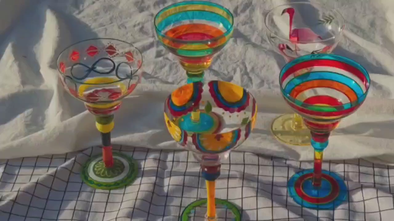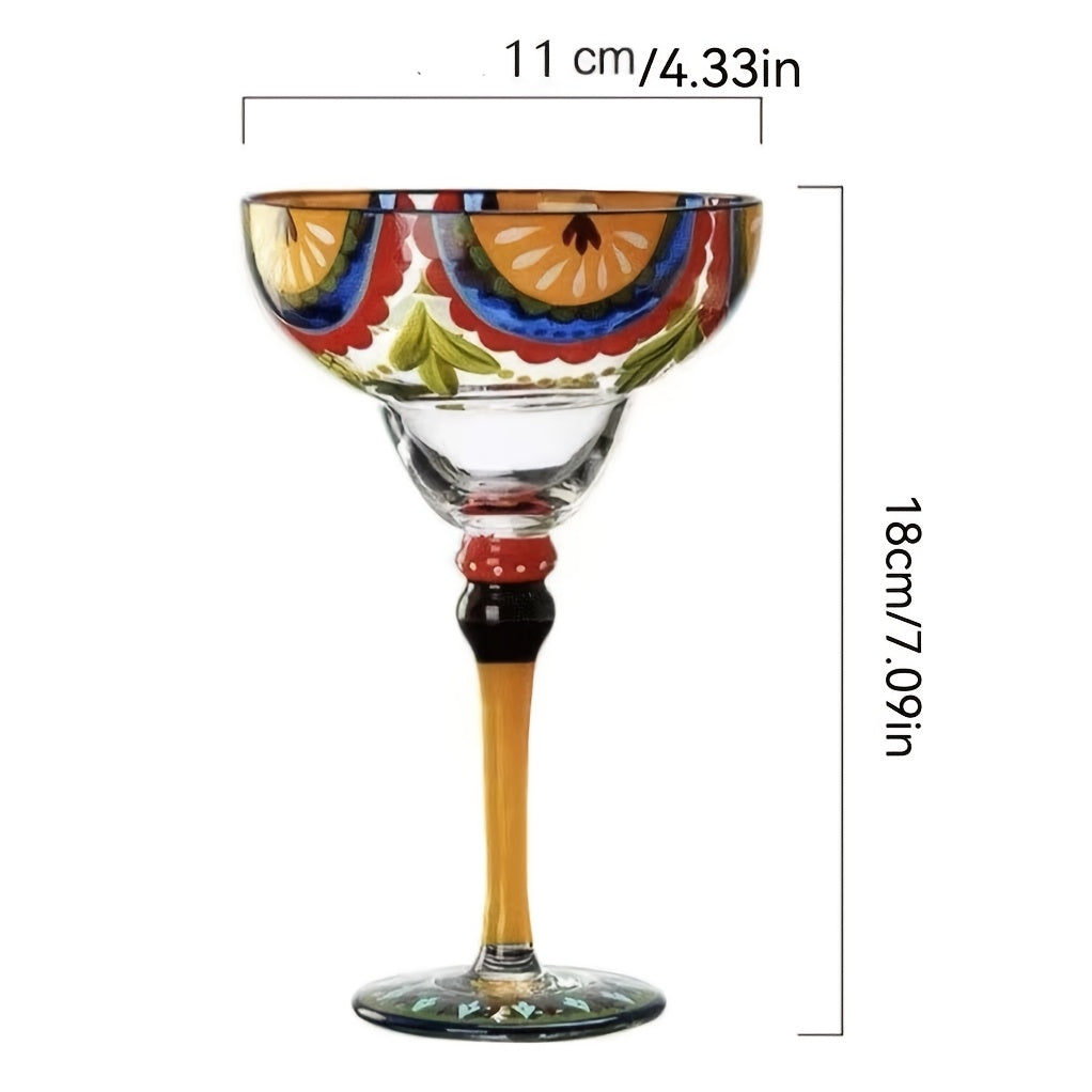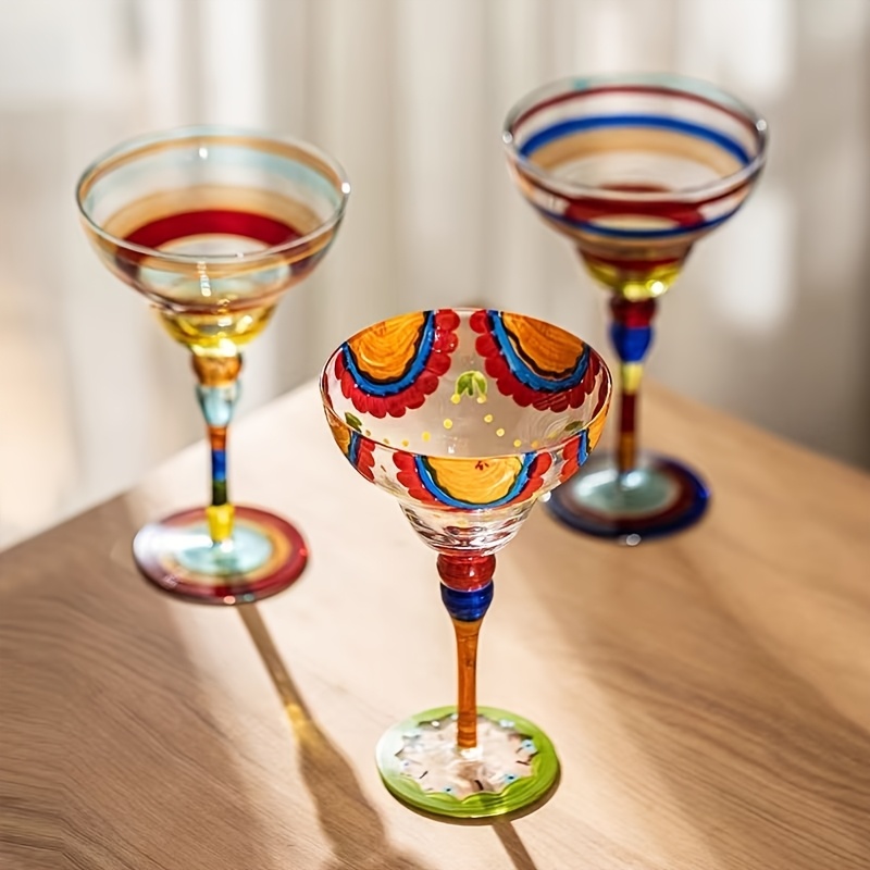 [Hand-Painted Margarita Glasses] Colorful Hand-Painted Margarita Glasses | Unique Floral & Geometric Design Cocktail Goblets for Home Bars | Hand Wash Only