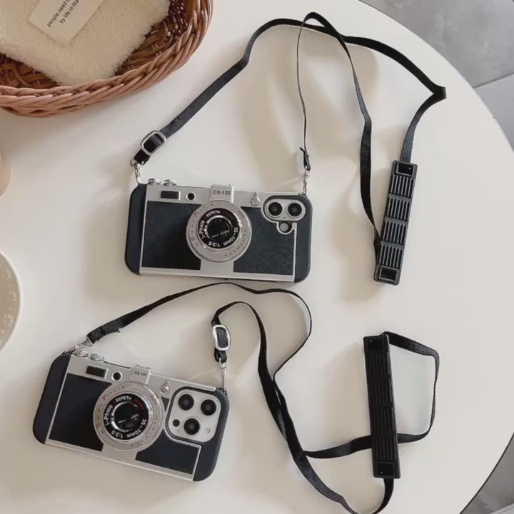 iPhone Crossbody Strap Case - 3D Camera Phone Case for 16 15 Pro 14 Plus 11 13 12 Pro Max - Cute Soft Protective Cover