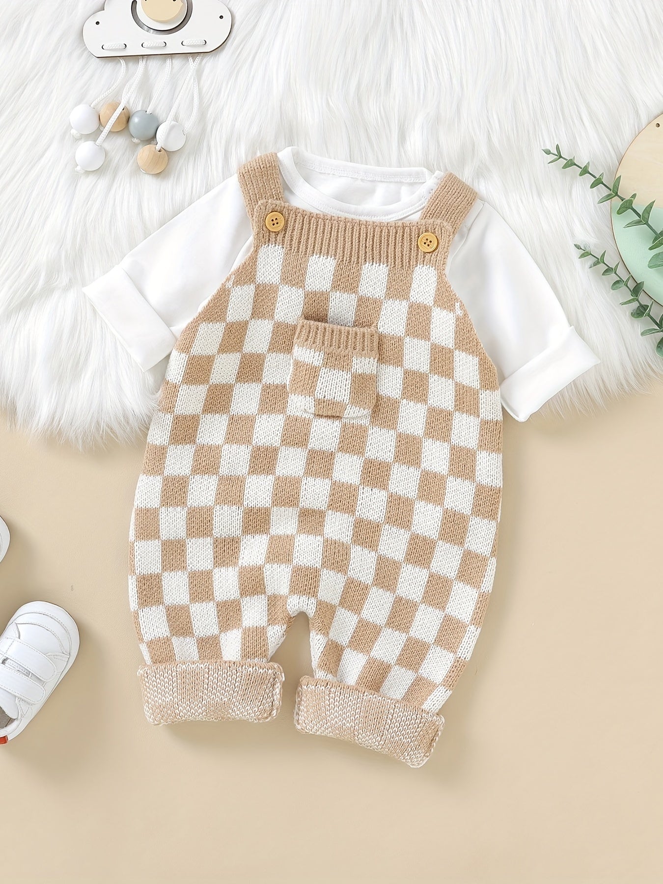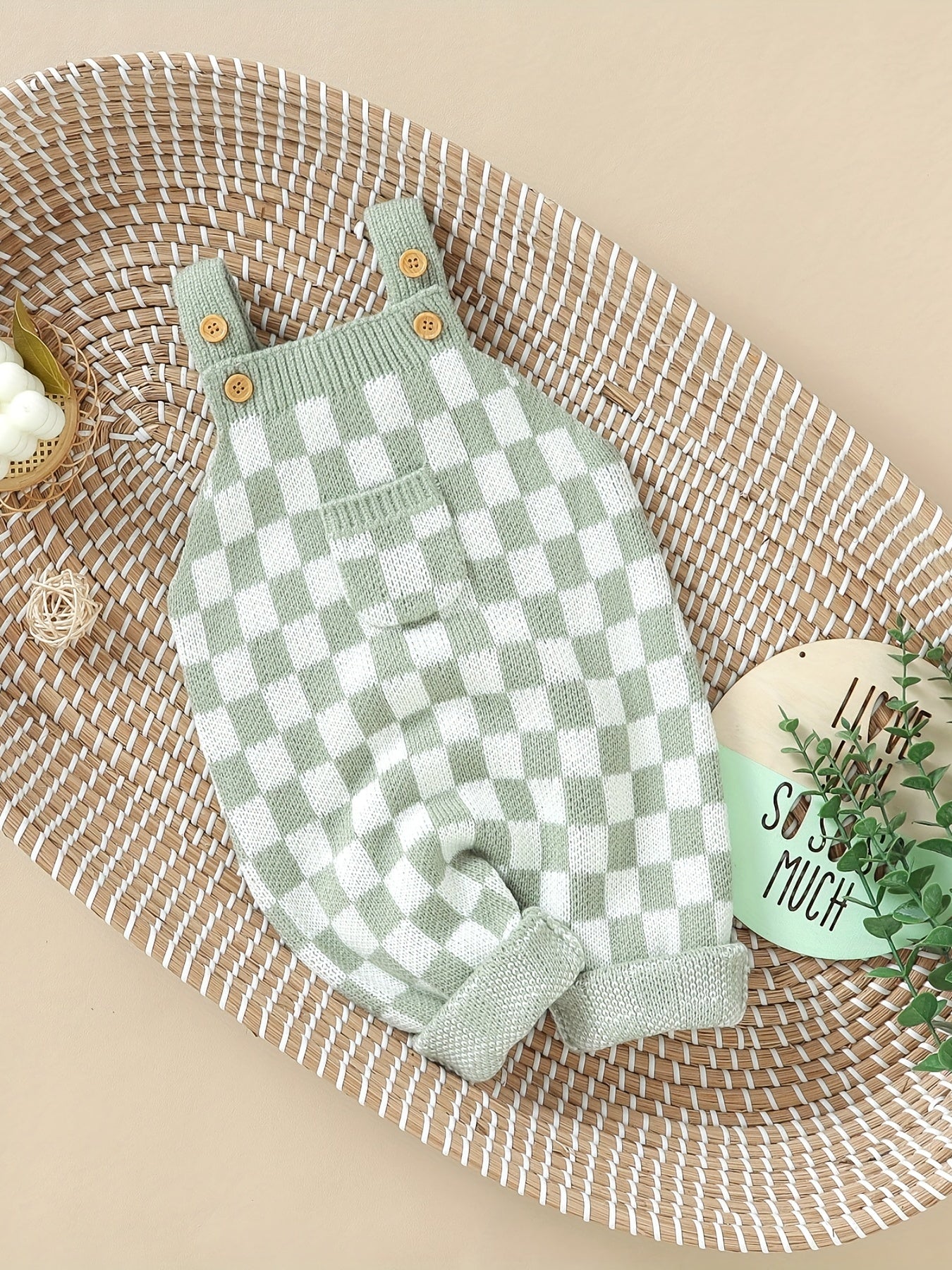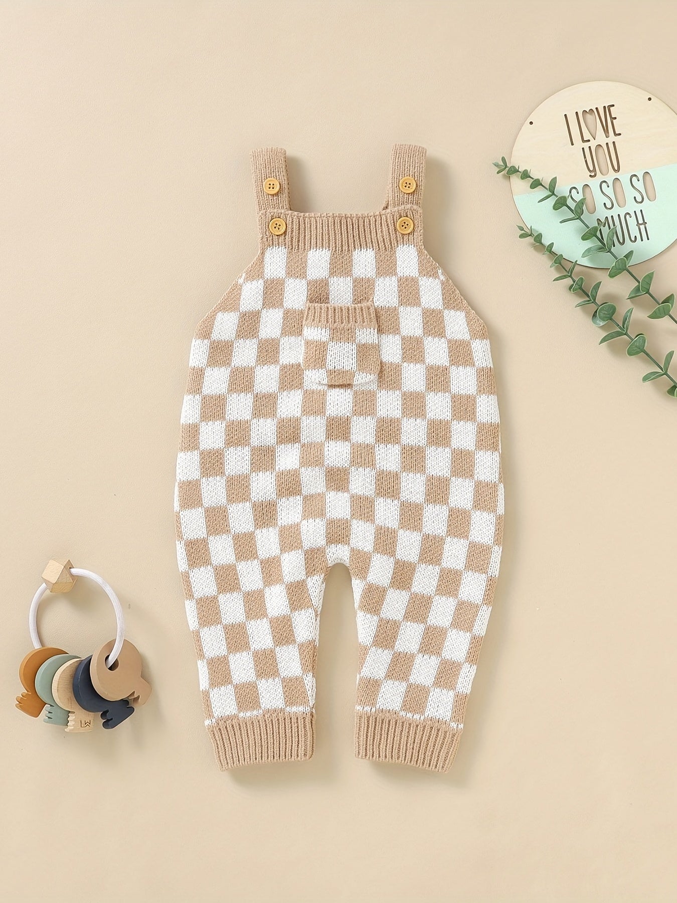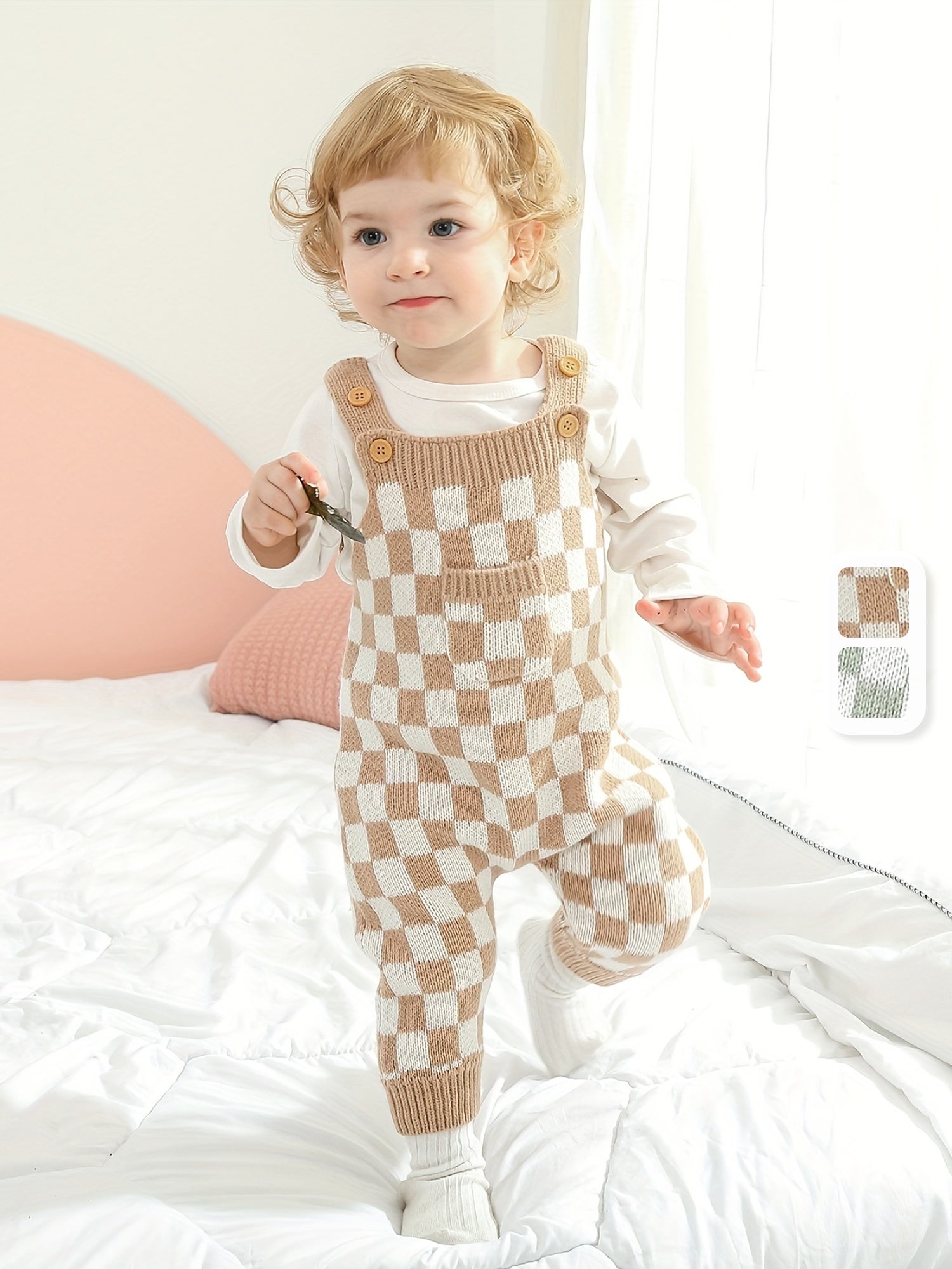 Kids' Knit Checkerboard Overalls with Cute Front Pocket - Cozy Acrylic, Stretchy, All-Season Wear for Boys and Girls, Casual Style, Perfect for Outdoor Wear, Perfect for Outdoor