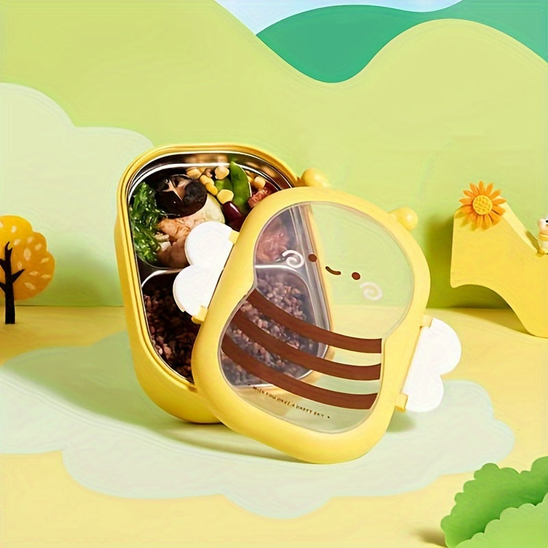 Leakproof Cartoon Bee Insulated Lunch Box - Stainless Steel Bento with Food-Grade Compartments, Thermal Meal Container for Students & Workers, Hand Washable