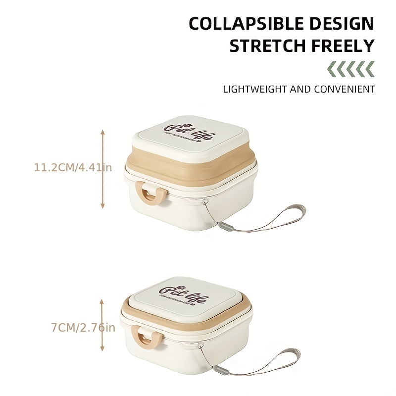 Convenient Design: Collapsible and portable, easy to carry and store.Double-Layer Design: Two bowls in one, perfect for both food and water.Leak-Proof: Avoid spills and messes with the leak-proof design.Durable Material: Made of high-quality plastic, sturdy and long-lasting.Easy to Clean: Simply rinse with water or put in the dishwasher.