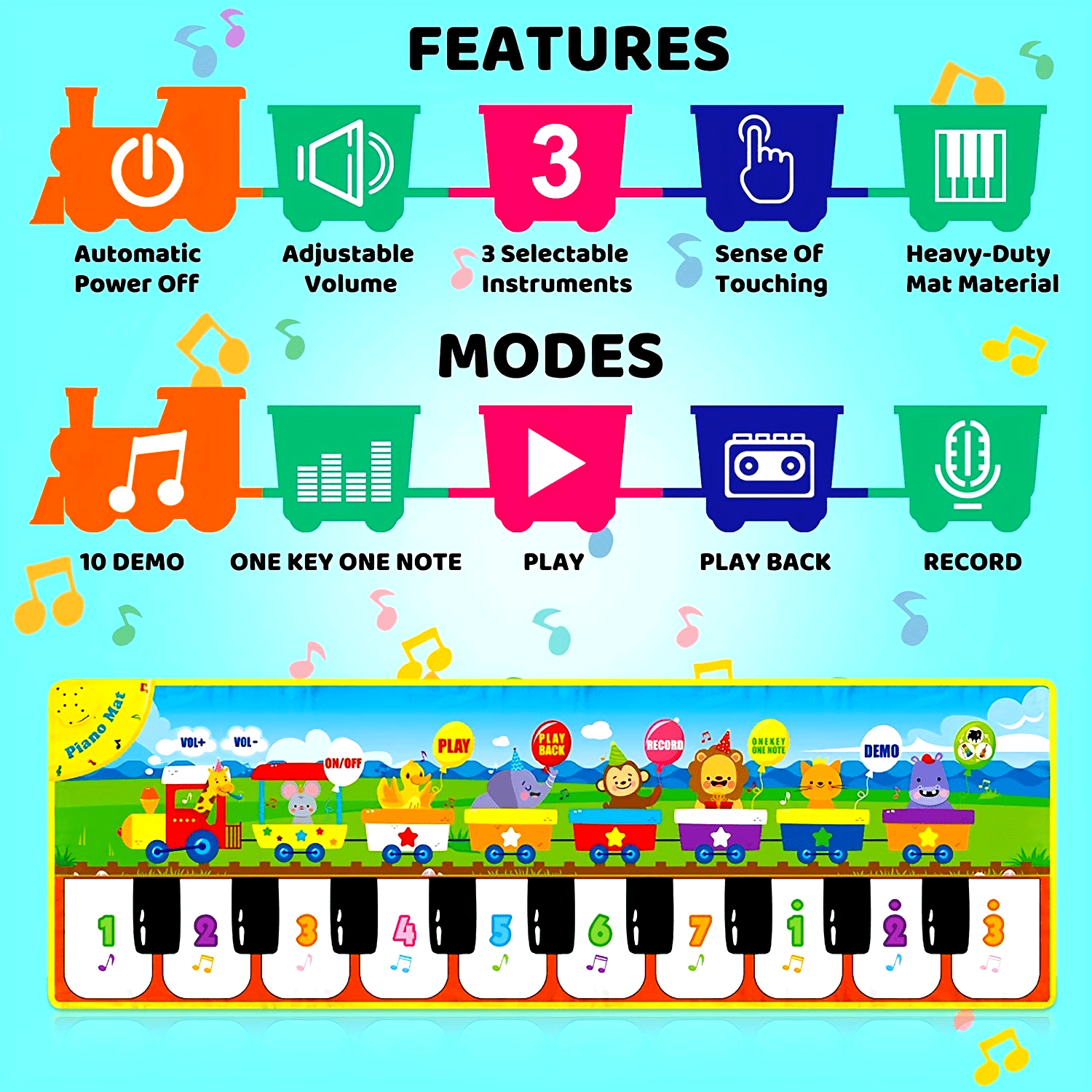 [Musical Piano Mat | Kids] 10 Songs | Musical Piano Mat for Kids, Floor Dance Toy | 8 Animal Sounds, 5 Modes, Children's Keyboard Blanket Music Touch Game Mat, Music Early Education Toy, Halloween Christmas Gift for Winter Ramadan Mubarak