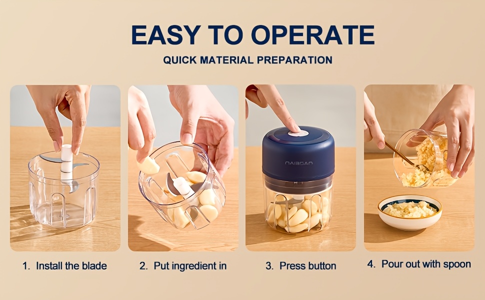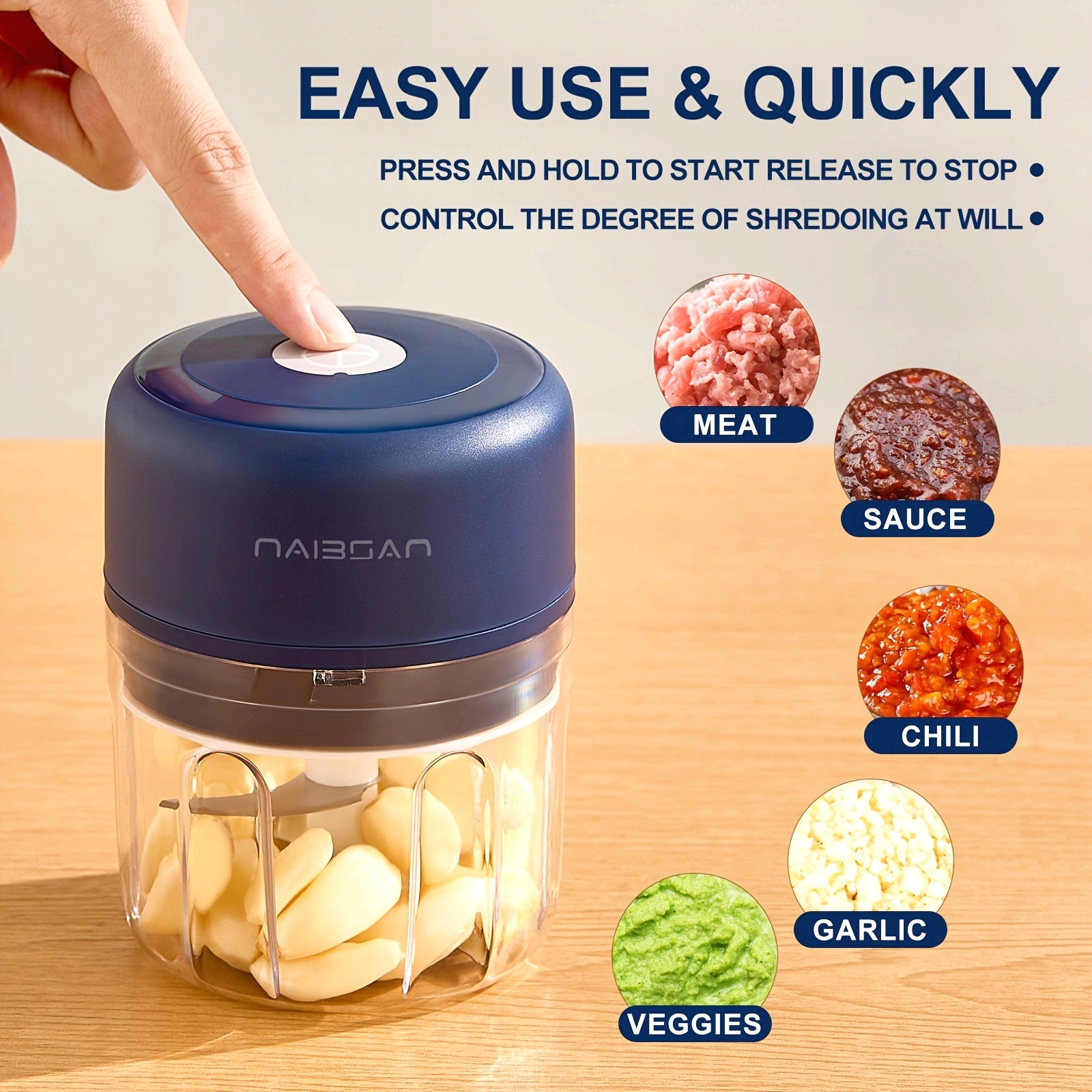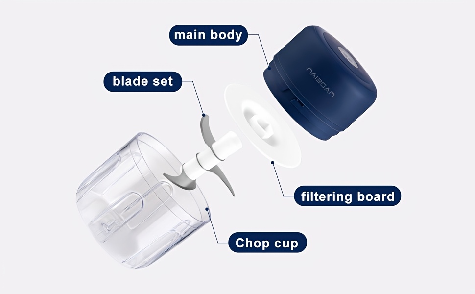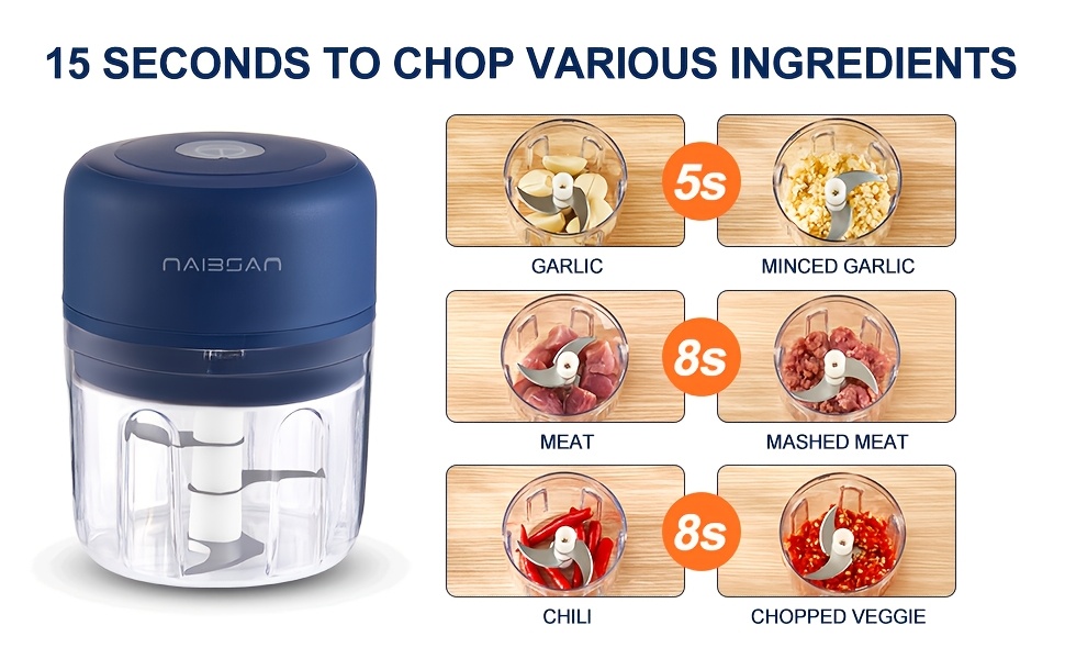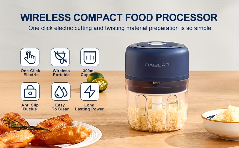 Naibsan Electric Food Shredder, Mini Meat Grinder, Garlic Puree Maker, USB Charging, 5000rpm, 251ml Capacity, Portable Kitchen Gadget for Minced Meat, Vegetable, Onion, Ginger, Chili, Rechargeable Lithium Battery