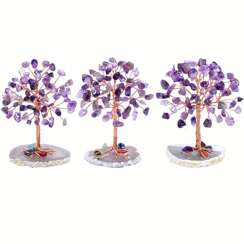 Natural Amethyst Crystal Tree Ornament - 1pc Quartz Decoration Home Decor Festival Gift (Random Base)