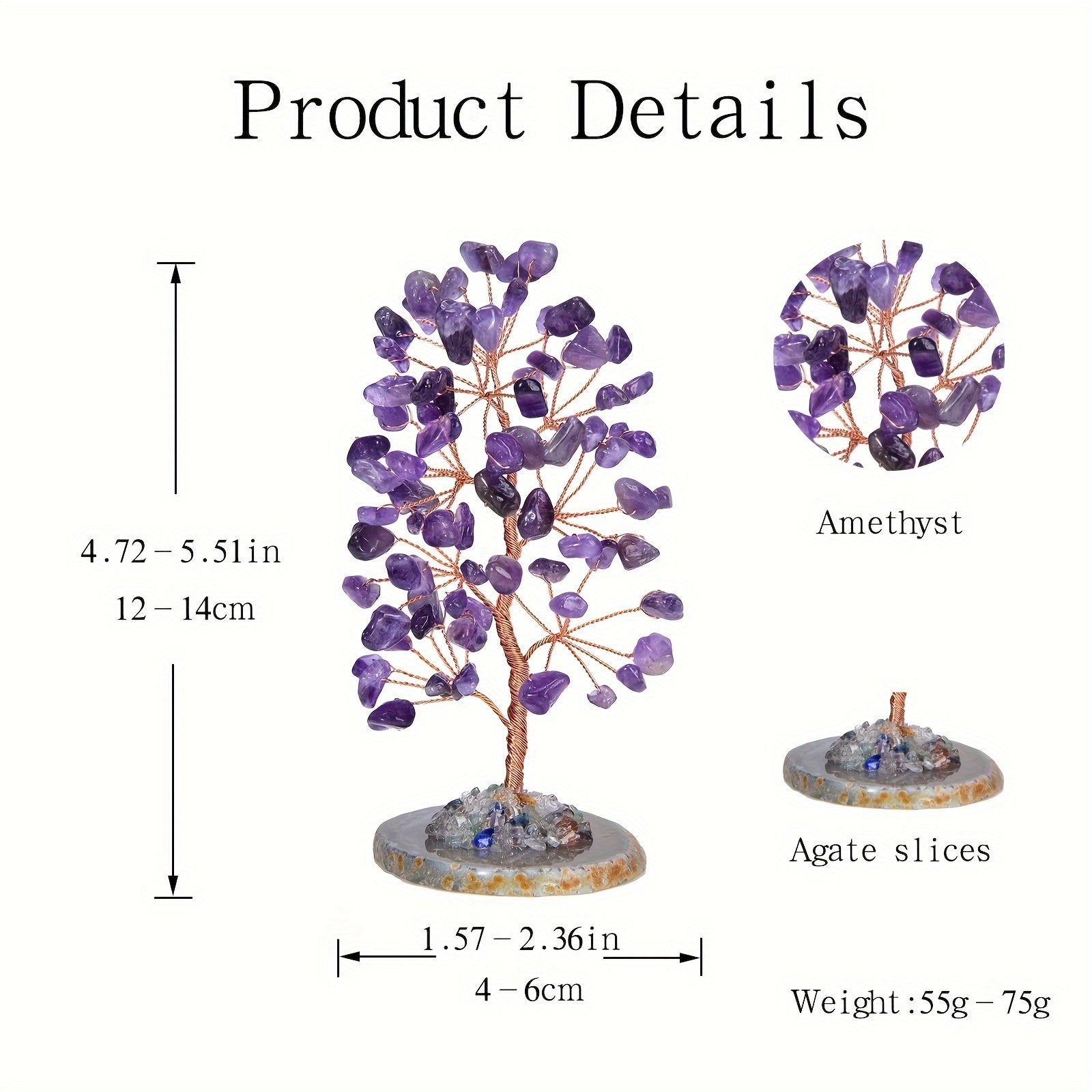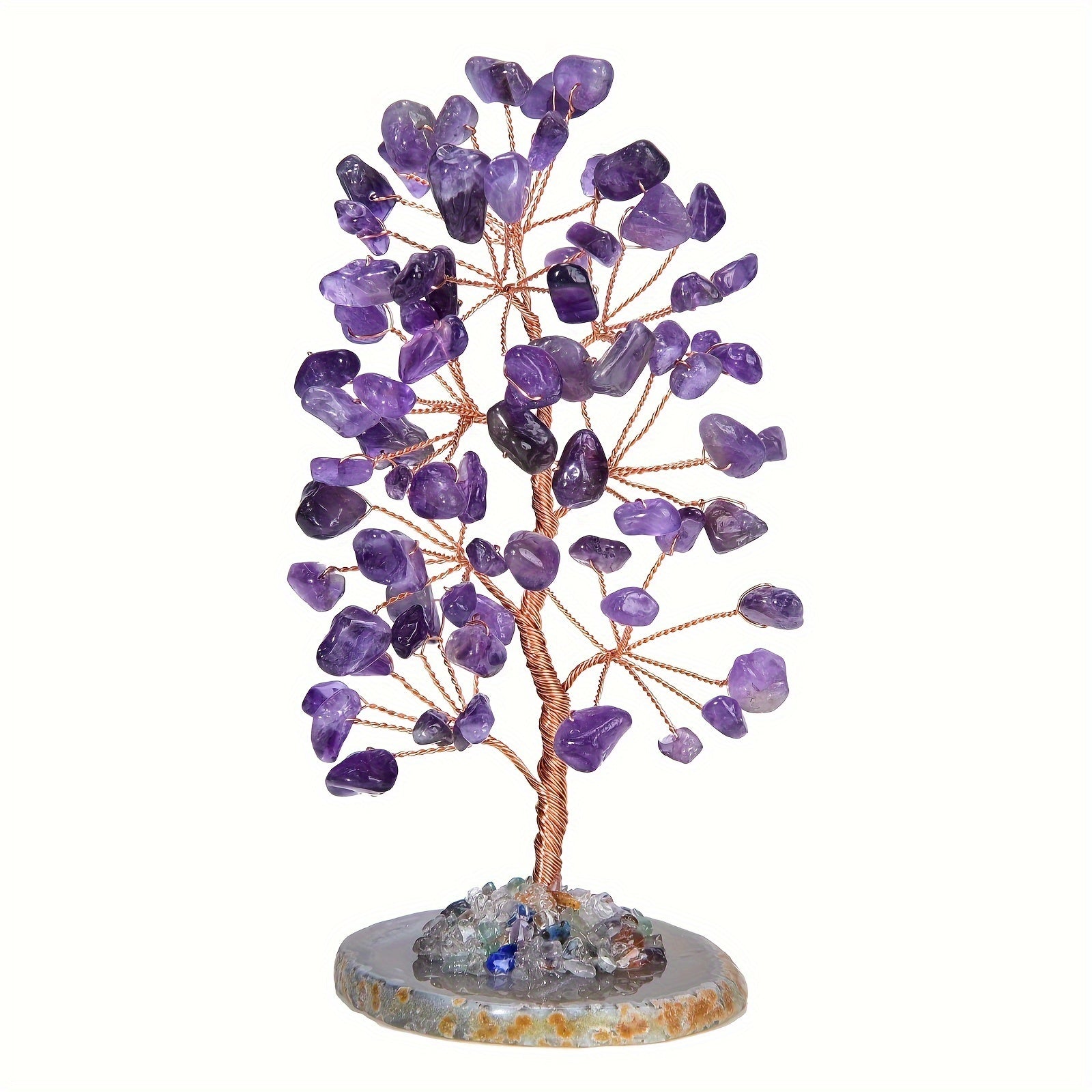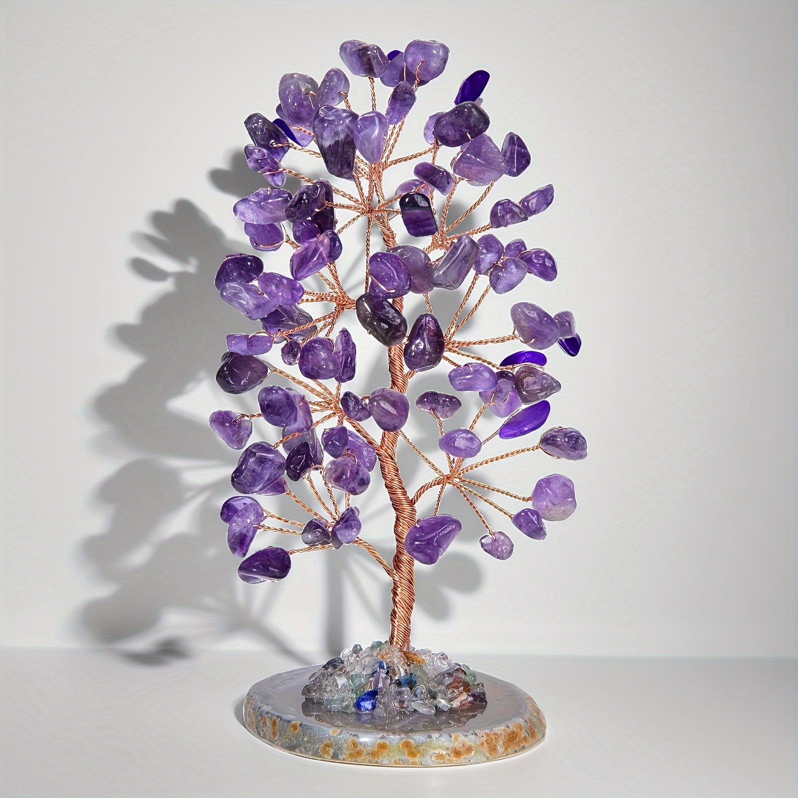 Natural Amethyst Tree of Life, Crystal Tree with Agate Base, Handmade Gemstone Tree Desktop Decoration, Lucky Money Tree Bonsai, Home Decoration, Spiritual and Mysterious Gift
