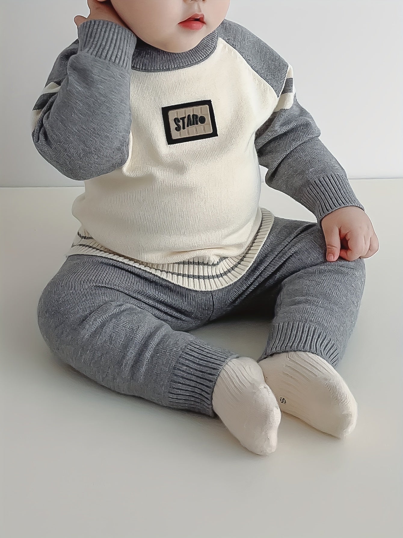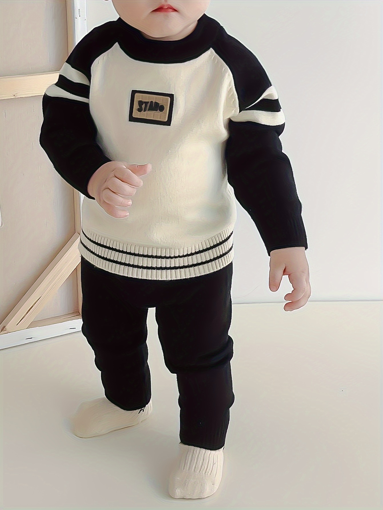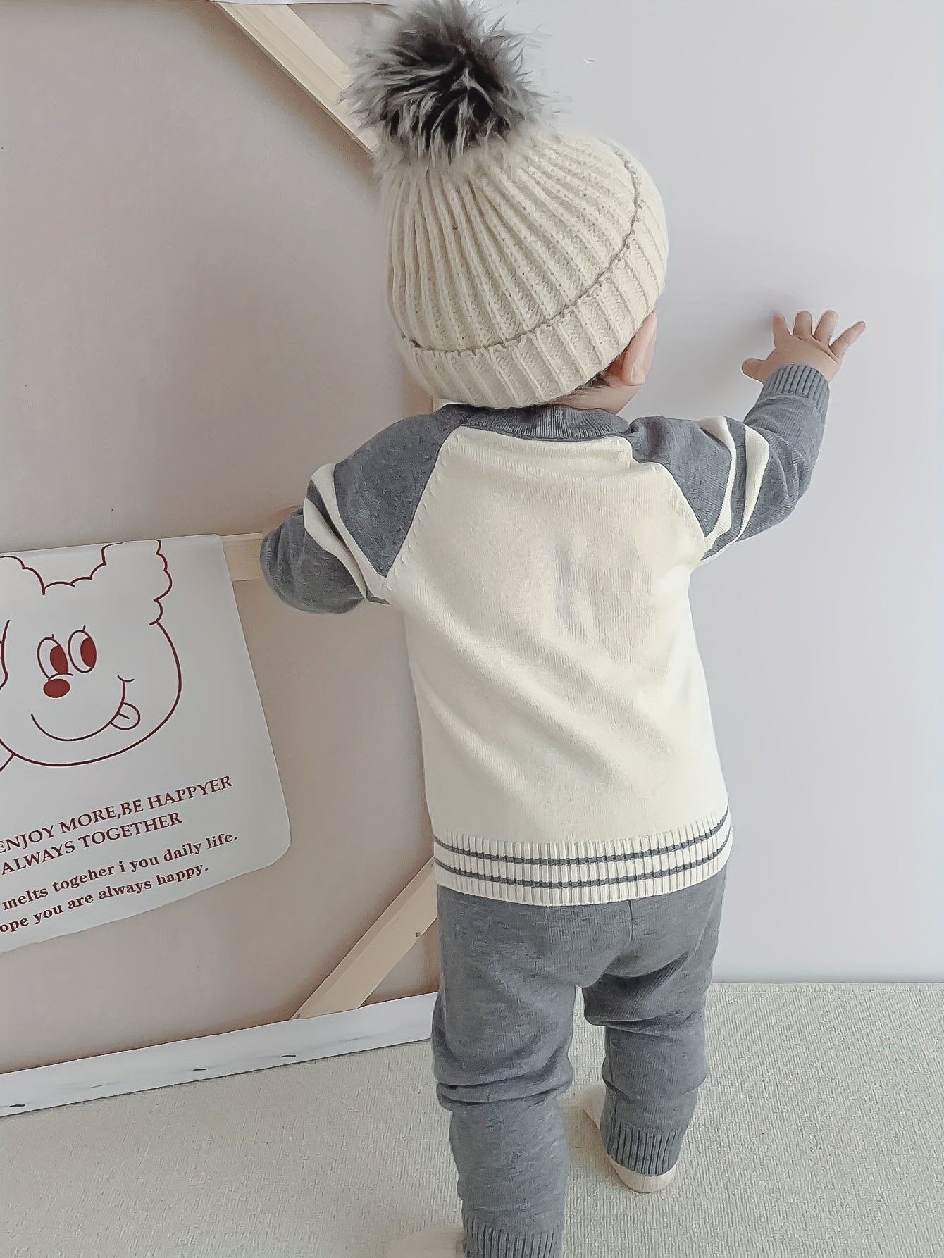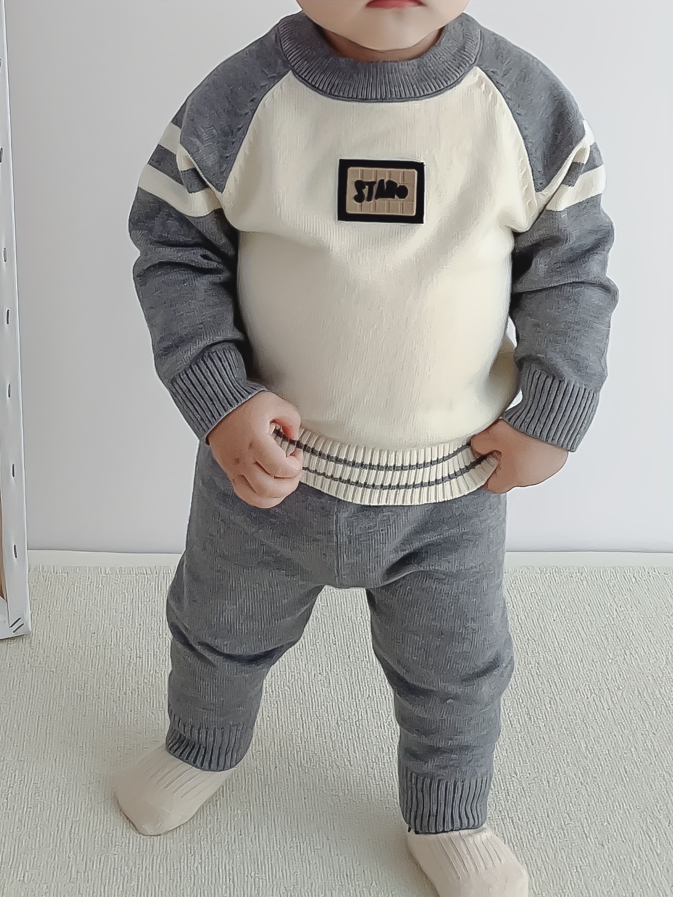 Newborn Baby Clothes Autumn and Winter Set for Boys: Stylish Sweater Pullover Knitted Long Pants Two-Piece Suit, Perfect for Outdoor