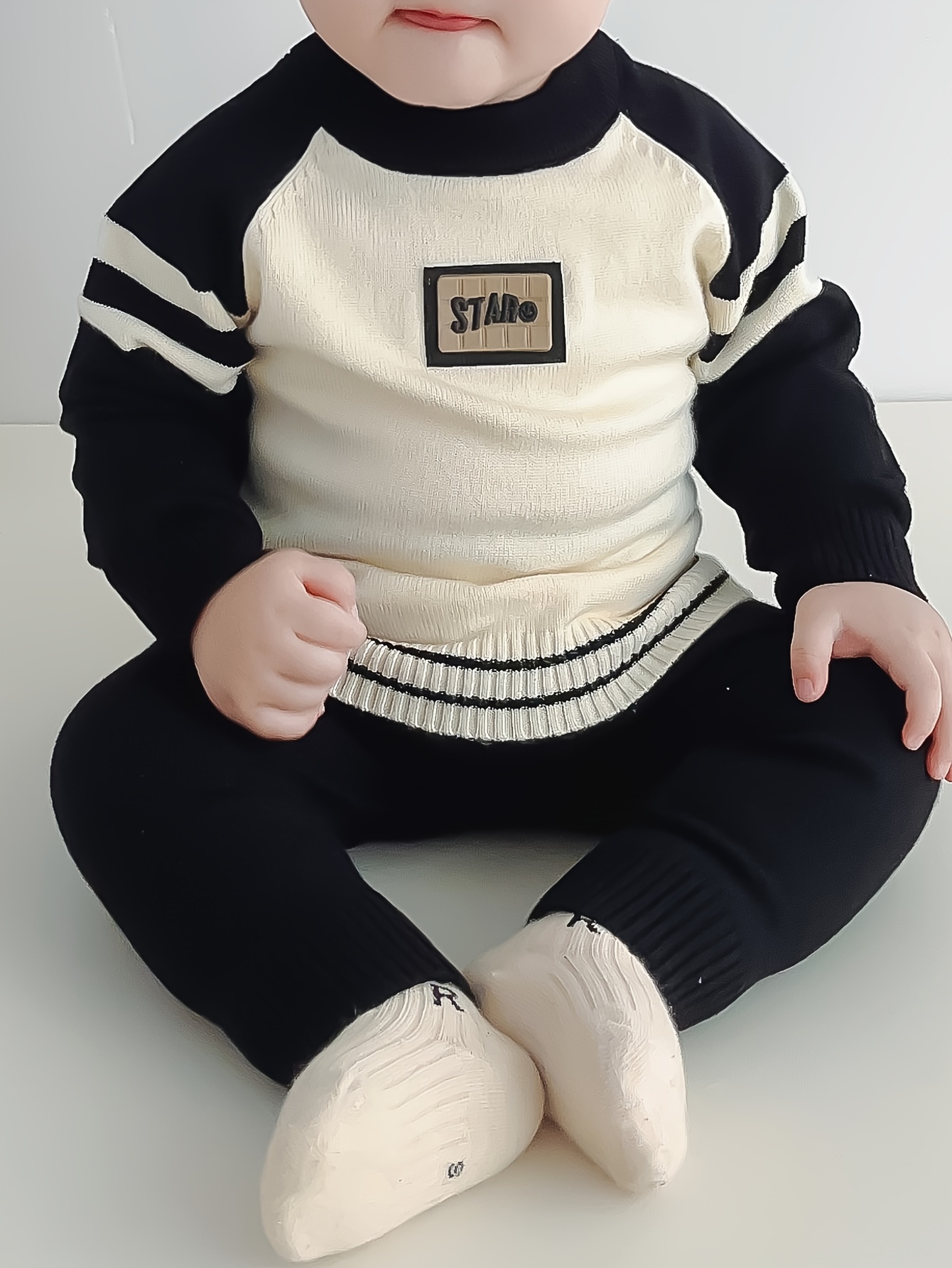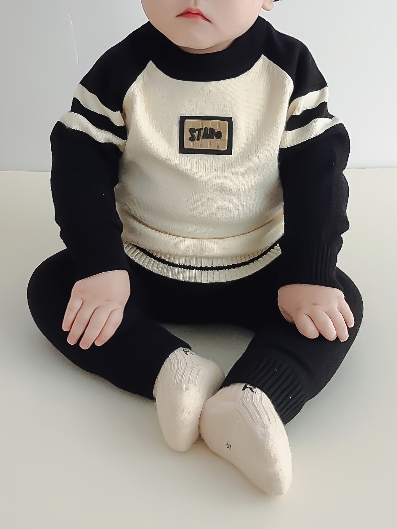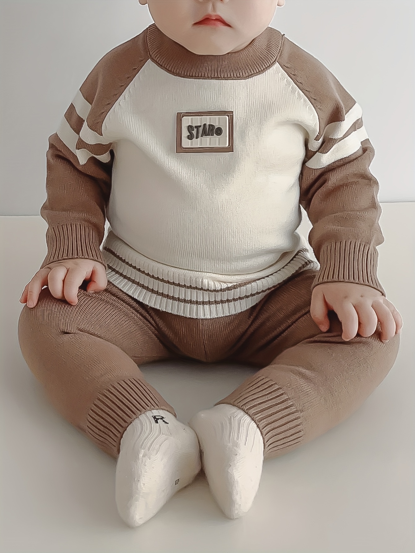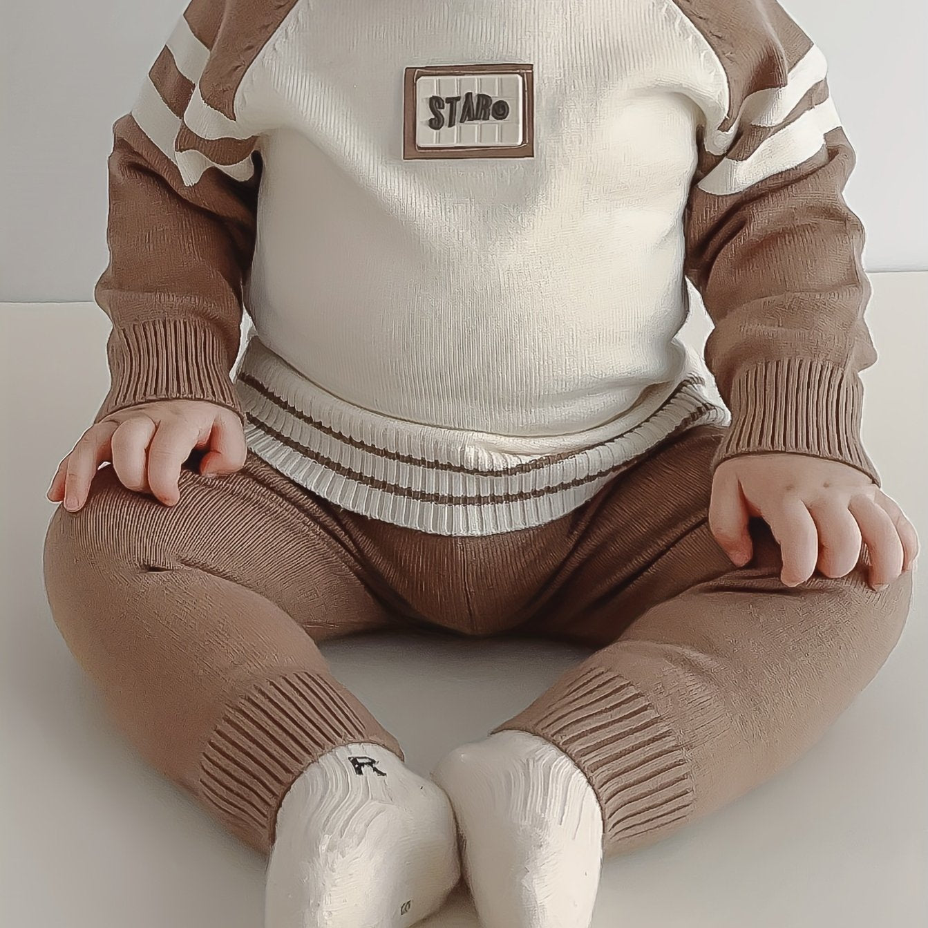 Newborn Baby Clothes Autumn and Winter Set for Boys: Stylish Sweater Pullover Knitted Long Pants Two-Piece Suit, Perfect for Outdoor