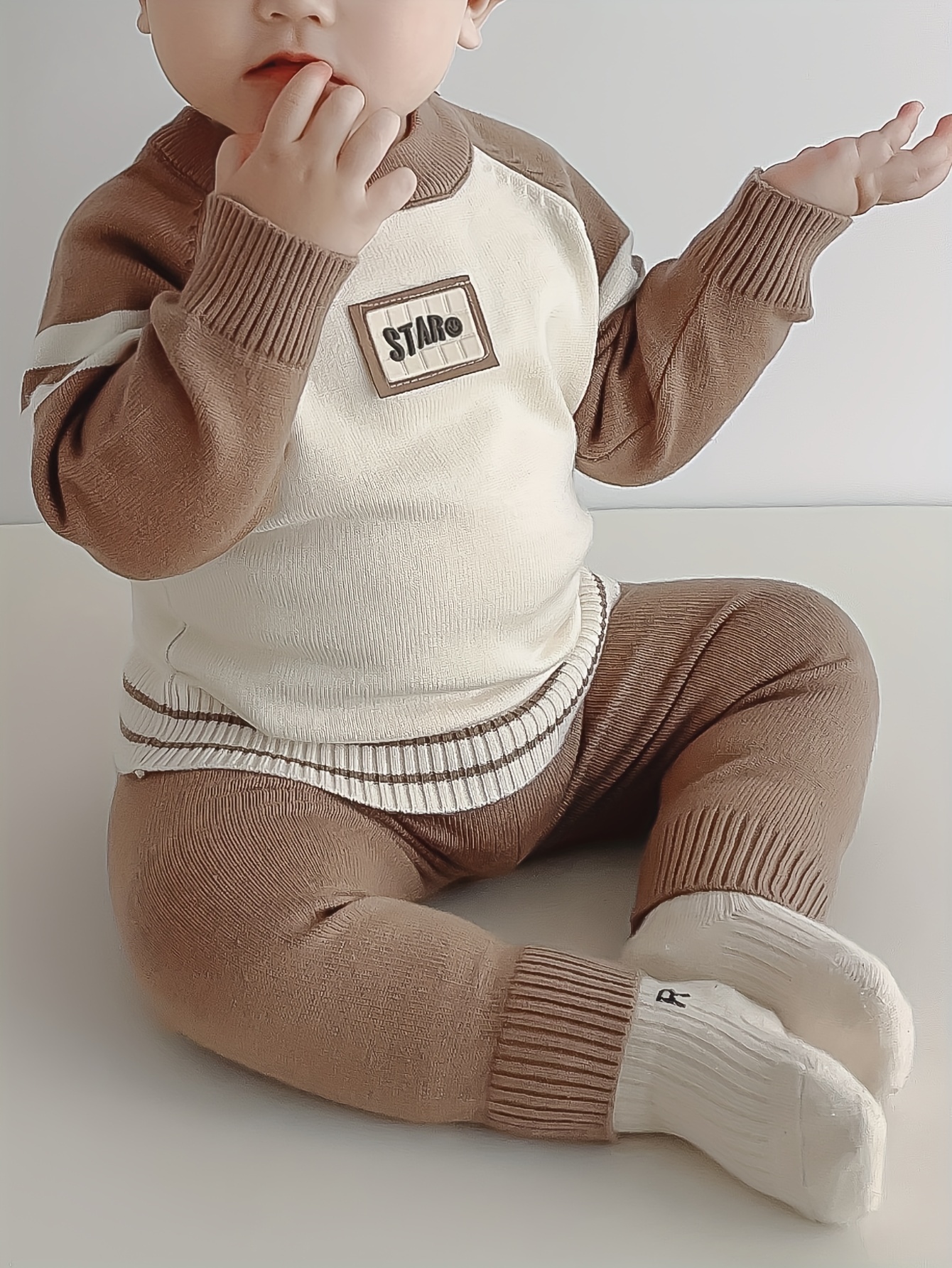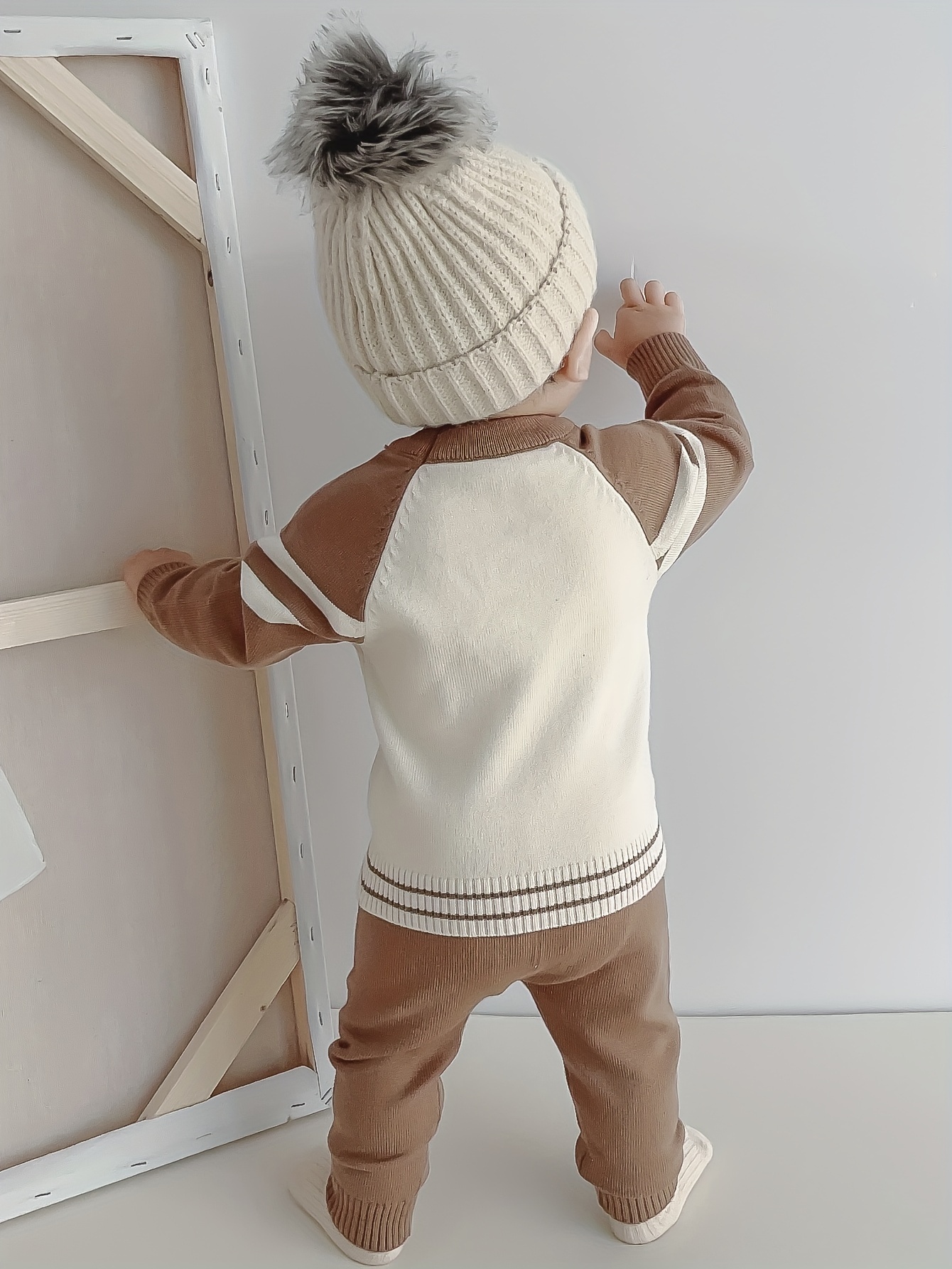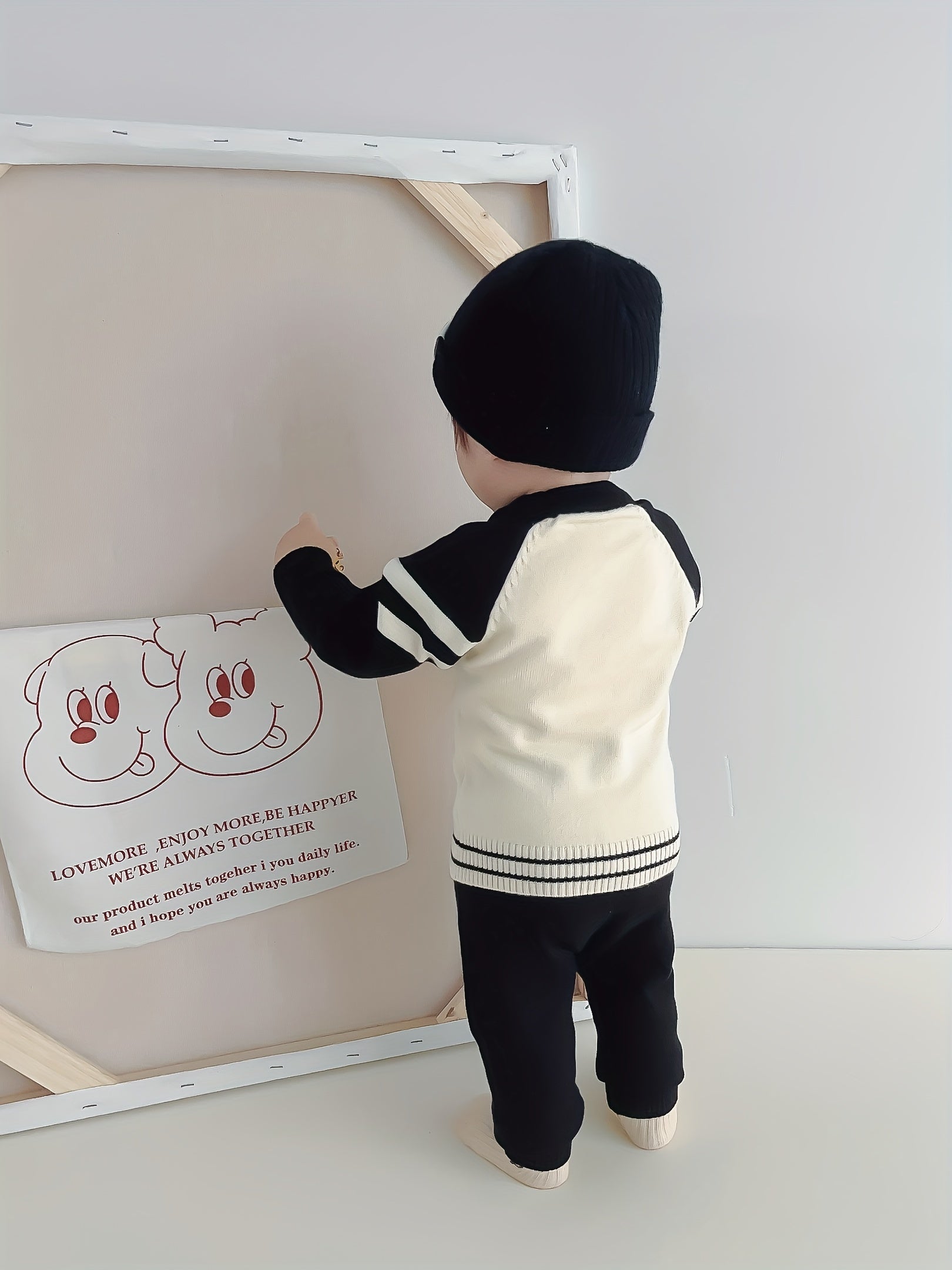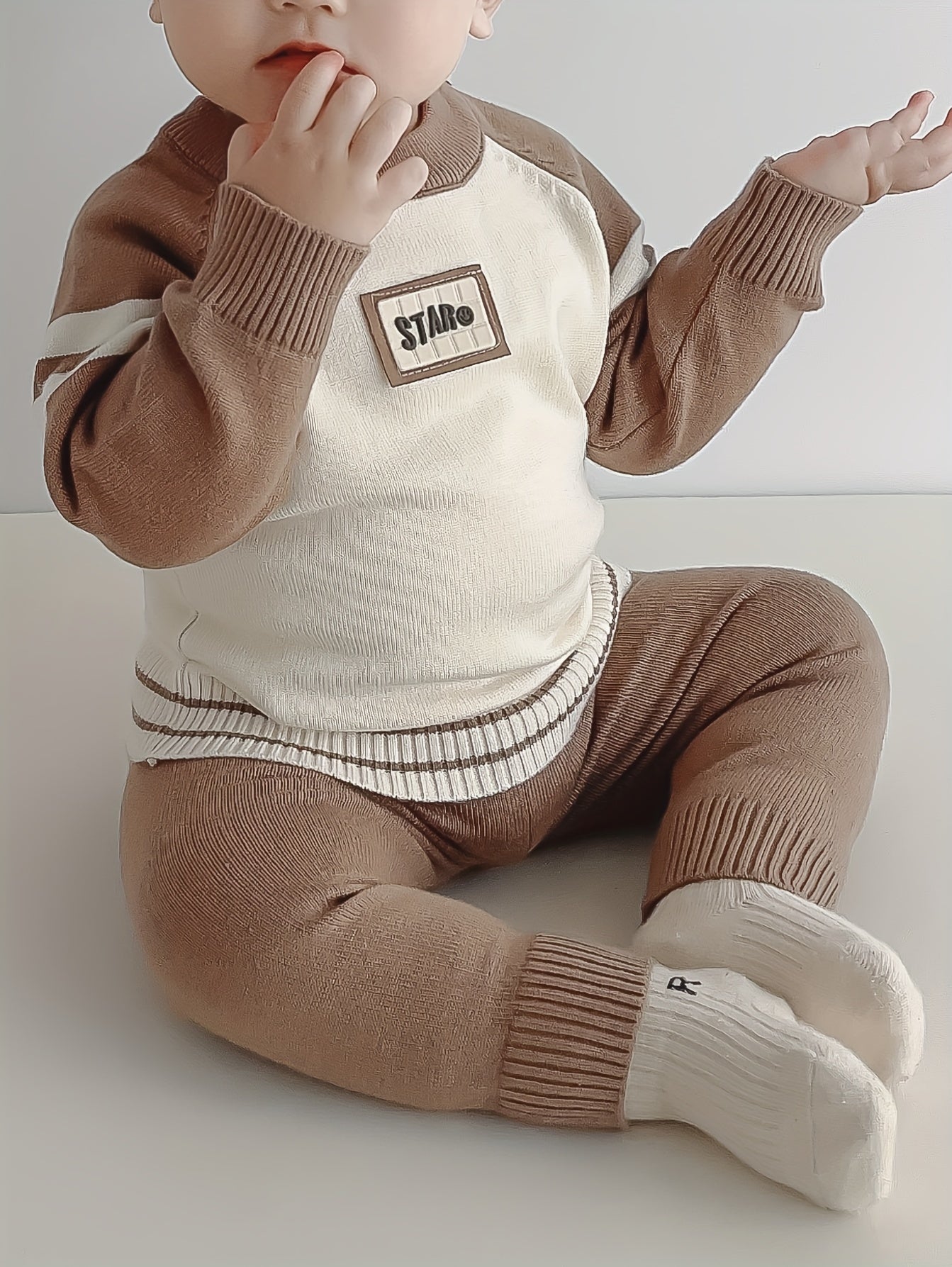 Newborn Baby Clothes Autumn and Winter Set for Boys: Stylish Sweater Pullover Knitted Long Pants Two-Piece Suit, Perfect for Outdoor