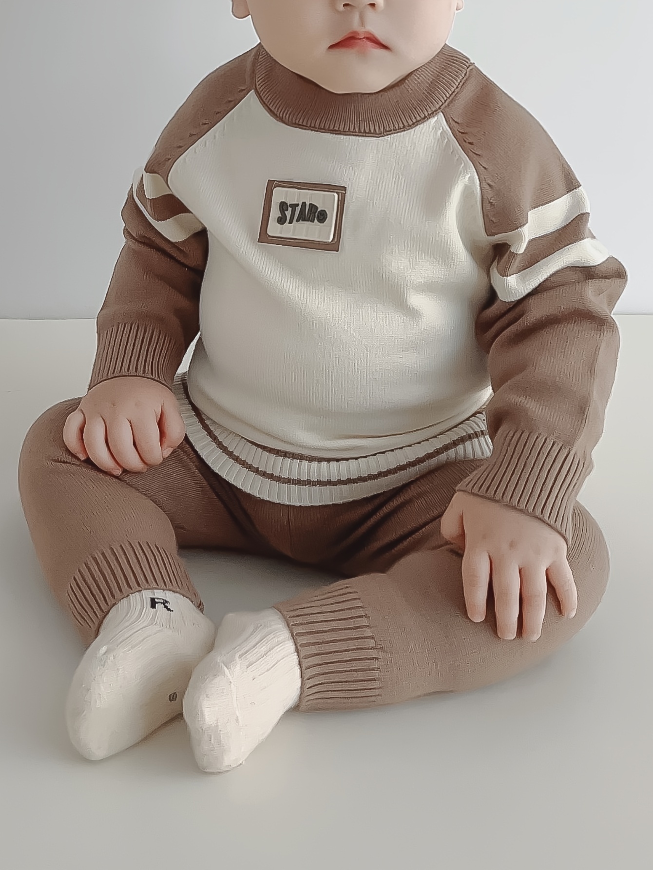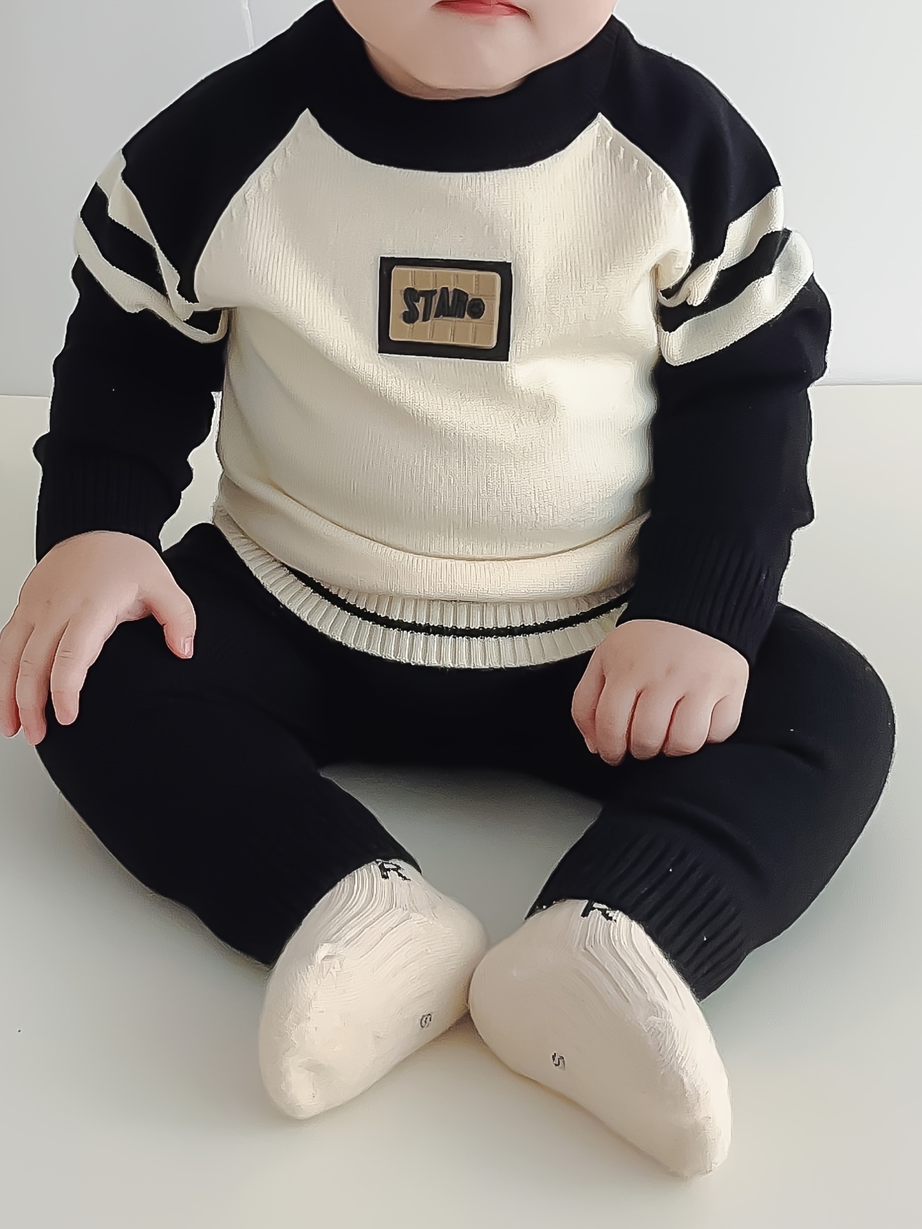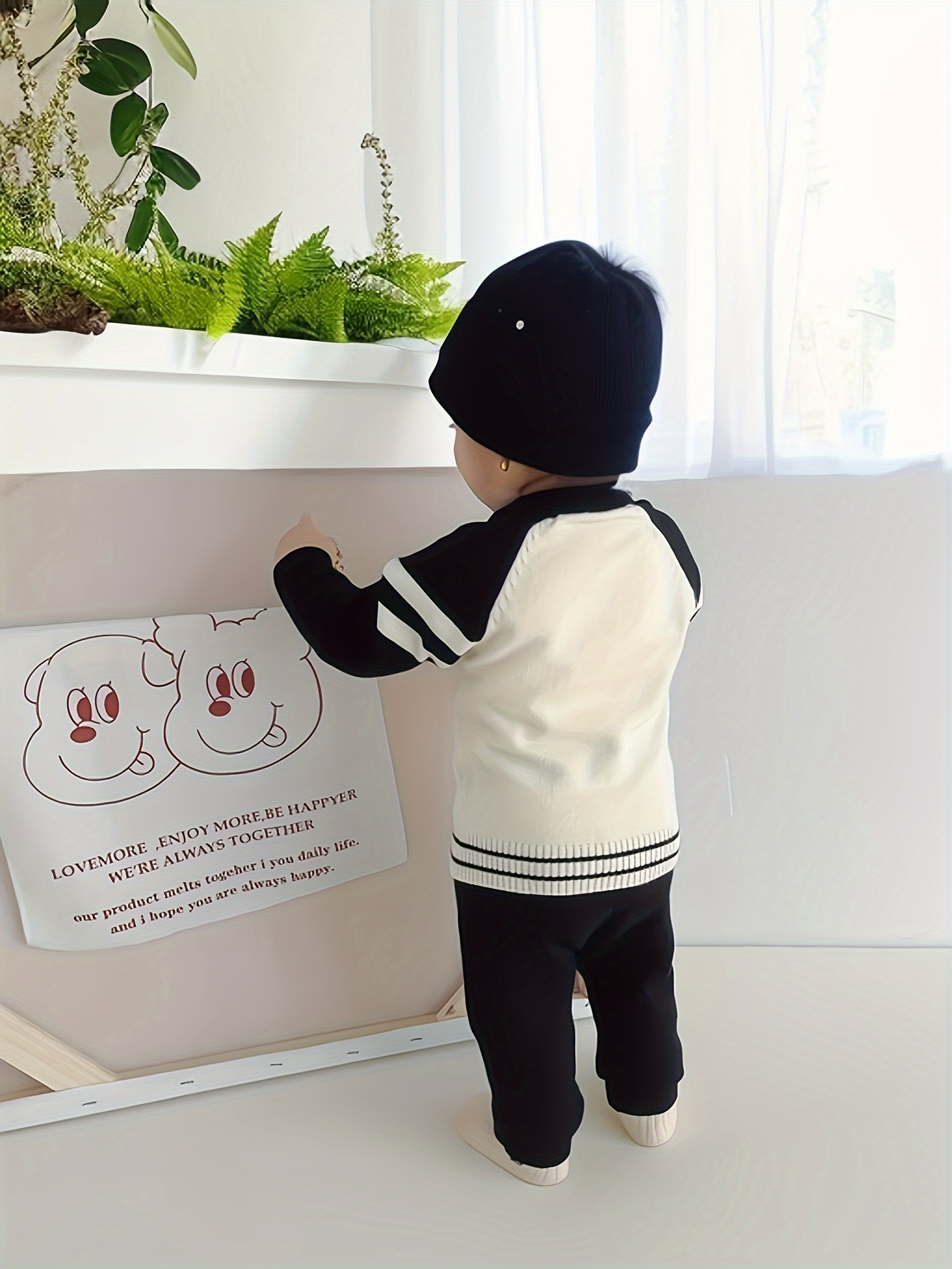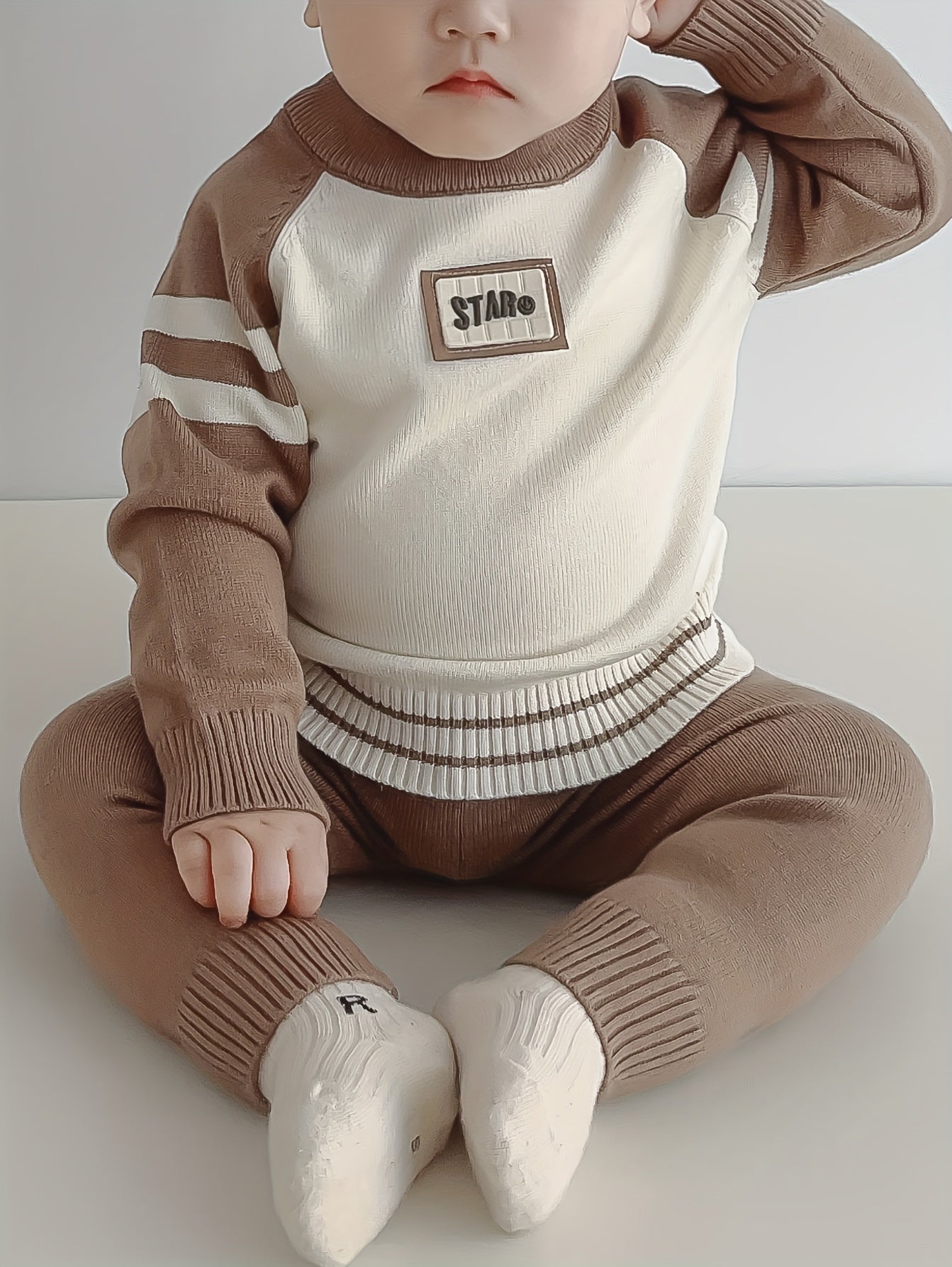 Newborn Baby Clothes Autumn and Winter Set for Boys: Stylish Sweater Pullover Knitted Long Pants Two-Piece Suit, Perfect for Outdoor