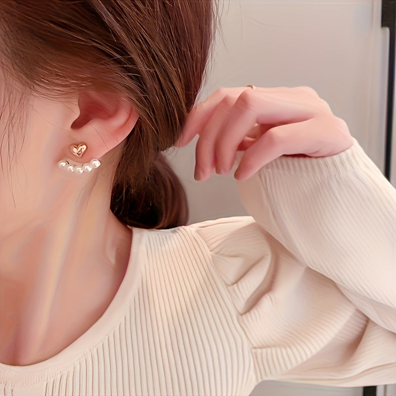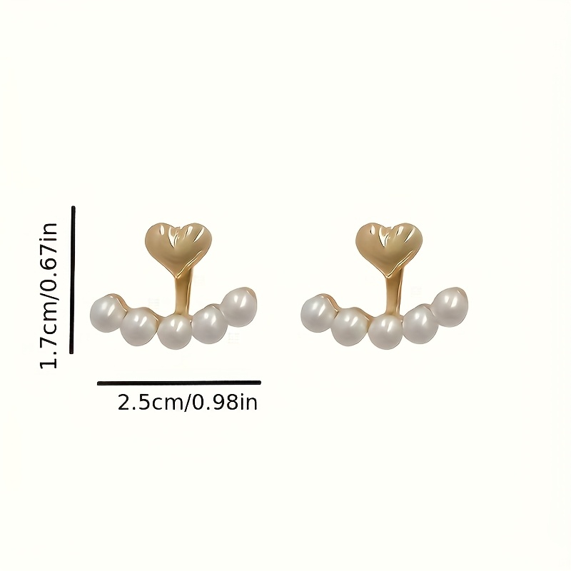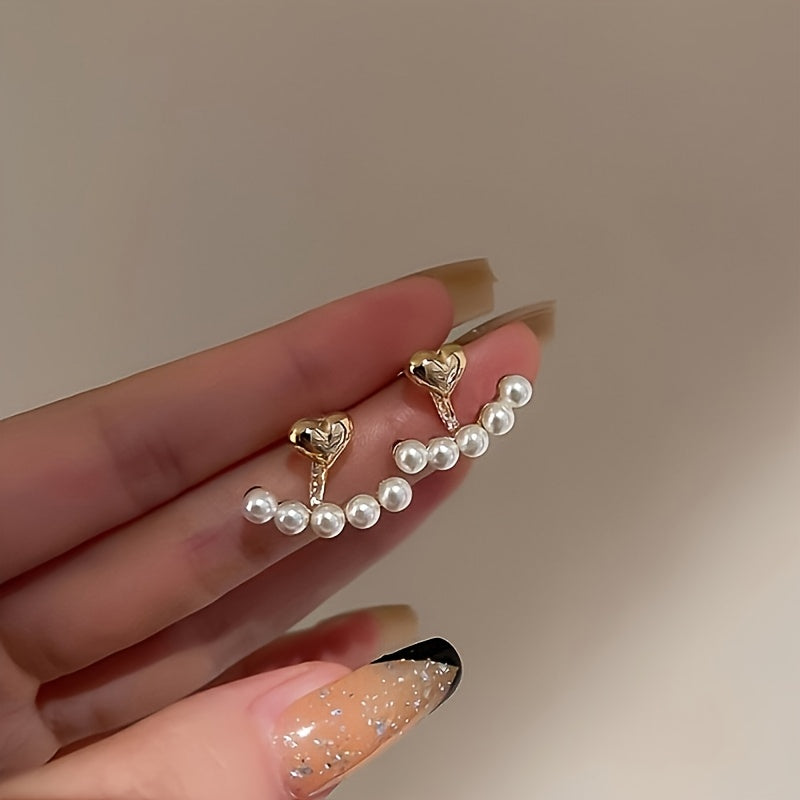 Pair of Elegant Heart-Shaped Faux Imitation Pearl Earrings for Women - Golden-Tone Alloy with Stainless Steel Posts, Valentine's Day Gift for Her, Girlfriend, Best Friend, Everyday Jewelry