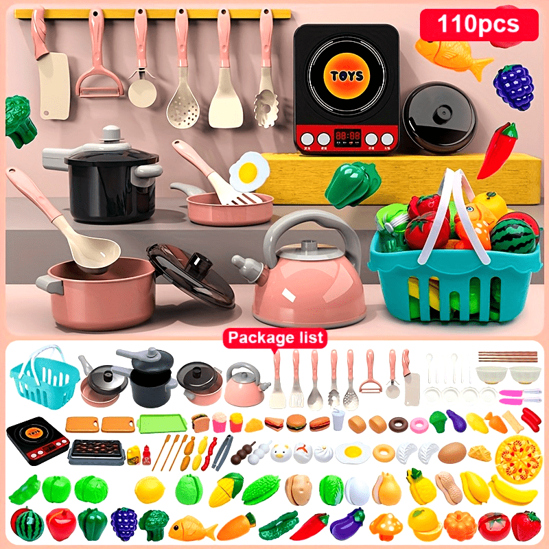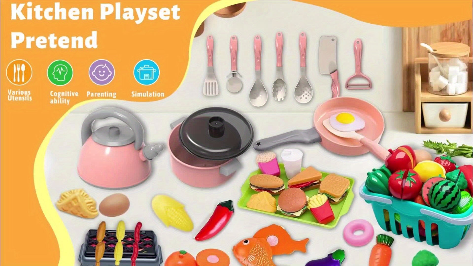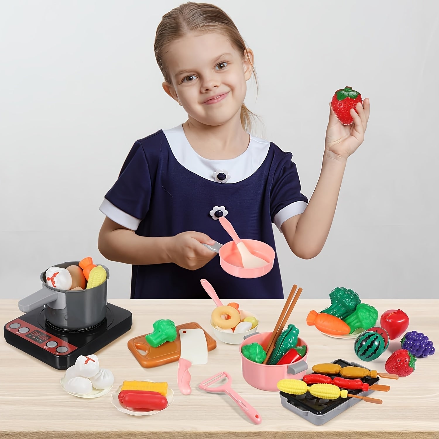 Play House Simulation Mini Kitchen Set, 61pcs/28pcs Youngsters's Simulation Mini Kitchenware Set Pressure Cooker Induction Cooker Cutting Fruit Kitchen Cooking Set Interactive Game Toy