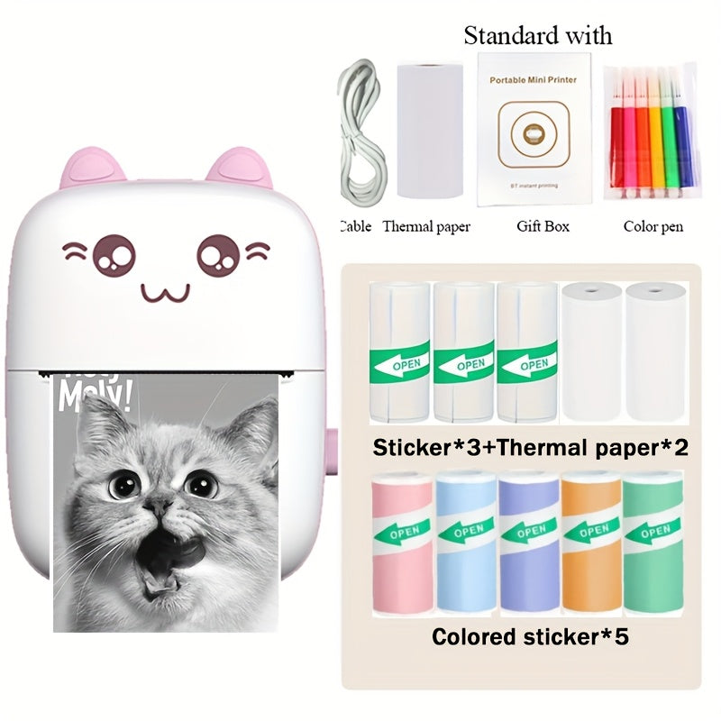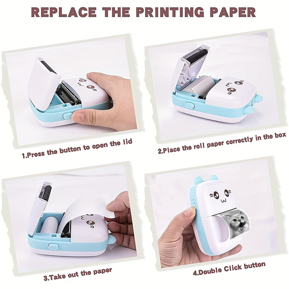 [Portable Thermal Printer] Wireless Thermal Printer | Portable Mini Pocket for Labels, Receipts, Photos, Notes, and Learning - Compact Inkless Smart Label Printer for Journals/Scrapbooks/Travel/Memo Lists/Home Office Use in Blue & Pink