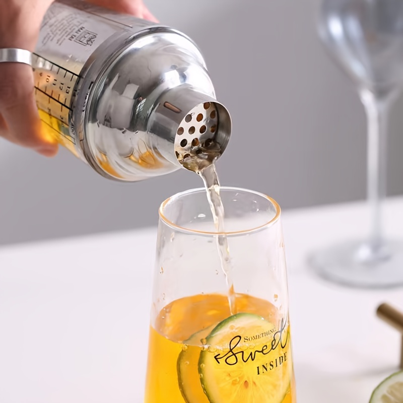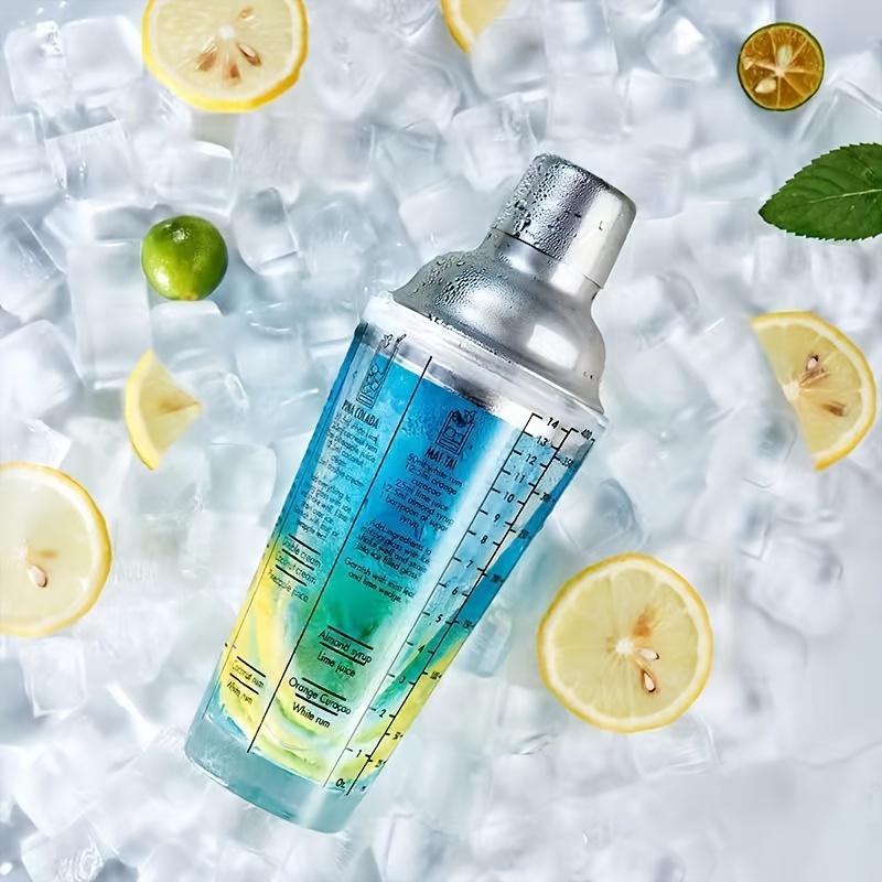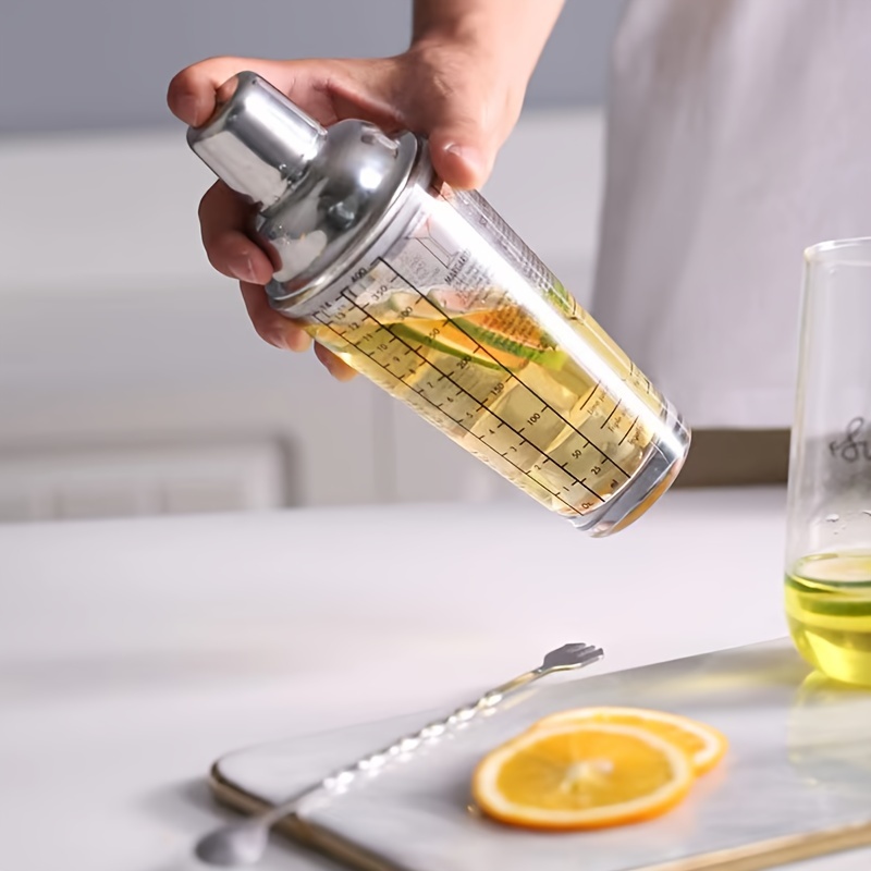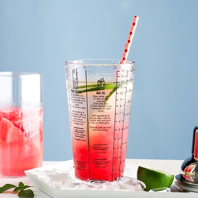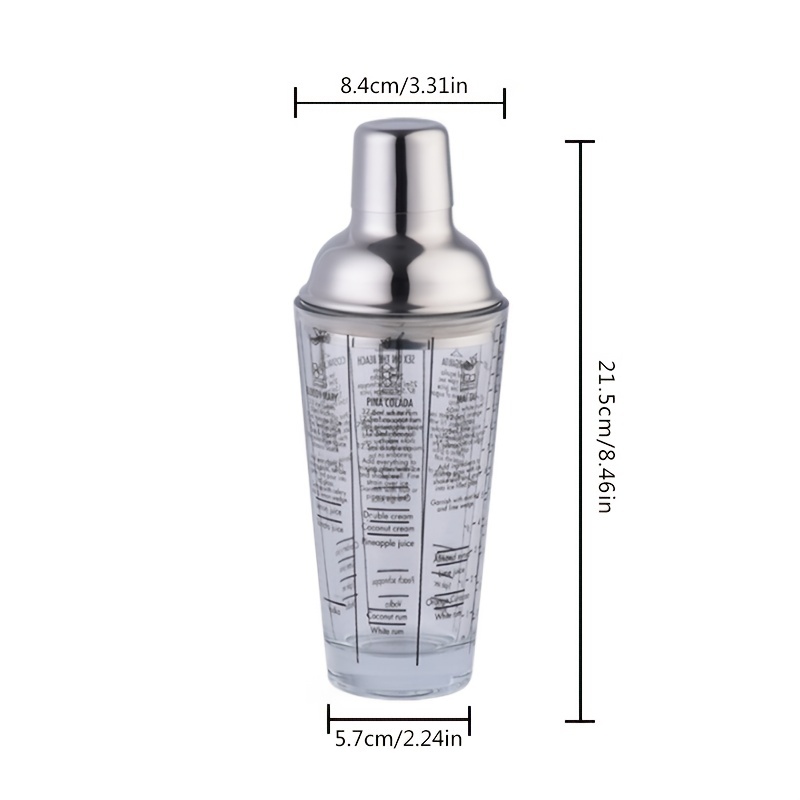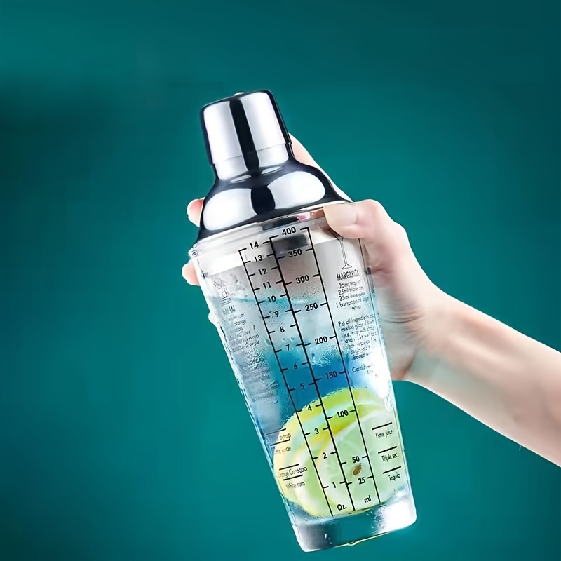 Convenient size: 400ml/14oz capacity for making one cocktail at a timeHigh-quality material: made of durable glass that is easy to clean and won't affect the taste of your drinksProfessional-grade: comes with a scale for accurate measurements, perfect for beginner bartenders or home mixologistsVersatile: can be used for making a variety of cocktails, from classic martinis to creative mixed drinksComplete set: includes a glass cup for serving and a lid for shaking, making it a great addition to any barware collection