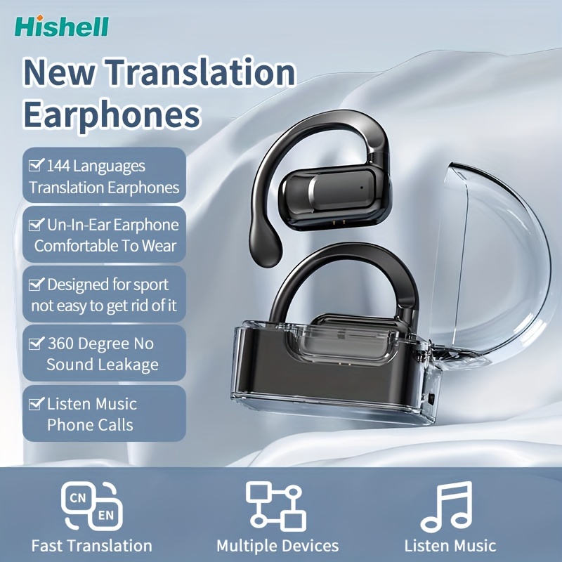 [Real Time Translator] Real Time 2-Way Language Translator Earphones | 144 Languages, Portable Translation Headset with APP for Music And Calling, for IOS & Android