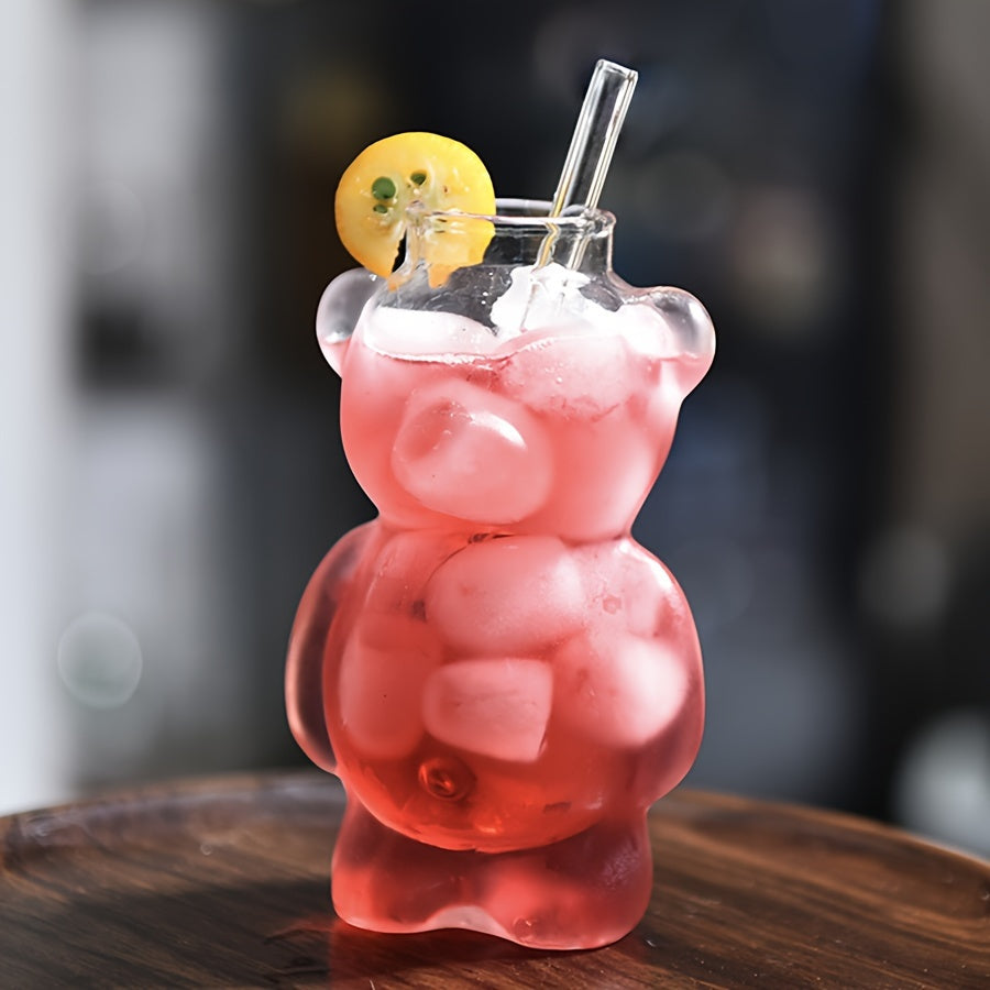 [Reusable Insulated Bear Cocktail Cup] Adorable Glass Bear Cocktail Cup - Perfect for Home Use, Hand Wash Only, Insulated, Reusable