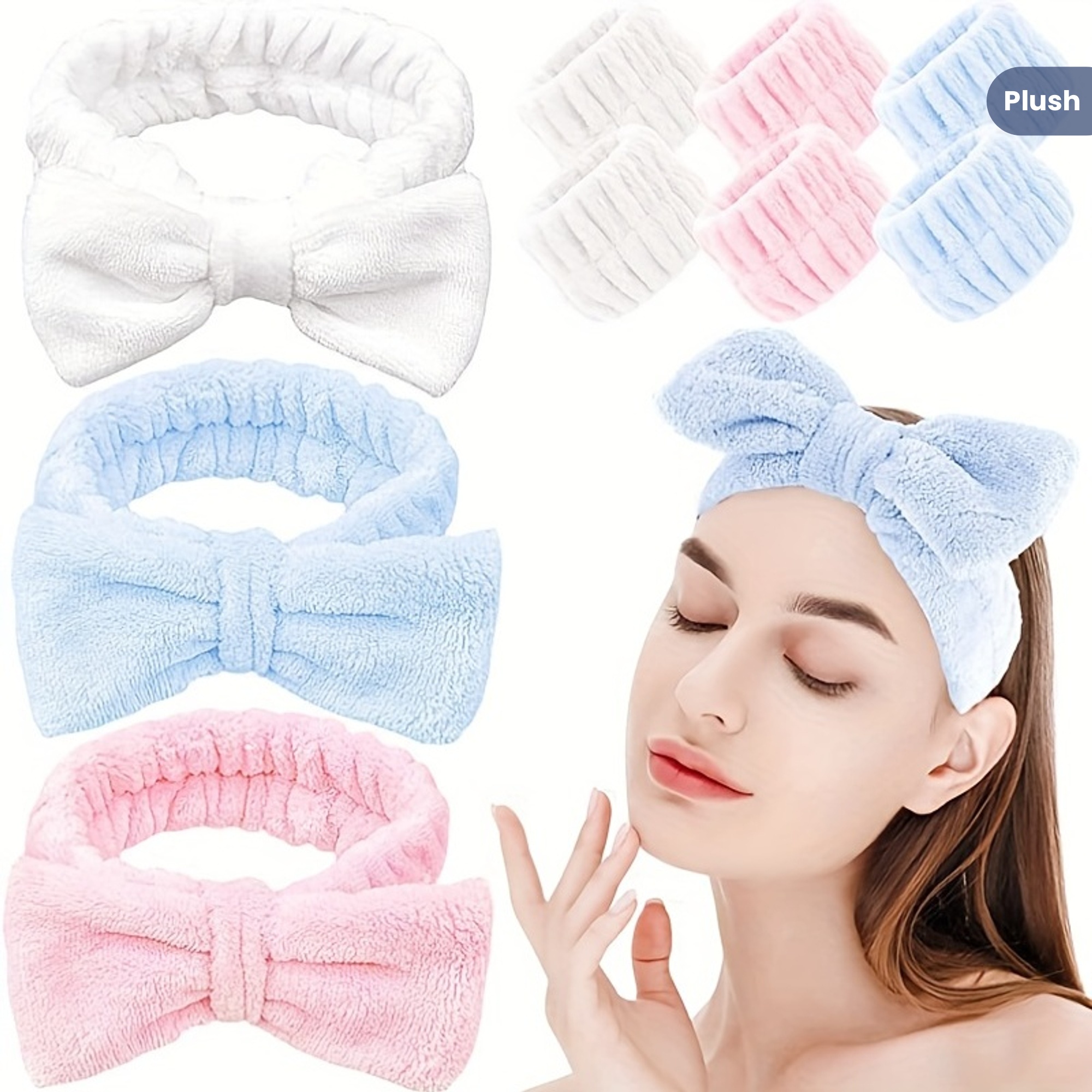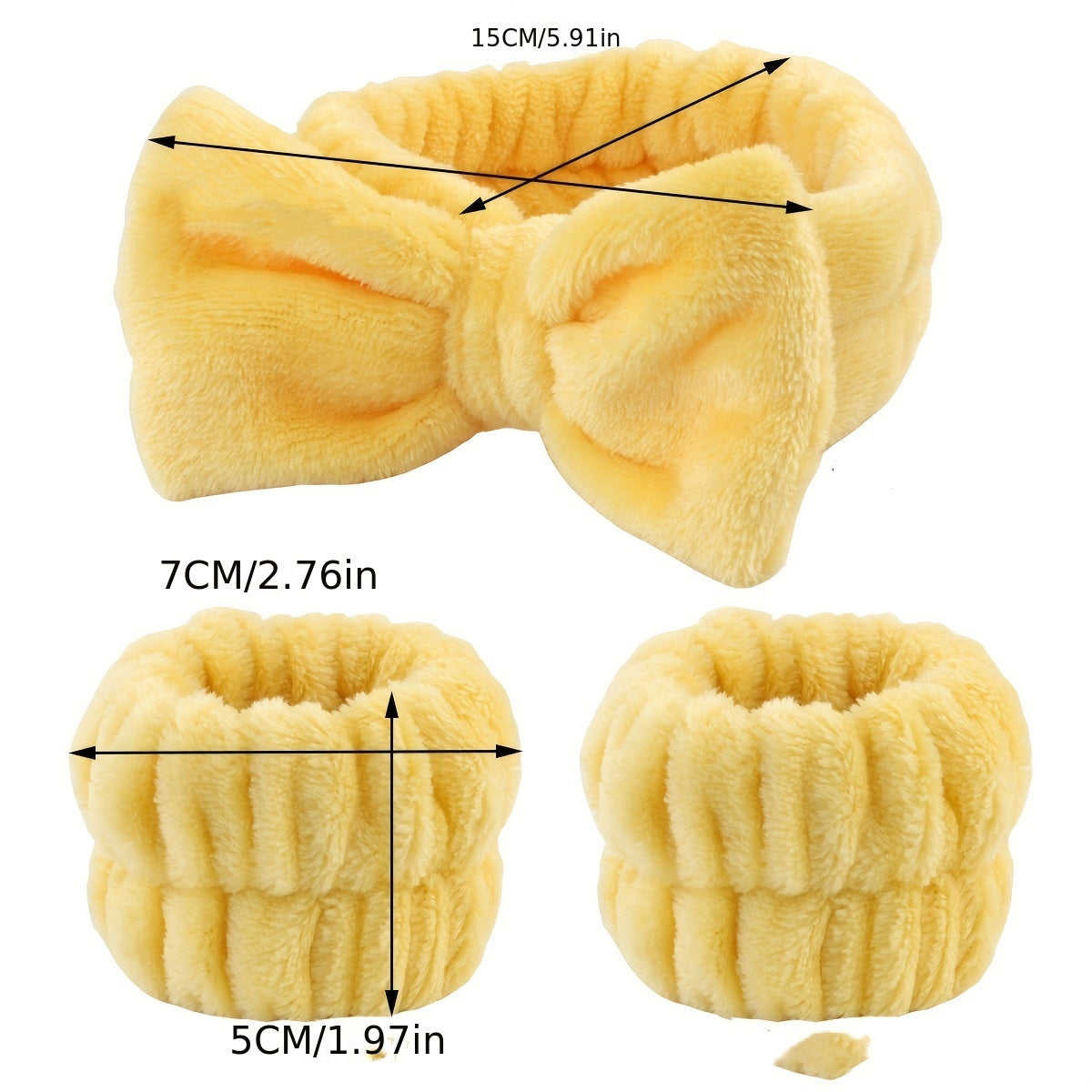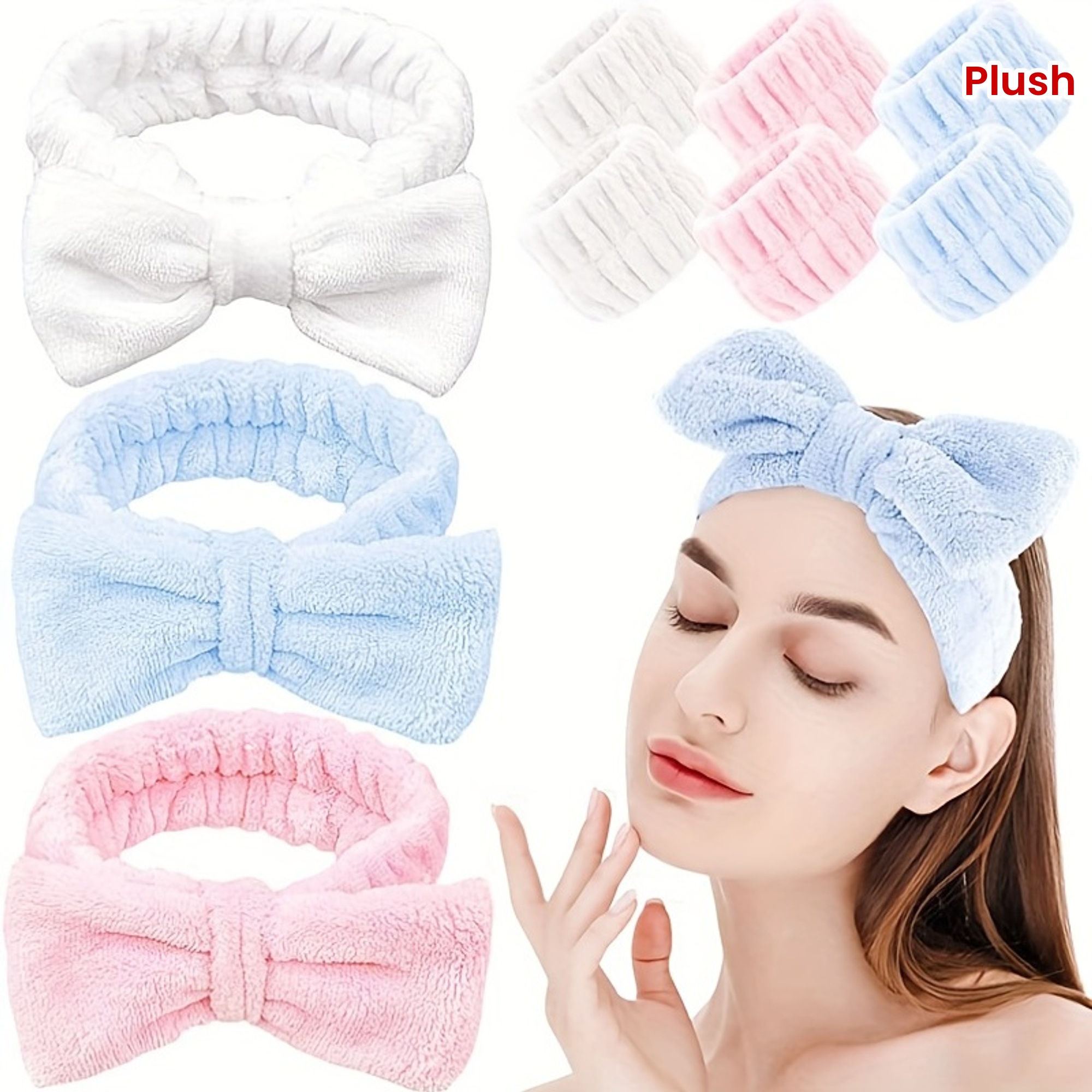 Solid Color Butterfly End Headband Wristband Set Women's Wash Beauty Makeup Headband Wrist Flannel Hair Accessories Headwear Face Wash Headband Wrist Set Plush Elastic Headband Ladies Accessories Set