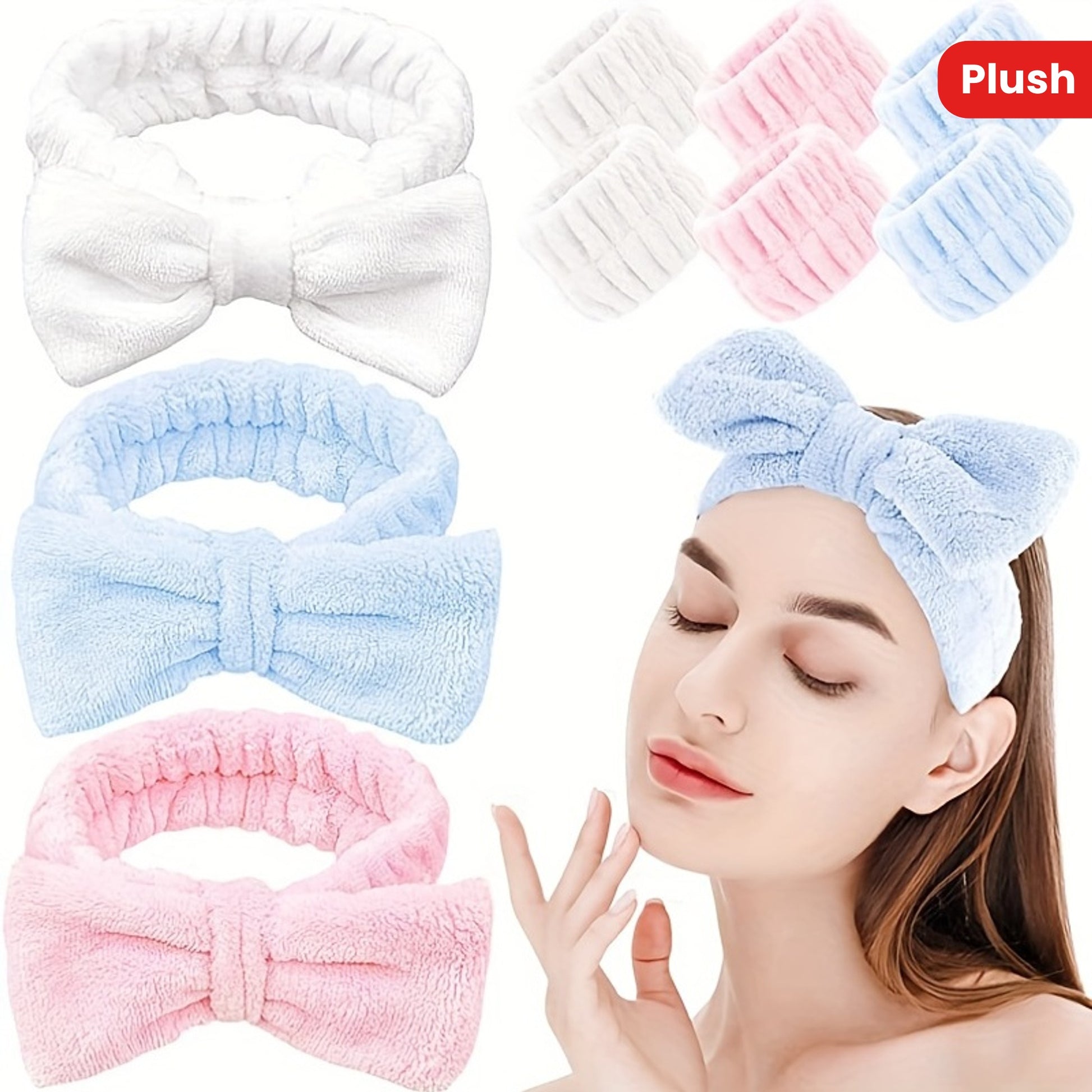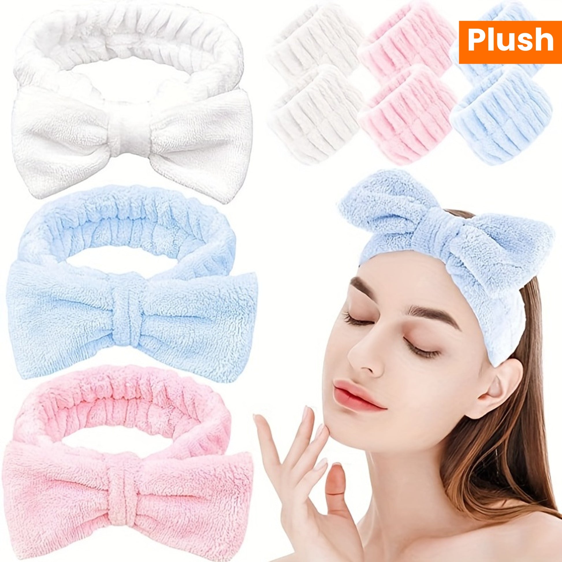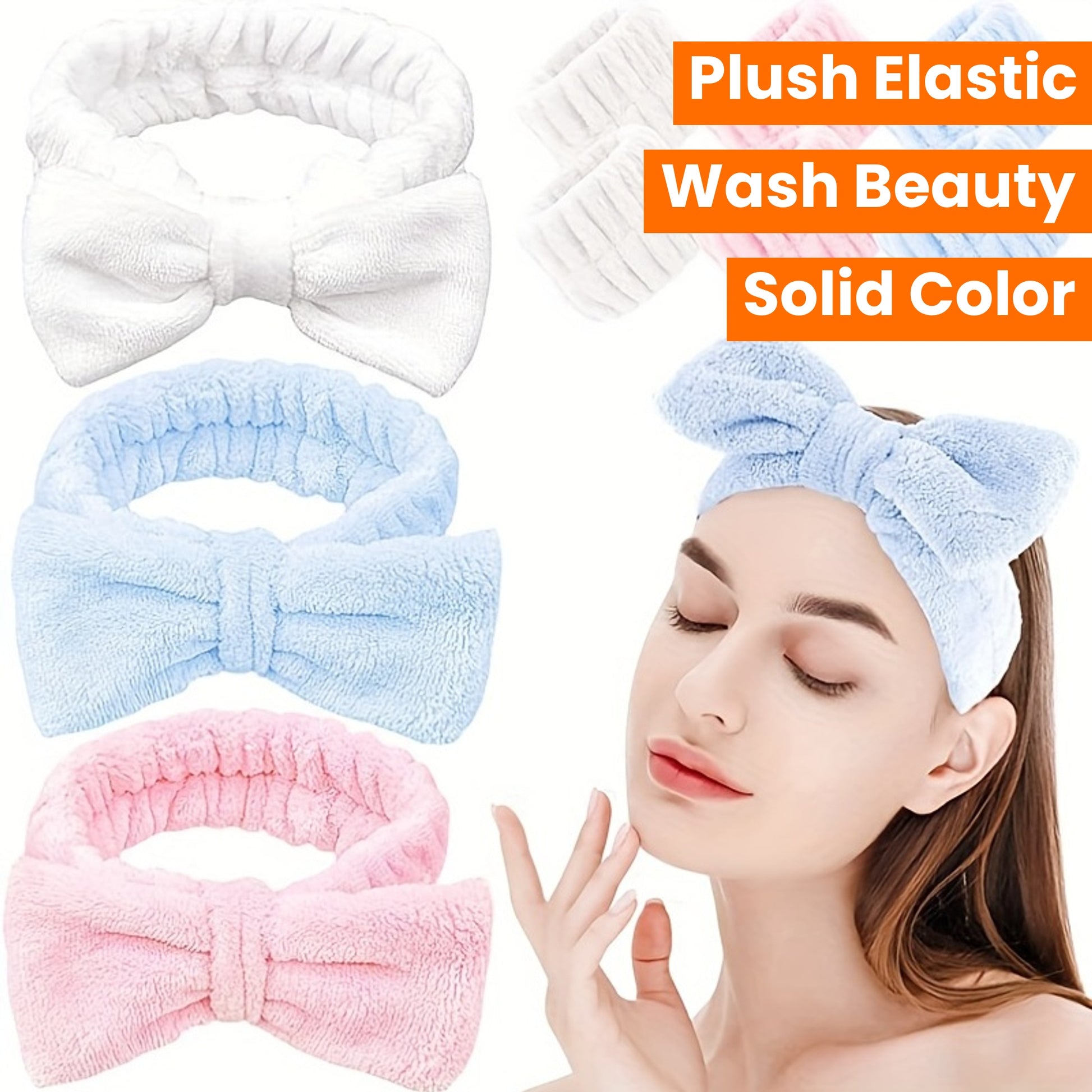 Solid Color Butterfly End Headband Wristband Set Women's Wash Beauty Makeup Headband Wrist Flannel Hair Accessories Headwear Face Wash Headband Wrist Set Plush Elastic Headband Ladies Accessories Set