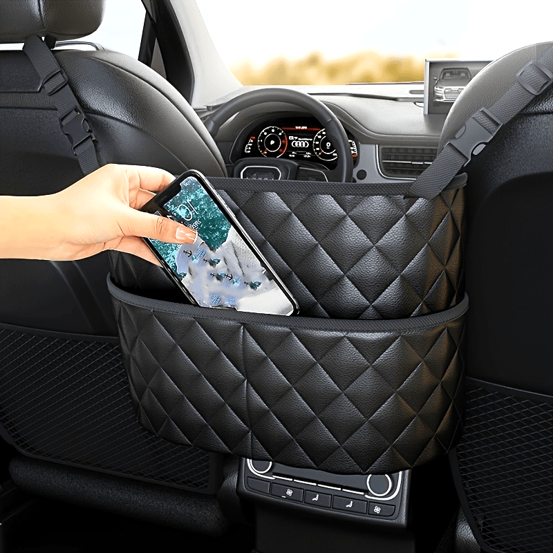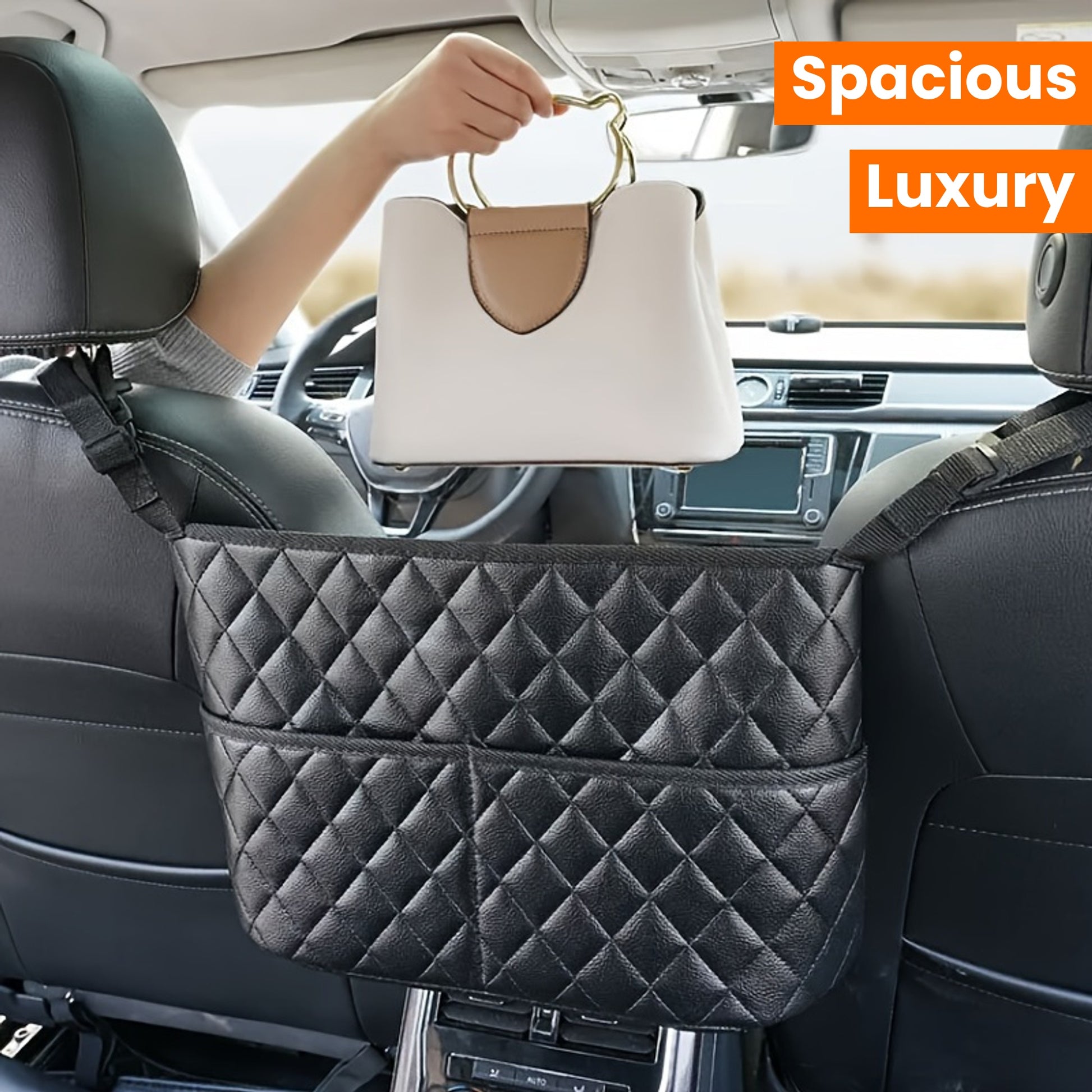 Spacious Luxury Faux Leather Car Seat Organizer - Hanging Mount Back Seat Storage with Multiple Compartments - Ideal for Family Cars, Travel & Daily Use