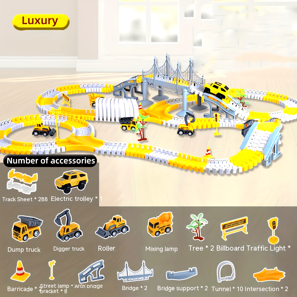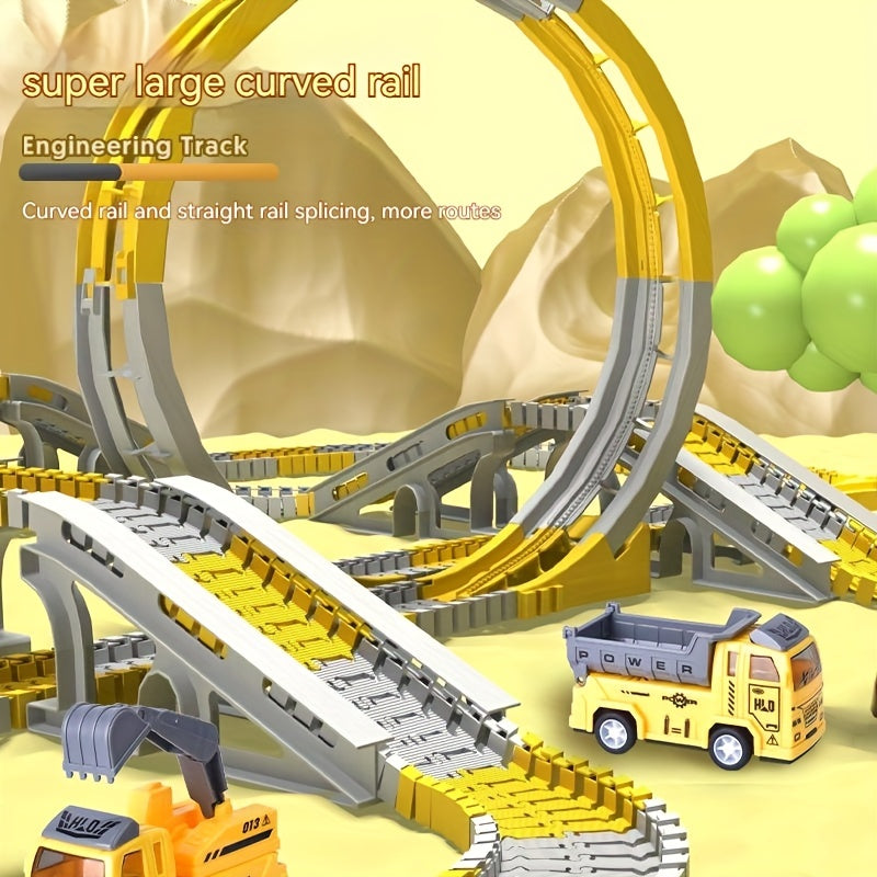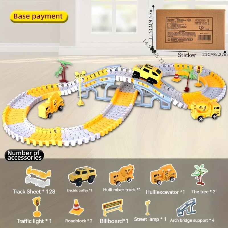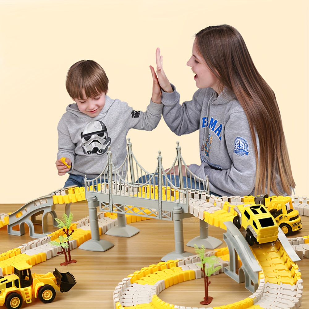 [STEM DIY Train Set] STEM Educational Battery-Powered DIY Construction Vehicle Train Set | Plastic Building Kit with Electric Track | for Ages 3-6, Ideal Christmas and Thanksgiving Gifts