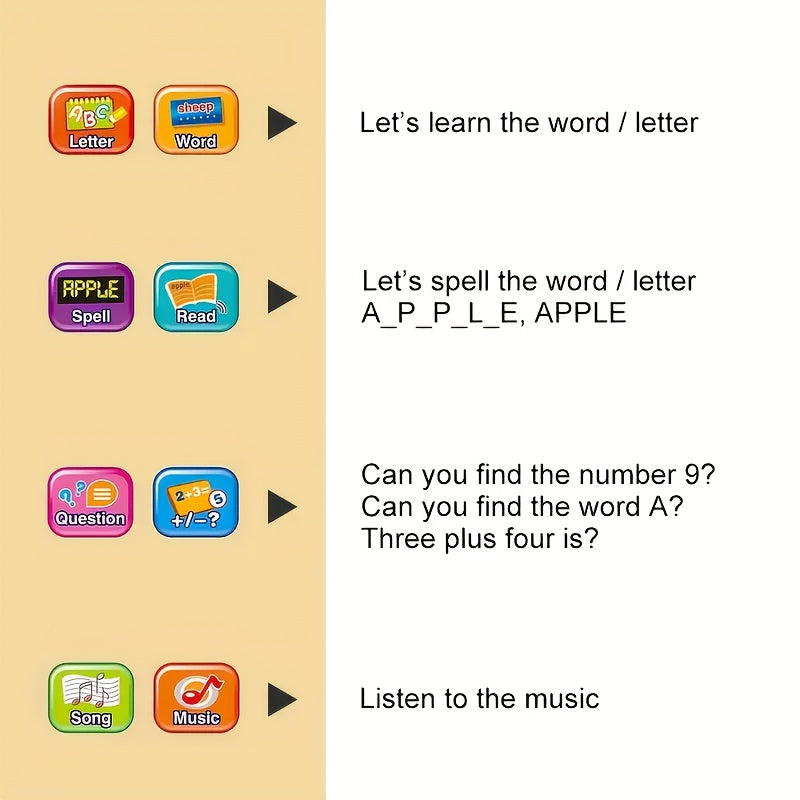Tablet for Kids with LED Screen, Learning Mat for Teaching Alphabet, Numbers, Words, Music, Math, Interactive Electronic Toy forEarly Development, Suitable for and Girls, Halloween and Christmas Gifts