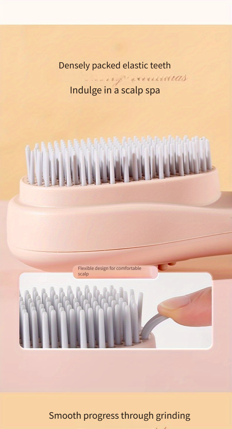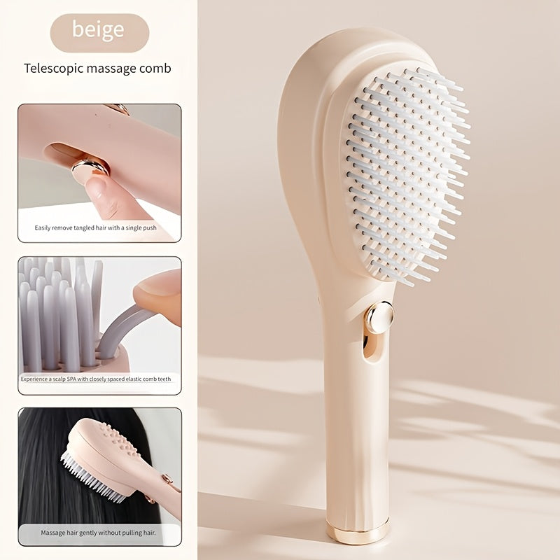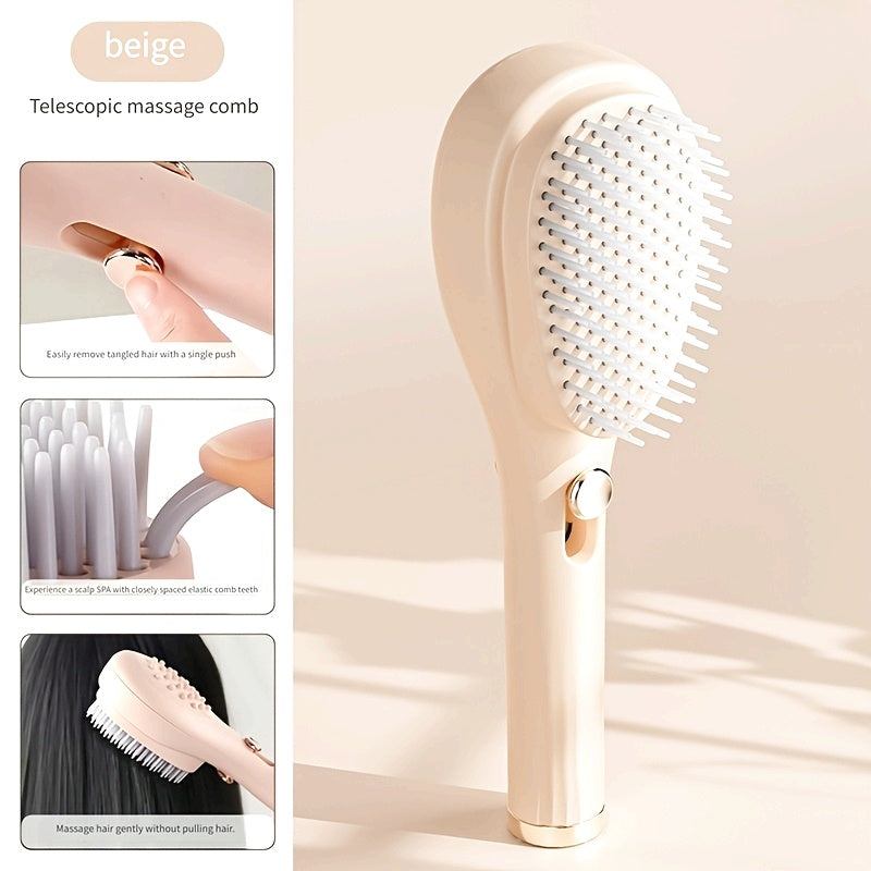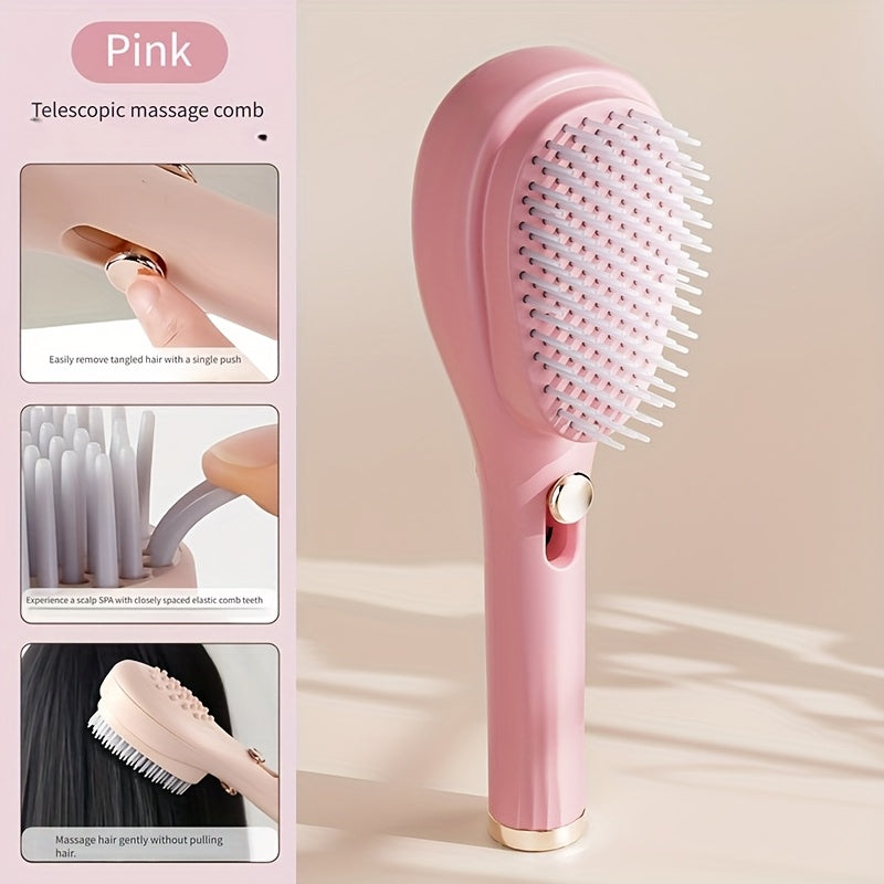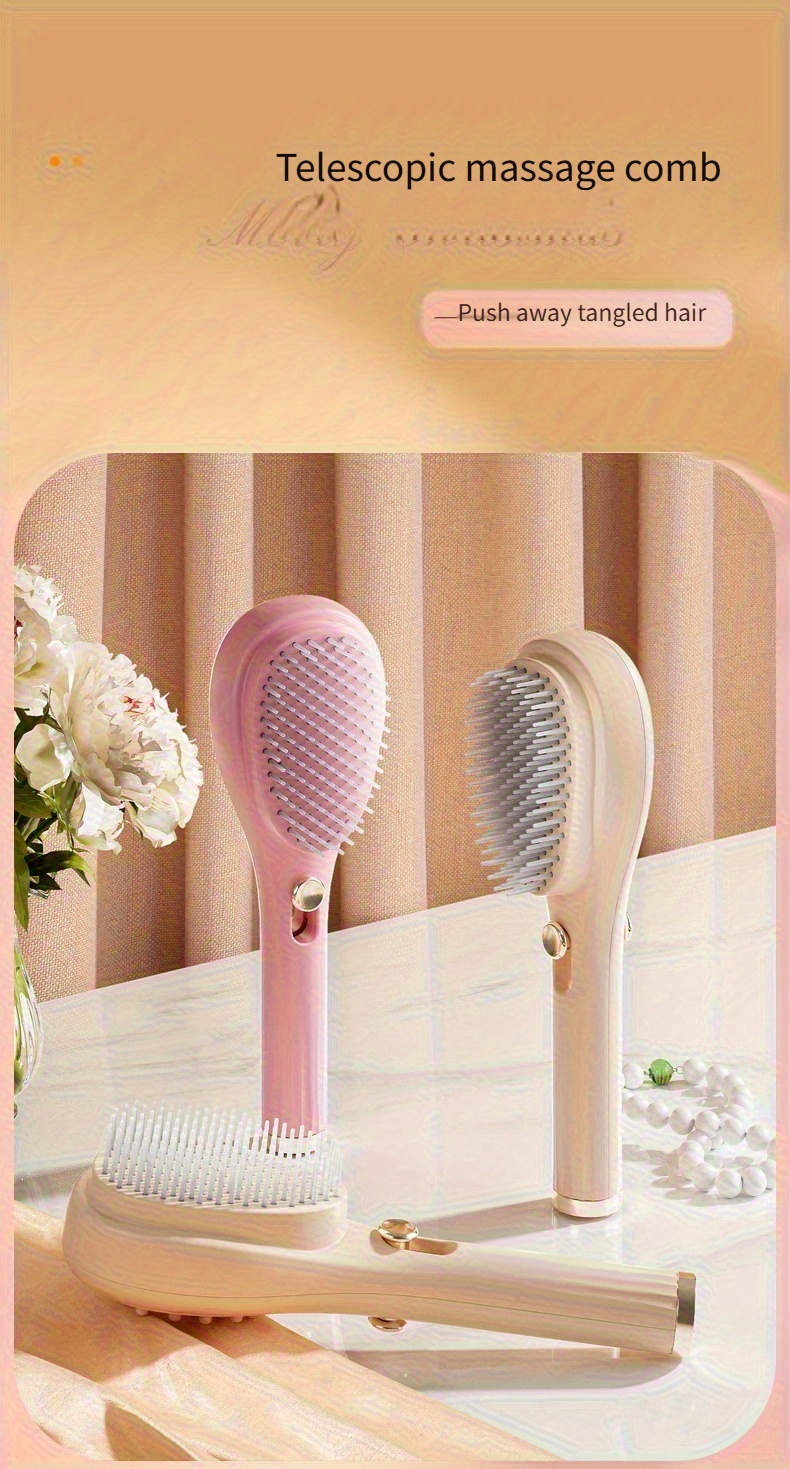 Telescopic Massage Comb for Hair & Scalp - Portable Foldable Hairbrush with Rubber Bristles & ABS Handle - Travel-Friendly Scalp Massager for Men & Women - Soft Pink & White Design, Hair Massager