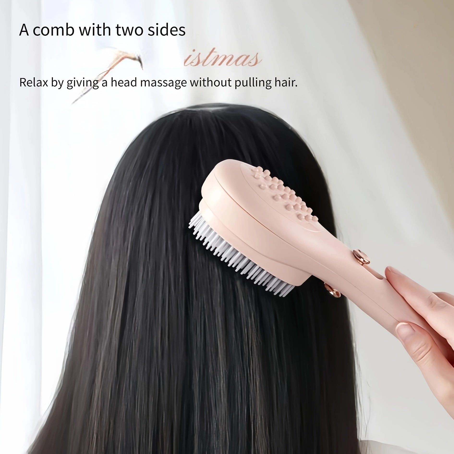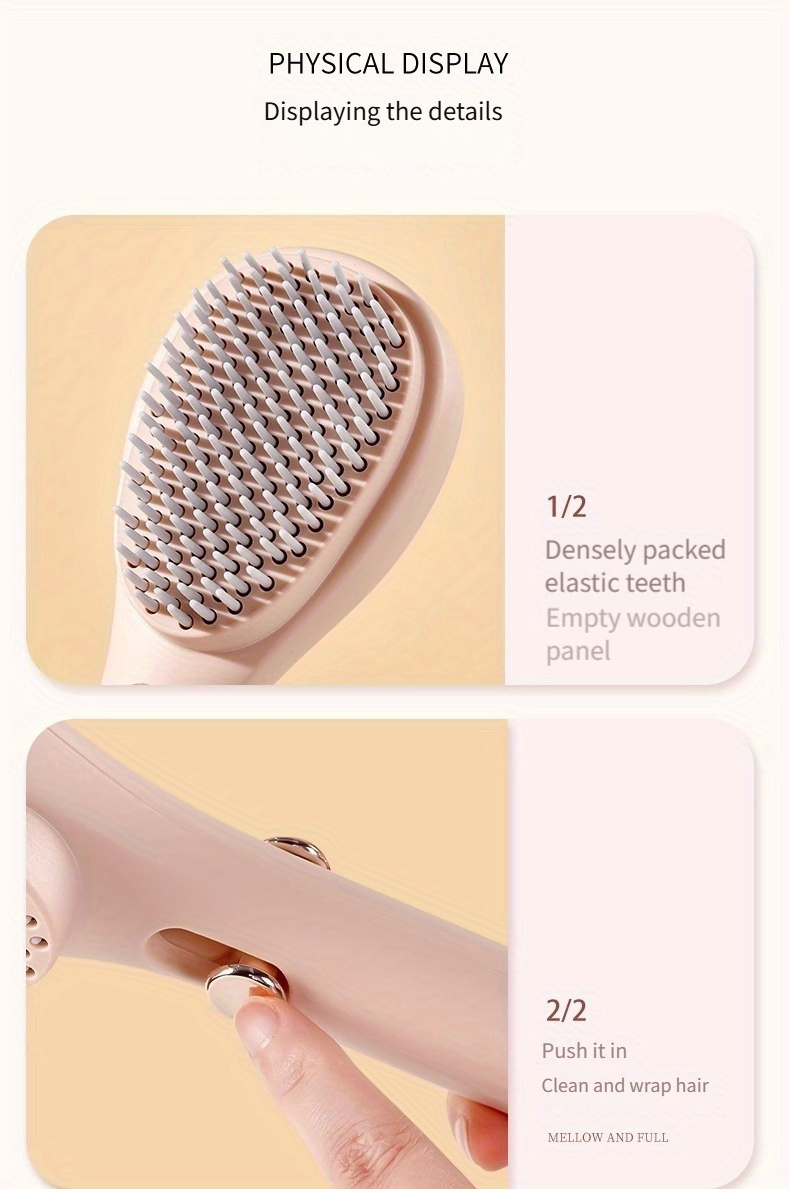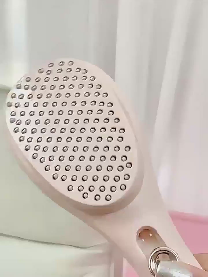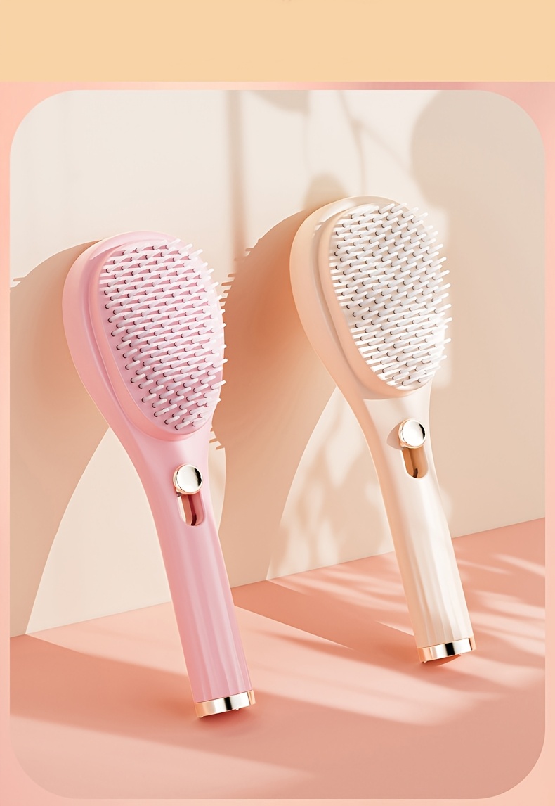 Telescopic Massage Comb for Hair & Scalp - Portable Foldable Hairbrush with Rubber Bristles & ABS Handle - Travel-Friendly Scalp Massager for Men & Women - Soft Pink & White Design, Hair Massager
