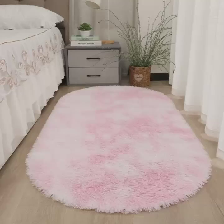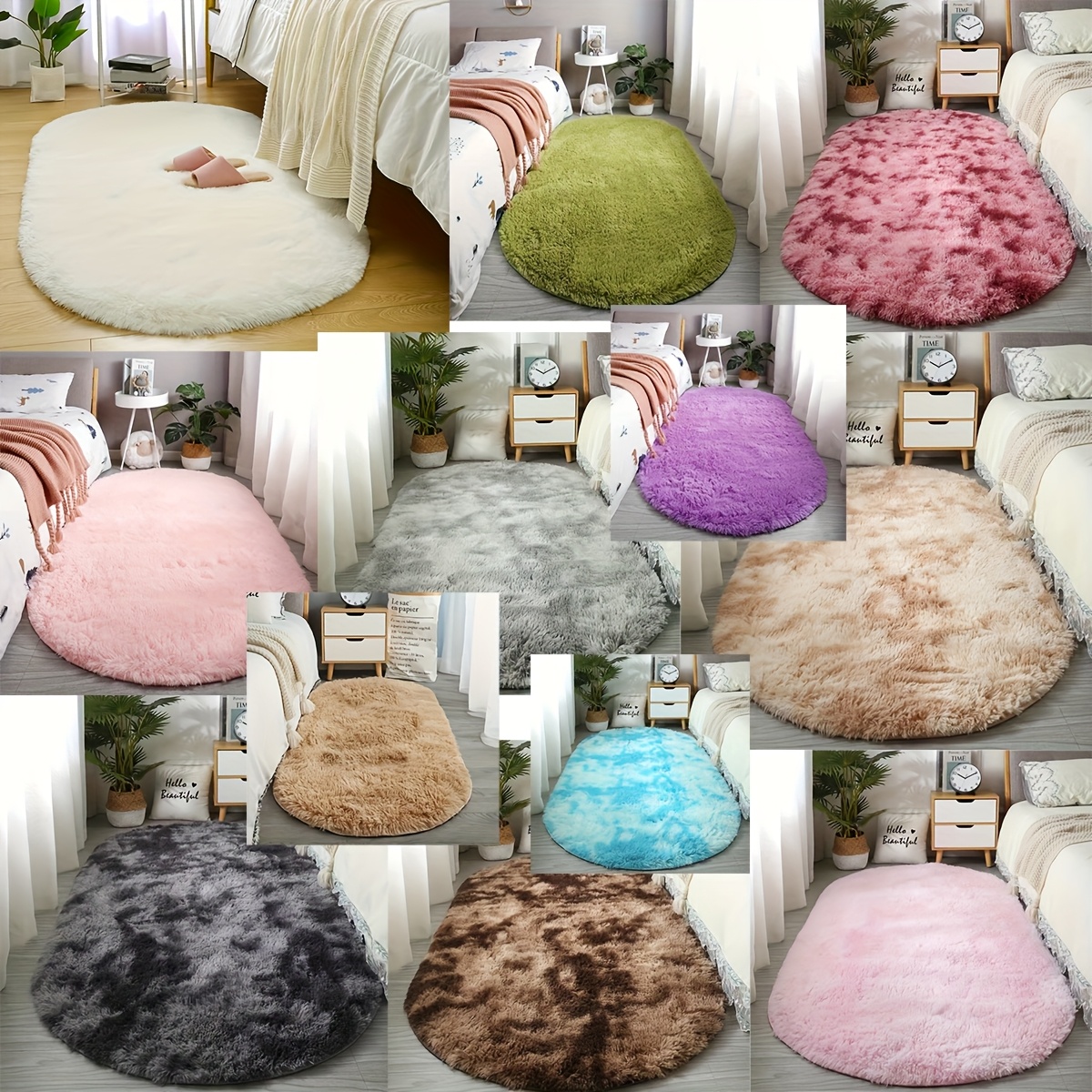 [Ultra-Soft] Oval Tie-Dye Plush Area Mat | Luxurious Faux Fur | Anti-Slip Backing, Stain & Absorbent | Living Room & Bedroom | Modern