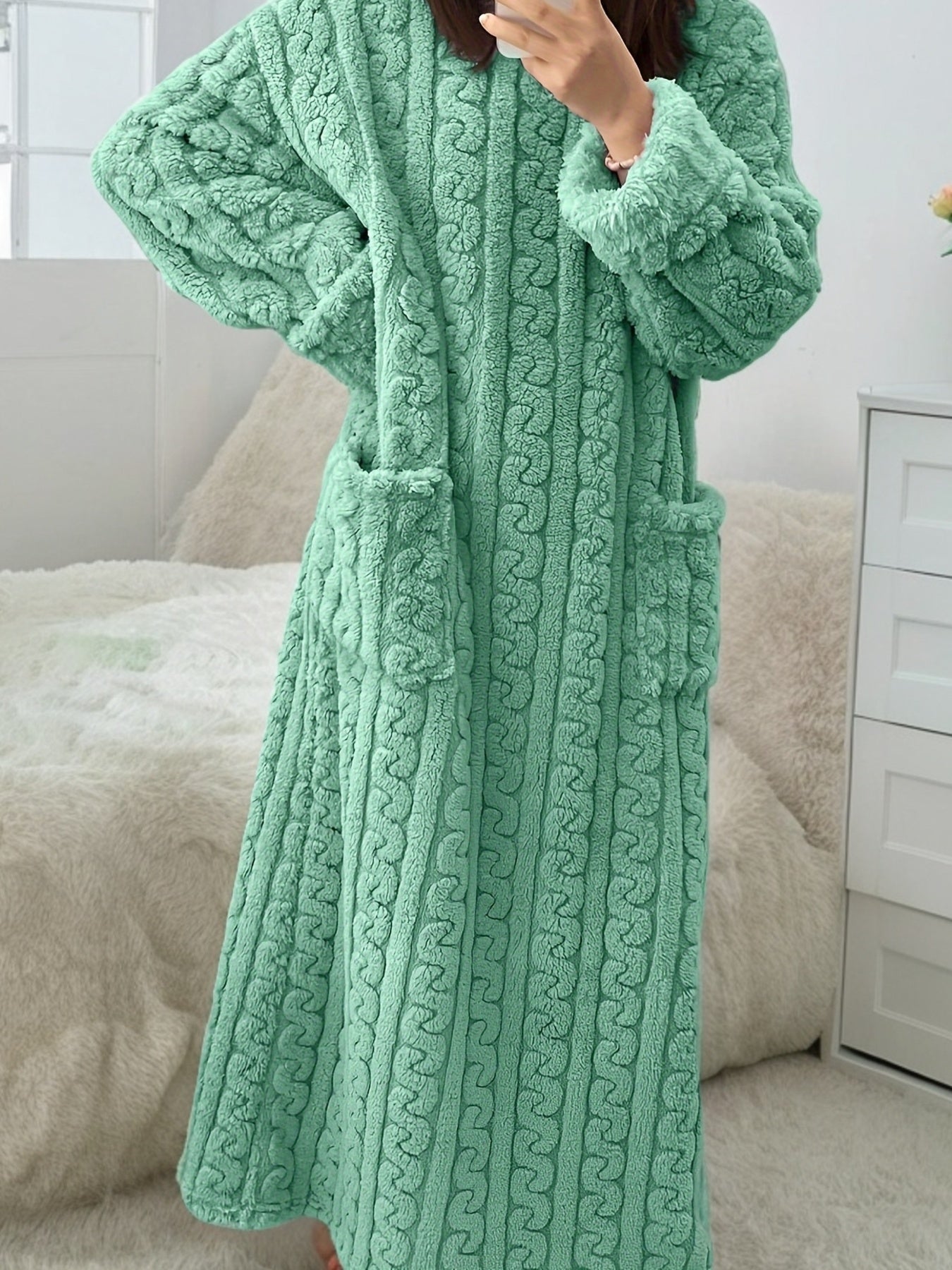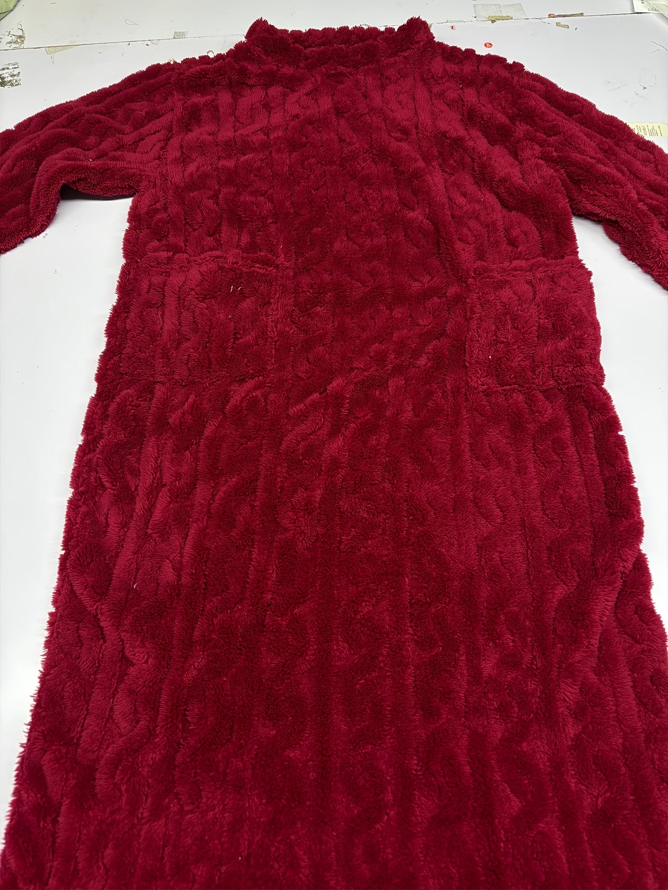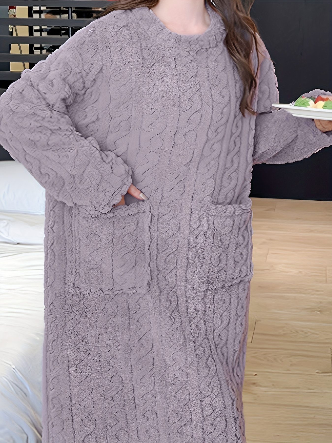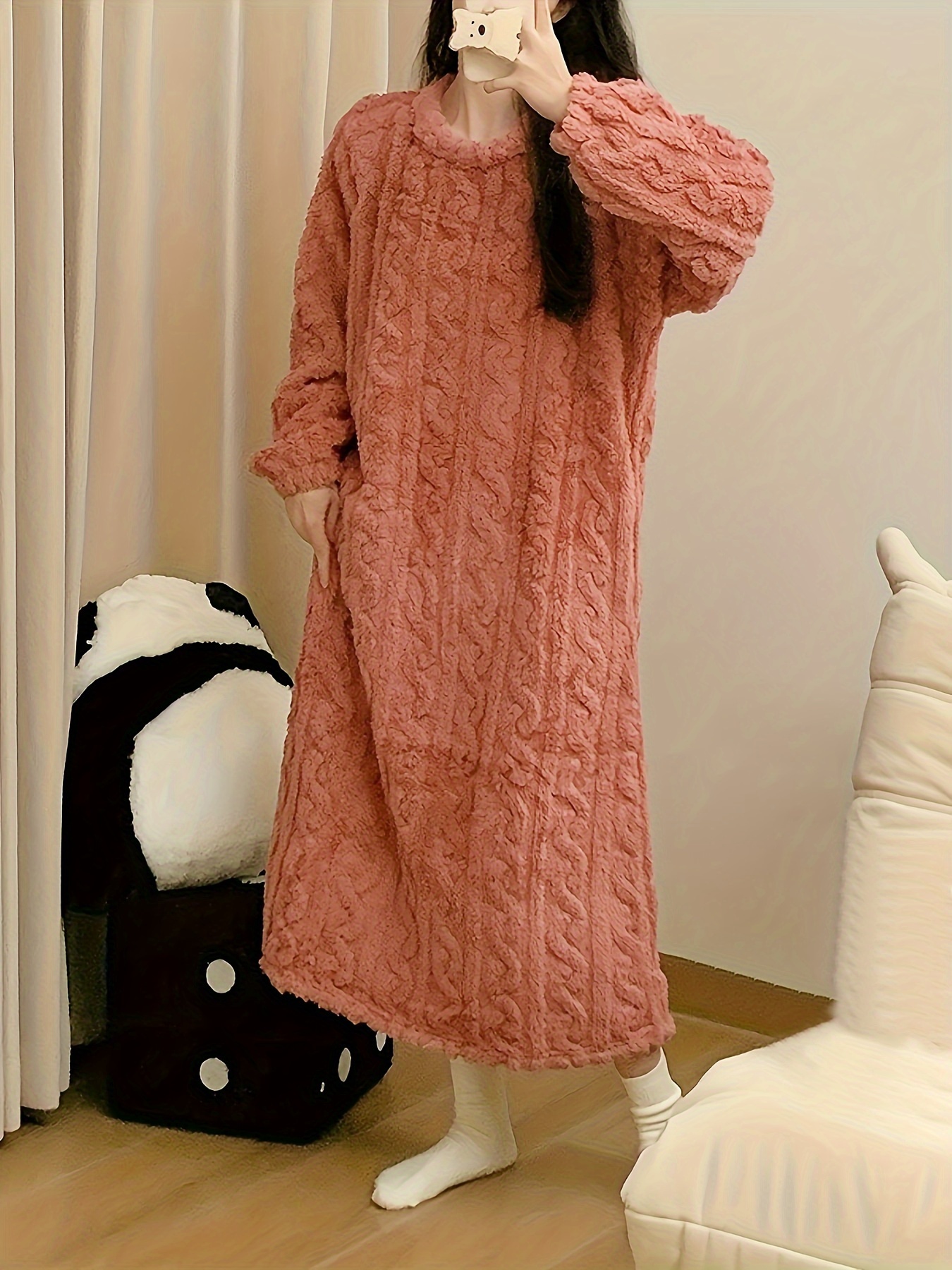 [Warm Fleece Nightgown] Warm Fleece-Lined Women's Long Sleeve Nightgown | Soft Plush Red Round Neck Machine Washable Cozy Pregnancy Pajama Dress for Fall & Winter, Maternity Pajamas, Casual Homewear