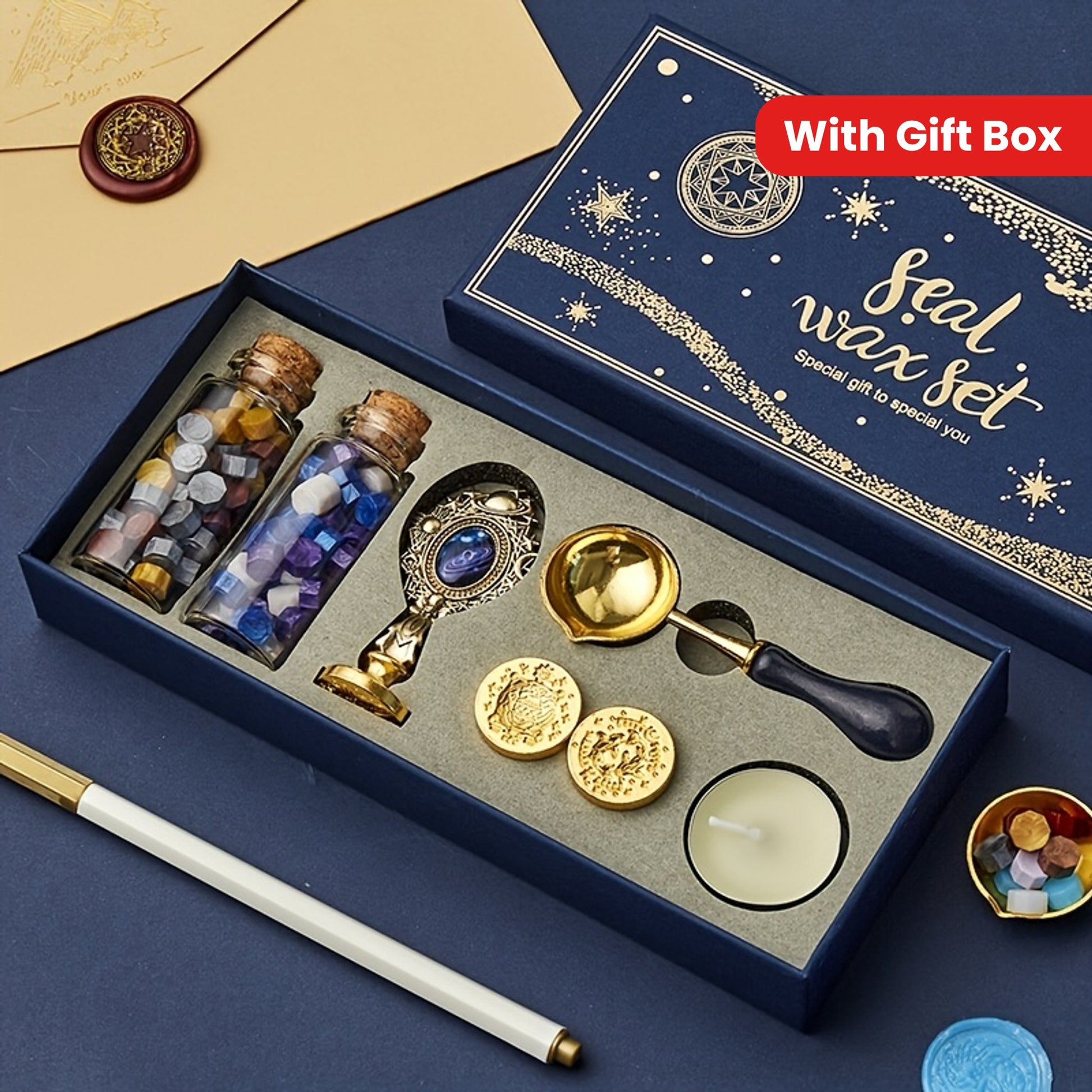 Wax Seal Stamp Kit with Gift Box, with Wax Seal Beads, 3 Wax Seal Stamp, Wax Seal Metallic Pen and Envelope, Wax Seal Kit for Gift and Decoration