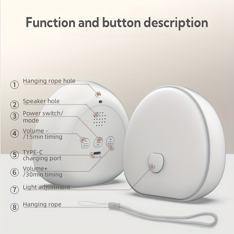 [White Noise Night Light] Multiple Colors White Noise LED Night Light | Stepless Dimming, with Timer, Sleep Sound White Noise with Natural Soothing Sounds, Memory Function Portable Sleep Device with 1200Mah Rechargeable Lithium Battery