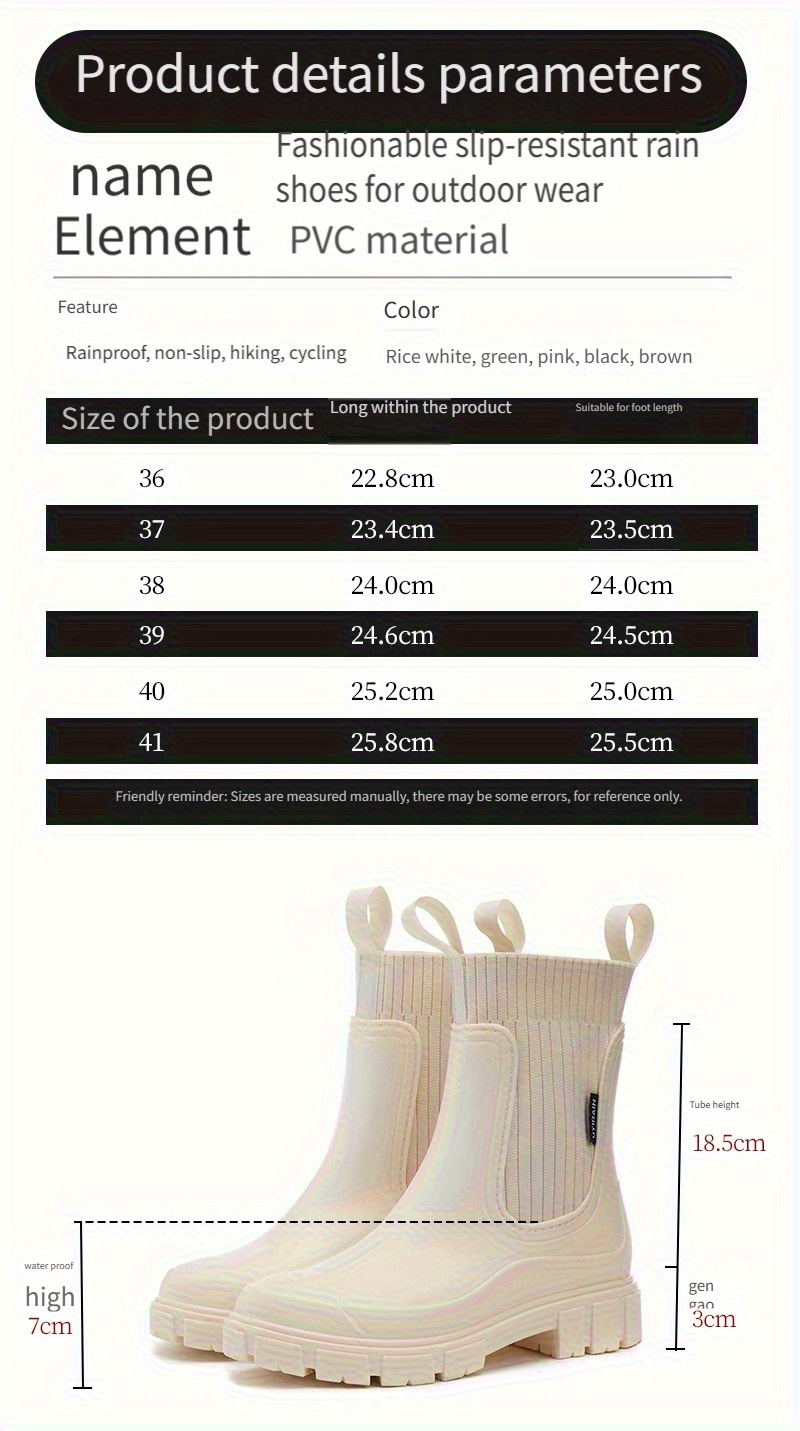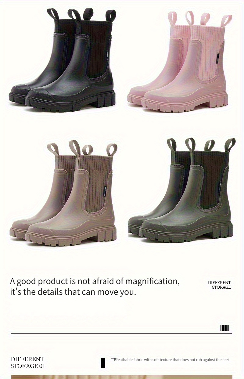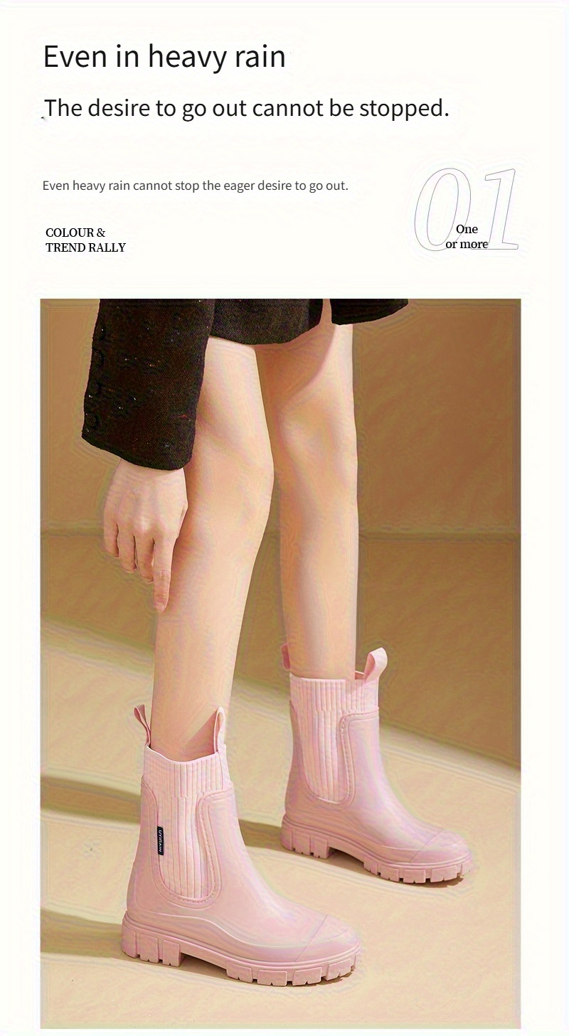 Women'S Chelsea Rain Boots - Slip-Resistant Thick Sole, Round Toe, PVC Upper & Sole, Comfortable Fabric Inner & Insole, Versatile Outdoor Footwear for Casual Attire, Versatile Outdoor Shoes | Chelsea Rain Boots | Durable PVC Materia