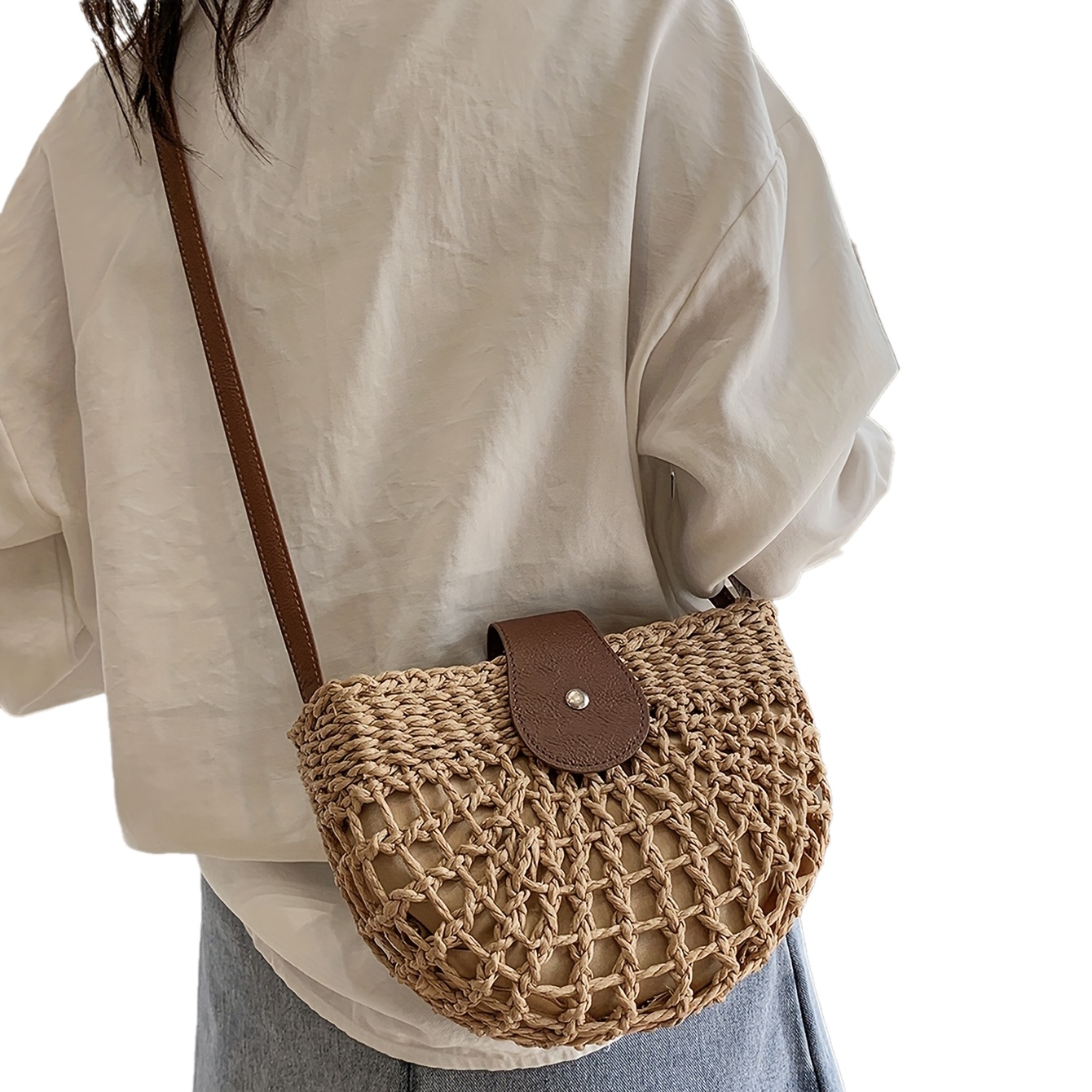 Women's Minimalist Crossbody Bag, Trendy Straw Shoulder Bag, All-Match Bag For Beach