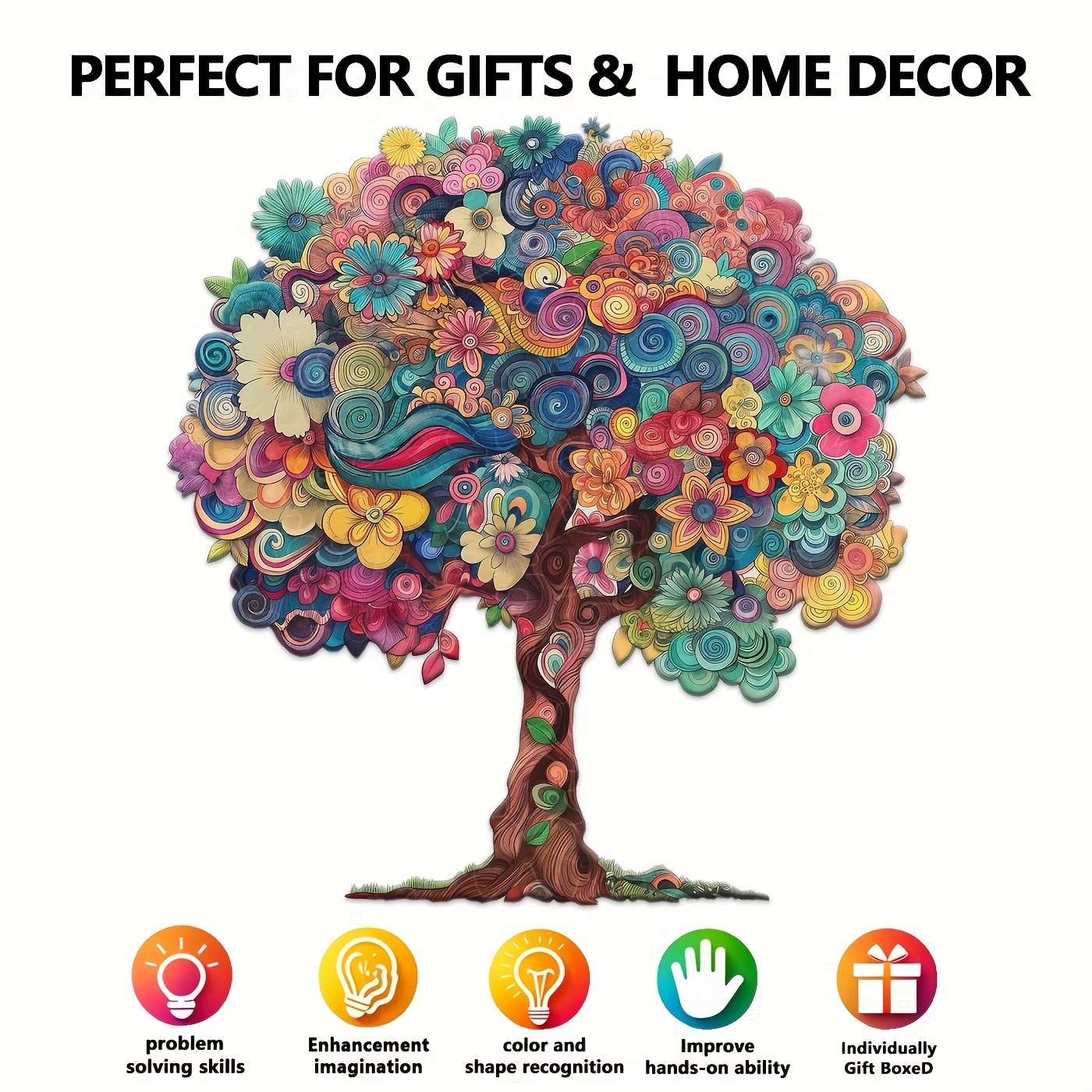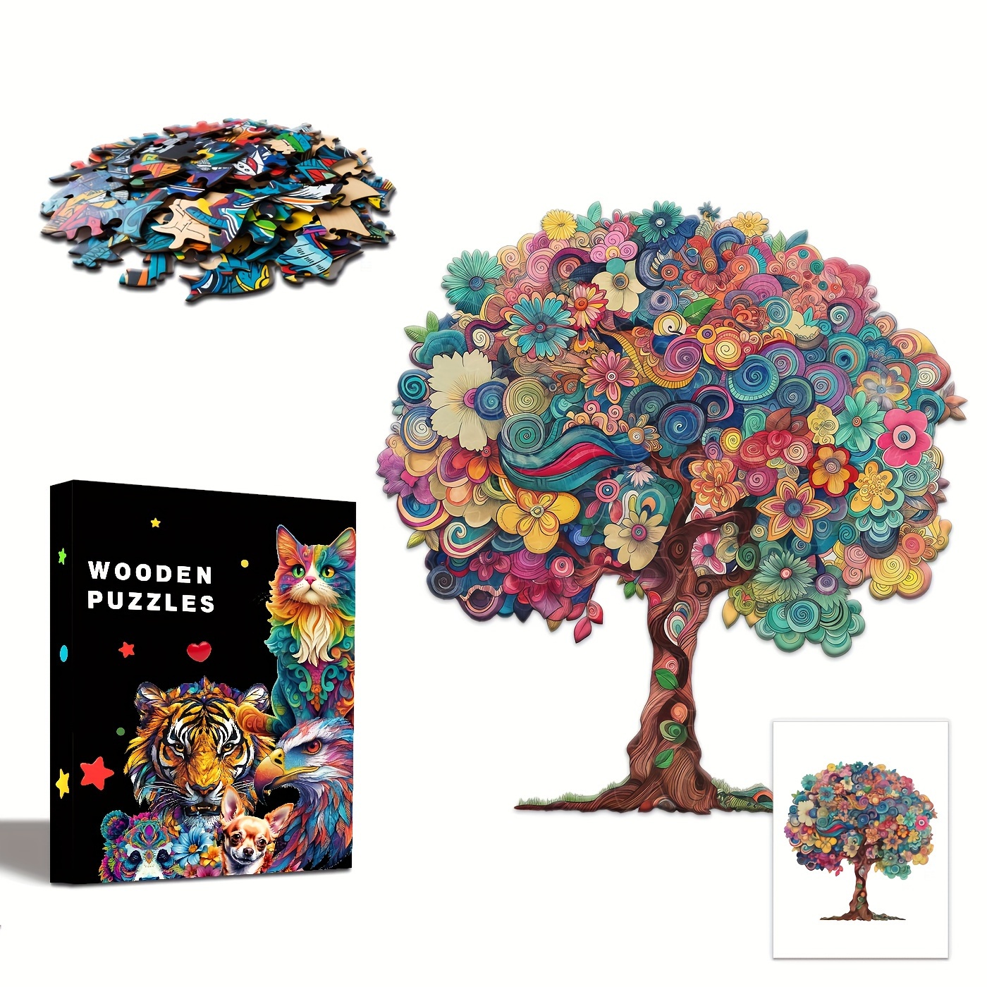 Wooden Jigsaw Puzzle for Adults - Floral Tree of Life with Irregular Animal-Shaped Pieces, Vibrant Artwork, Challenging Brain Teaser & Unique Gift for Focus & Creativity, Decorative Art Painting, Creative Focus Exercise | Intricate Craftsmanship, Wooden P